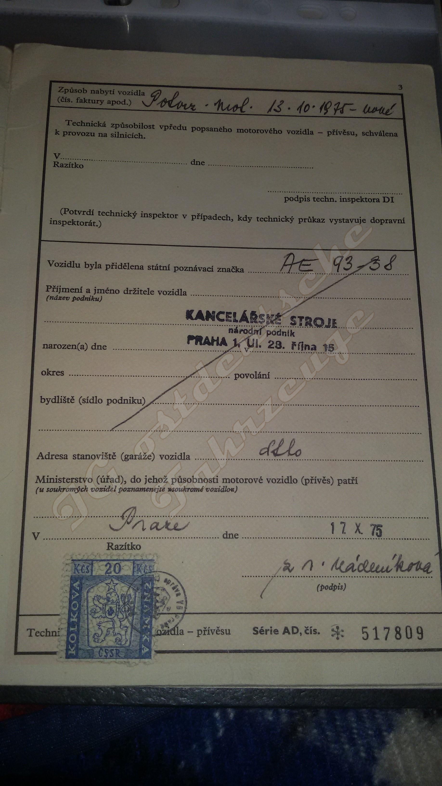 Im Sozialismus (ČSSR) lief das Fahrzeug beim Gemeindebetrieb MNV Bojanovice in Prag West. Danach in der ČSR bzw. ČR (das erkennt man daran, dass die Betriebe dann die Identnummer IČO (identifikační číslo organizace) mit im Namen tragen) in Prag 2 und weiter in unterschiedlichen Gemeinden als "Müllfahrzeug" eines wie ich vermute städtischen Entsorgungsbetriebs. Bis 2000 erfolgte regelmäßig die technische Abnahme (HU).