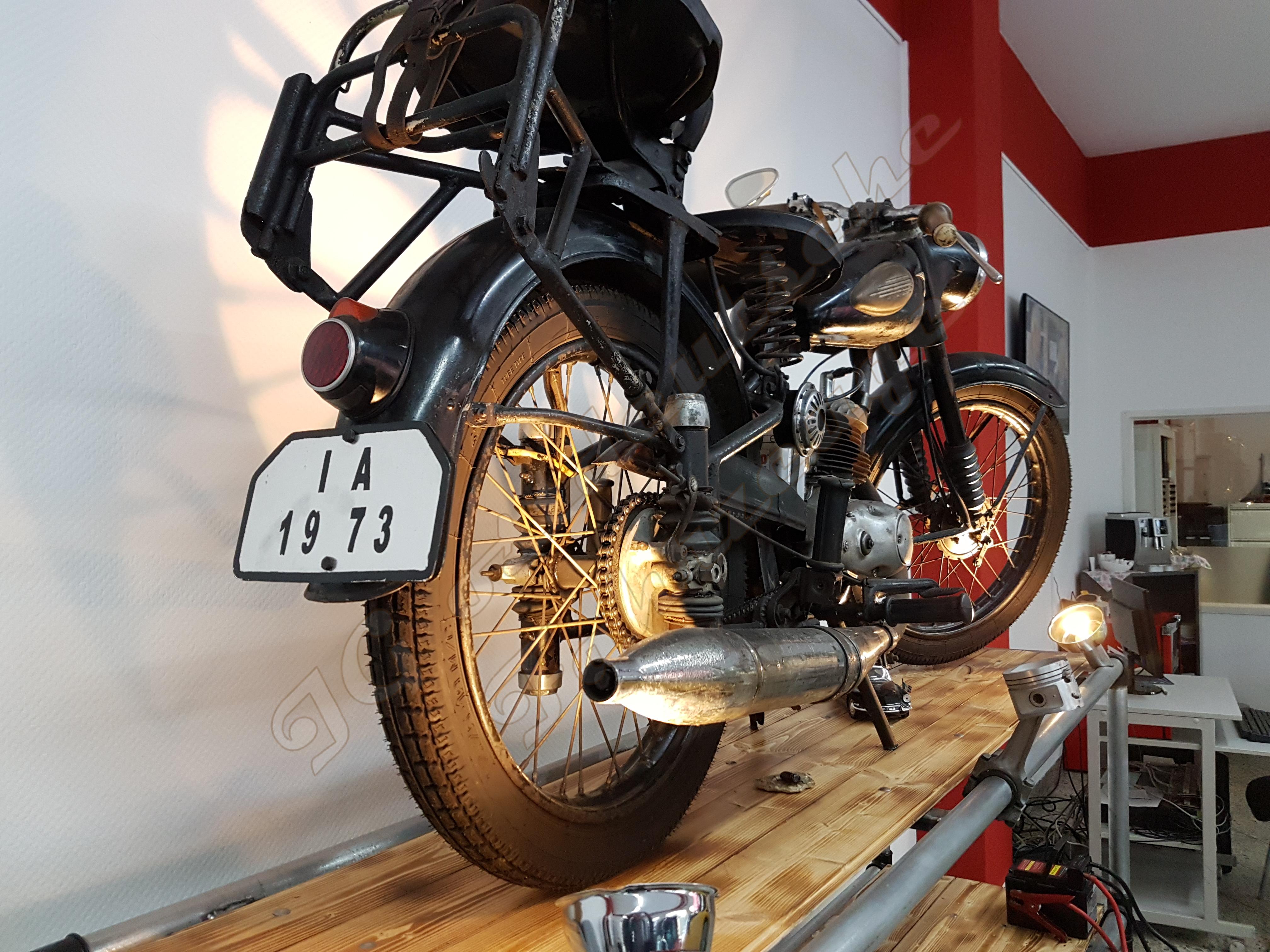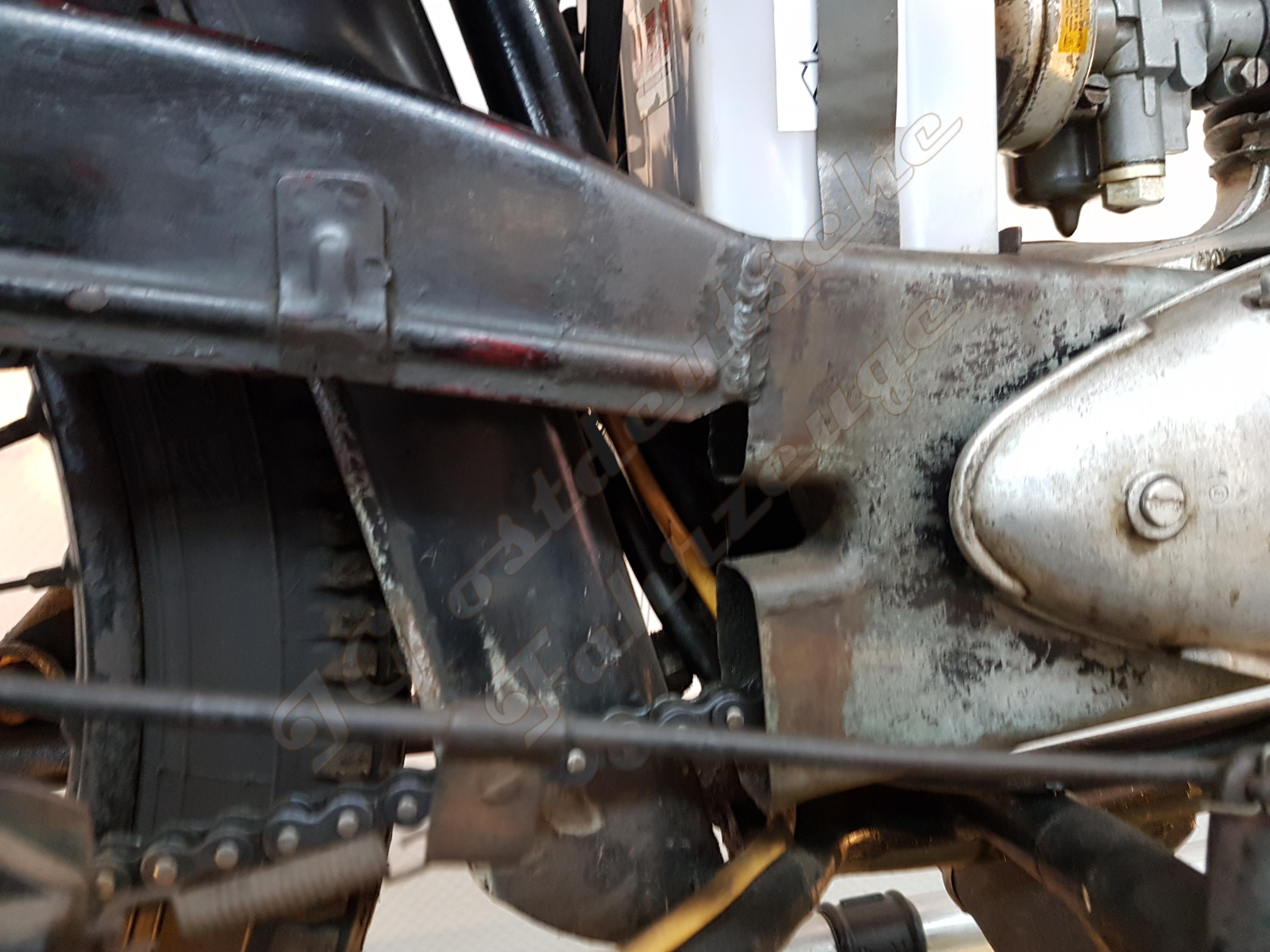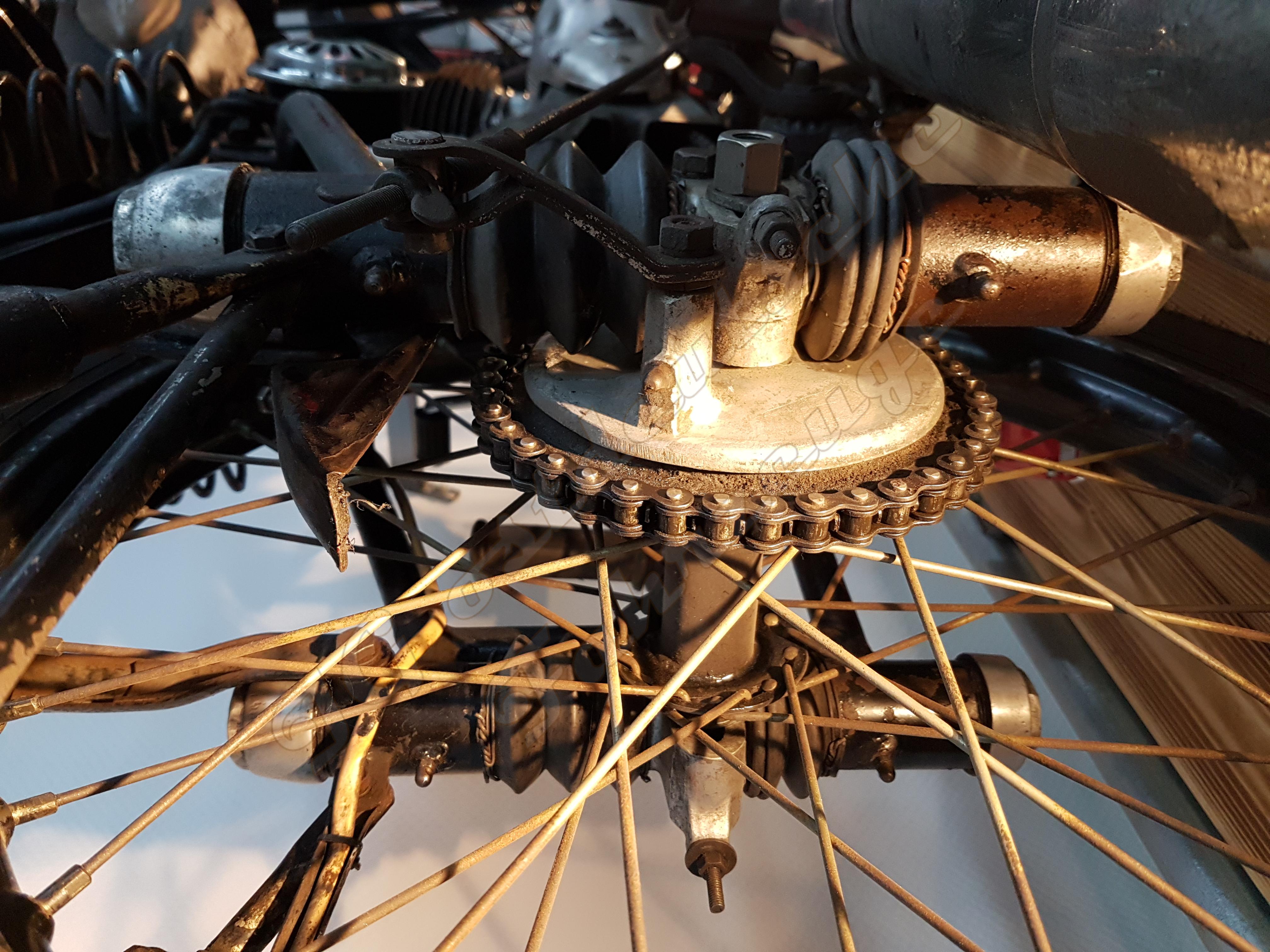 die (1950er?) IFA RT ist ein Traum! Der angeschweißte selbst gebaute Kettenschutz ist der Wahnsinn! Den Gummikettenschlauch gab es zum Zeitpunkt der "Reparatur" scheinbar nicht als lieferbares Ersatzteil.