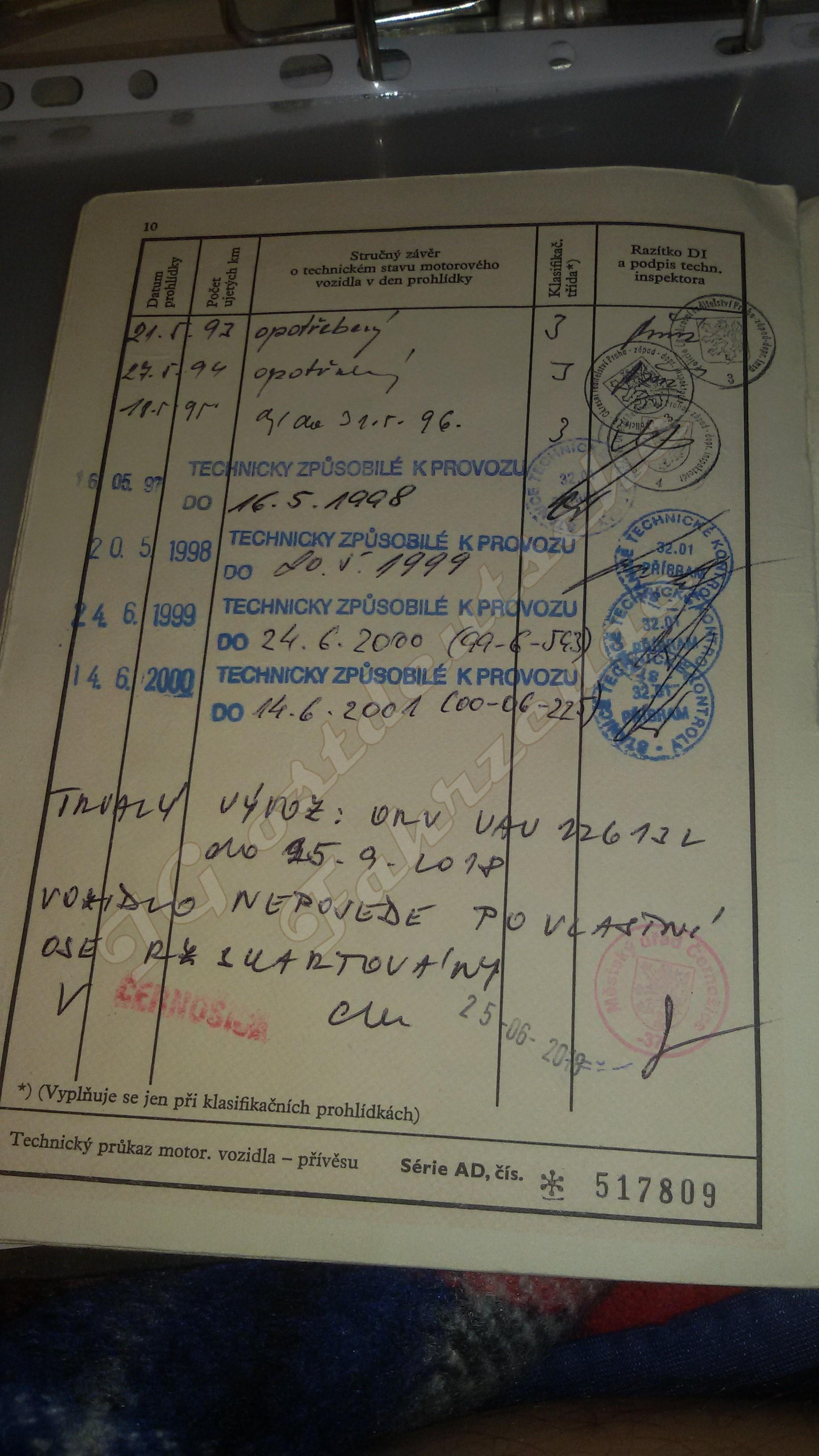 Im Sozialismus (ČSSR) lief das Fahrzeug beim Gemeindebetrieb MNV Bojanovice in Prag West. Danach in der ČSR bzw. ČR (das erkennt man daran, dass die Betriebe dann die Identnummer IČO (identifikační číslo organizace) mit im Namen tragen) in Prag 2 und weiter in unterschiedlichen Gemeinden als "Müllfahrzeug" eines wie ich vermute städtischen Entsorgungsbetriebs. Bis 2000 erfolgte regelmäßig die technische Abnahme (HU).