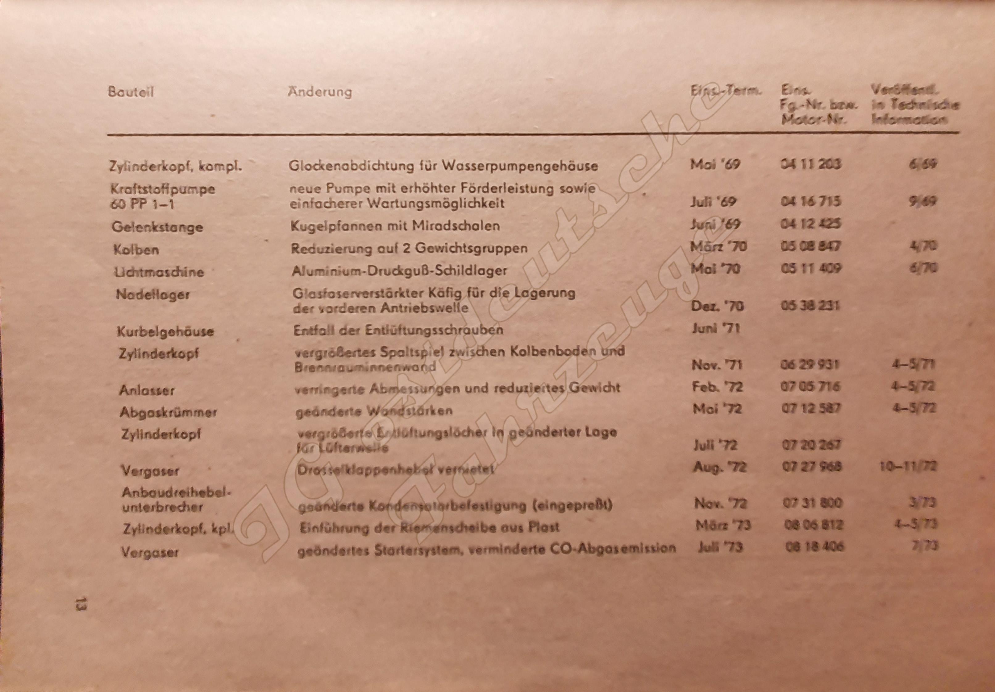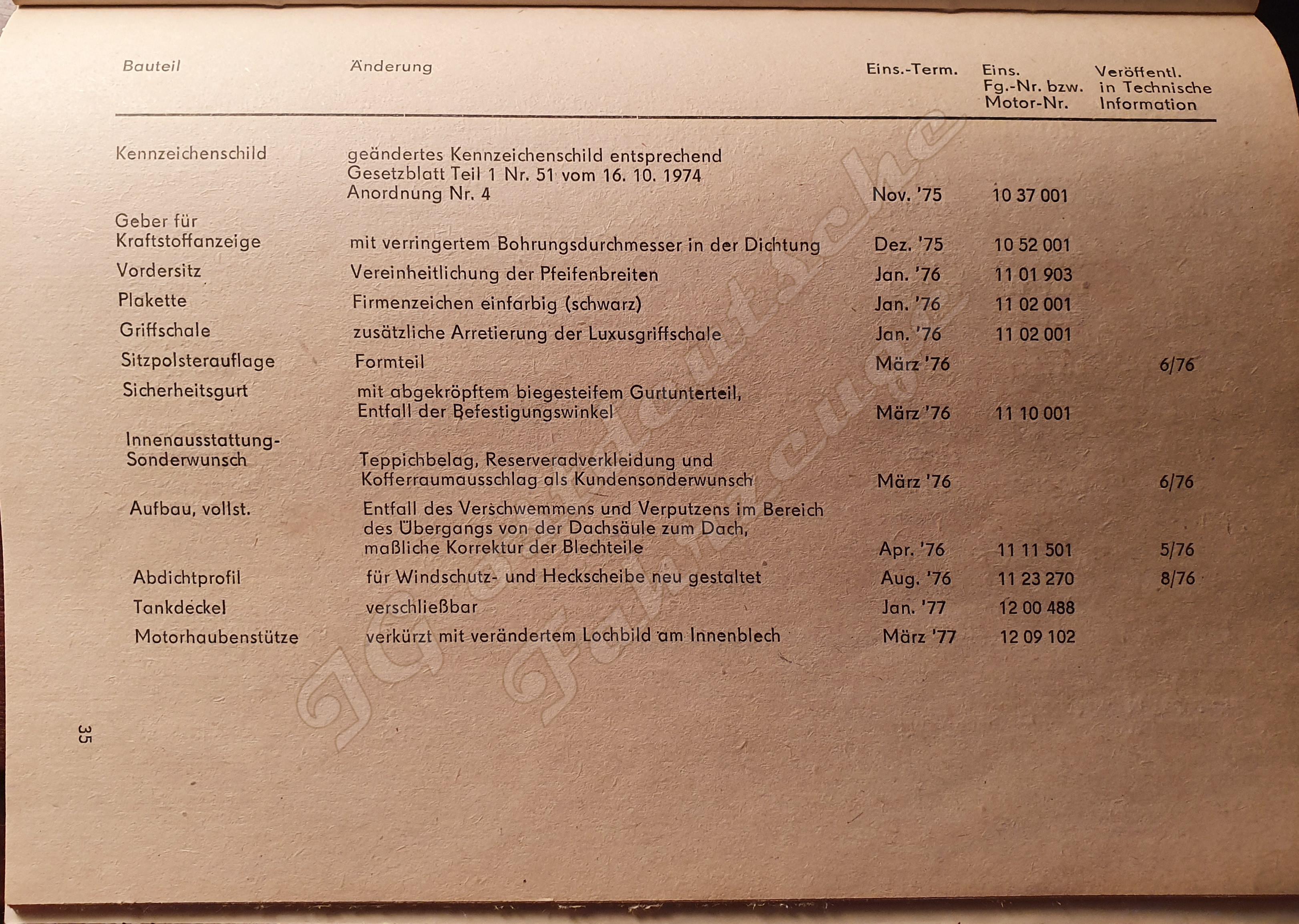 Fertigungszeiträume und dazugehörige Fahrgestellnummern ab Einsatz Wartburg 353