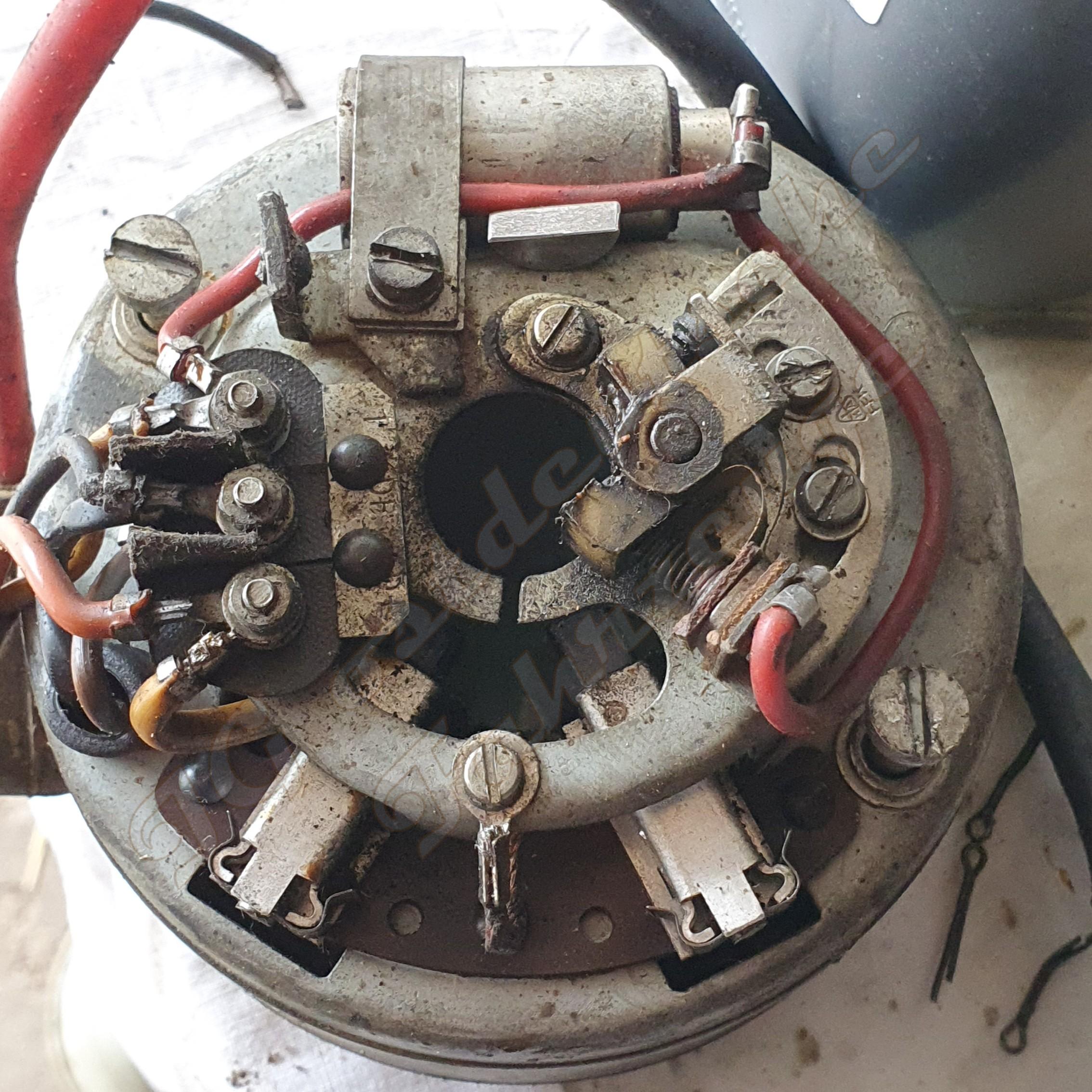 Leider verfolgte uns ein Fehlerteufel an einem DDR-Neuteil. Letztentlich stellte sich heraus, dass das Kabe in einer Lichtmaschinenschleifkohle lose war. Wir haben erfolglos versucht, es zu befestigen. Steffen war unsere Rettung. Er genehmigte uns den Ausbau einer Kohle aus seiner Wiesel-Lichtmaschine.