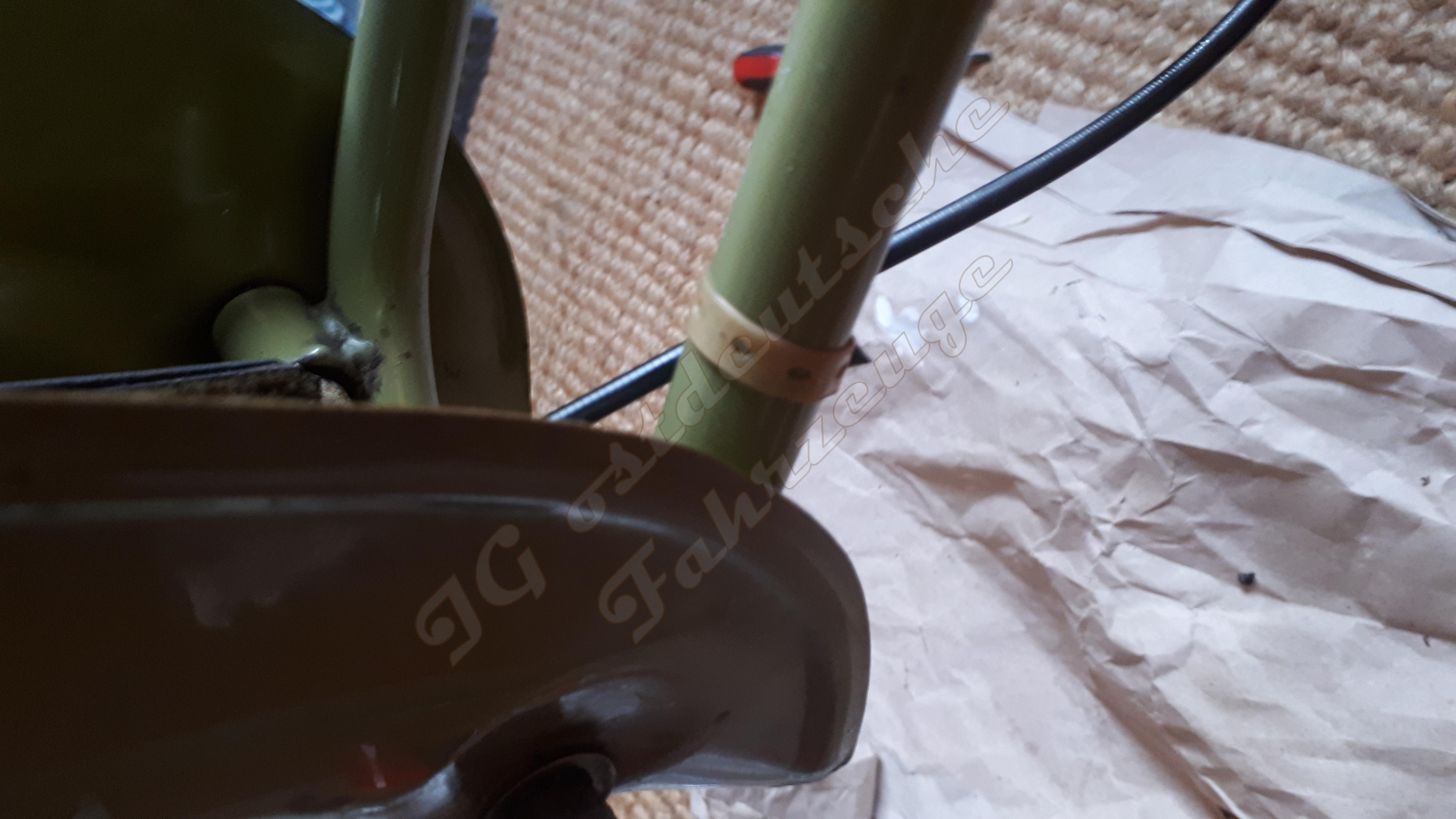 Nachdem sie komplett zerlegt, gereinigt und owatrolisiert wurde, gehts mit ein paar frischen Teilen schon wieder an den Zusammenbau. Der Lack ist 'ne ziemliche Herausforderung. Die Linie zwischen gut olivig ohne Grauschleier und Grundierung ist sehr dünn...und wurde auch mehrfach überschritten:(. Perfekt ist's immer noch nicht.