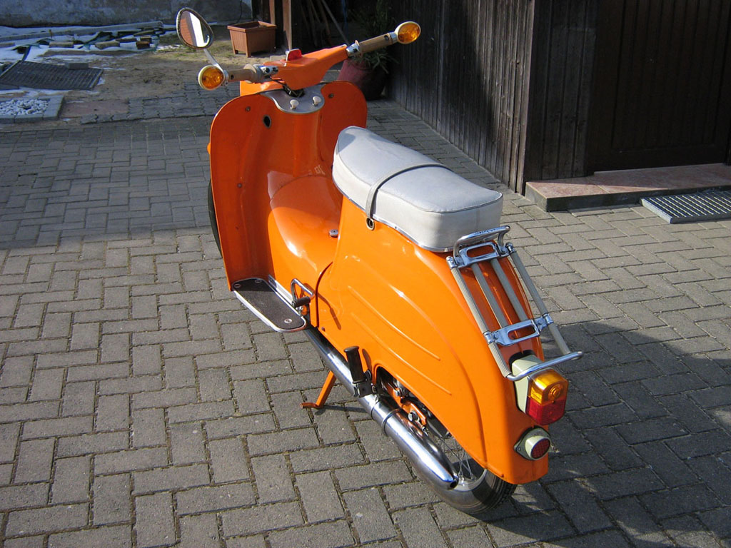- "Simson"-Schriftzug am Beinblech (ersten Modelle), danach standardschriftzug "Schwalbe"