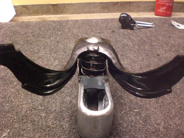 Das Sattelgestell unten war bei diesem Modell verzinkt, genau wie die Fedren und das Mittelstück womit die Federn verbunden werden. Sämtliche Schrauben habe ich natürlich auch verzinken lassen 8-)
