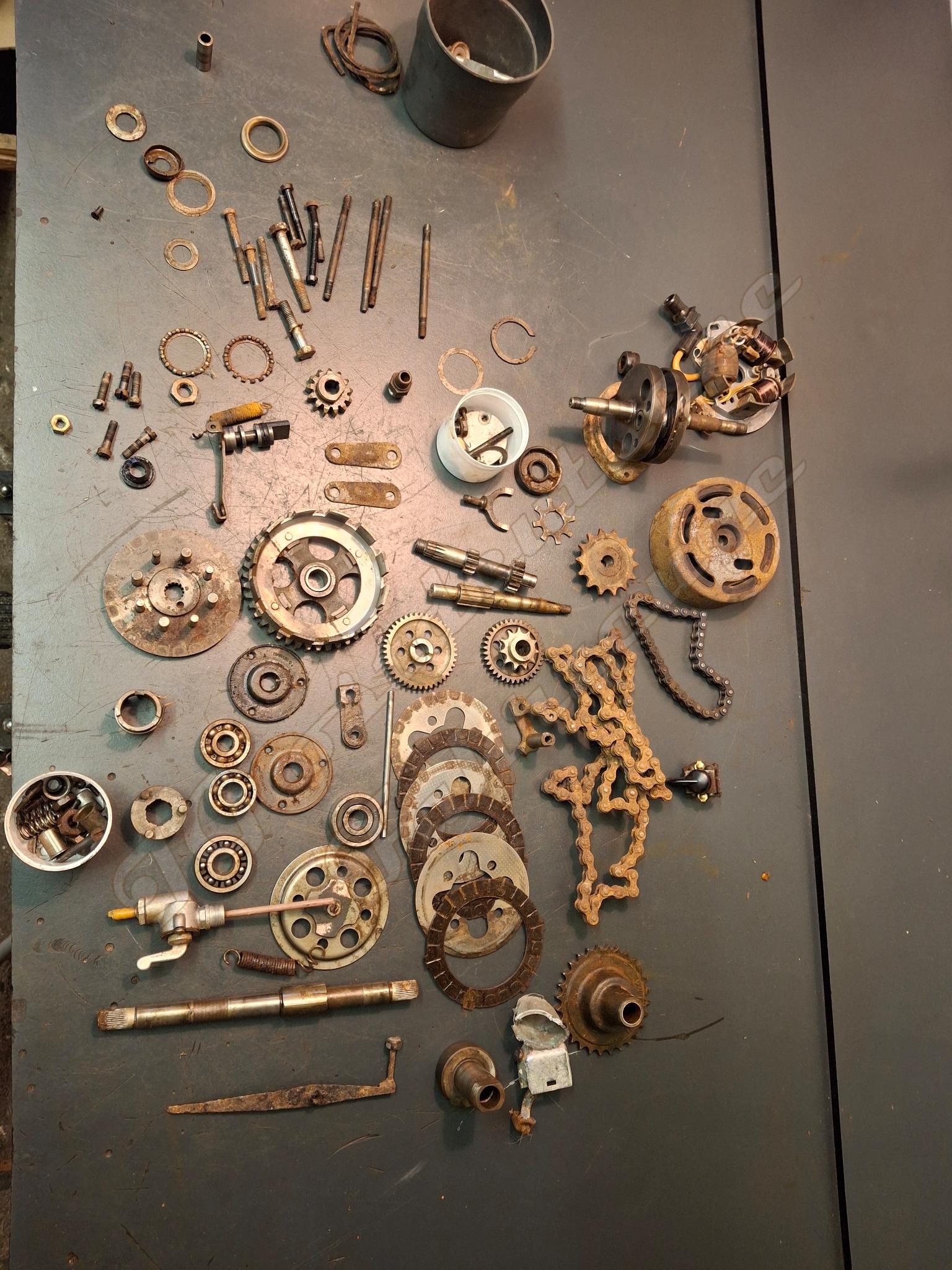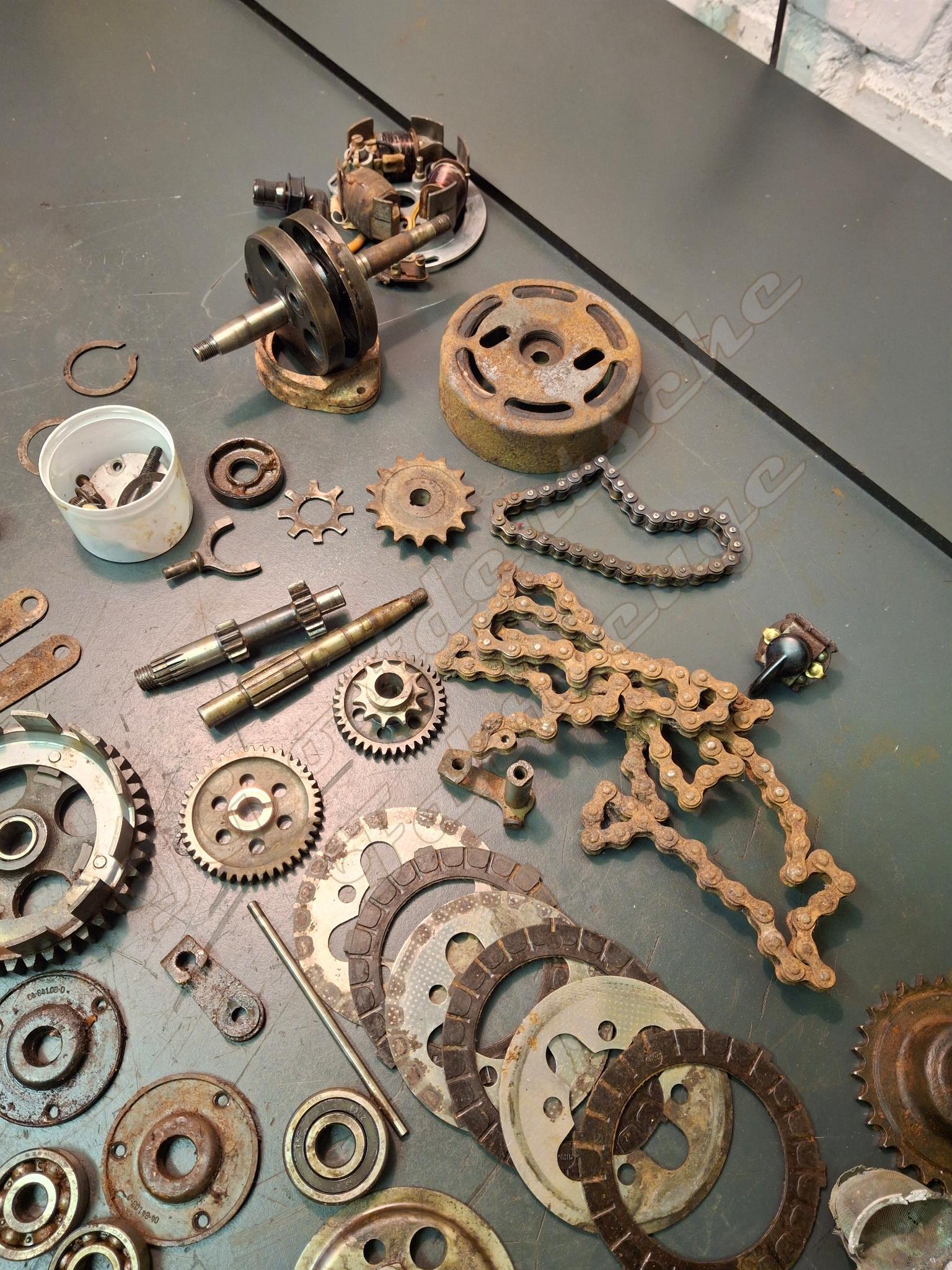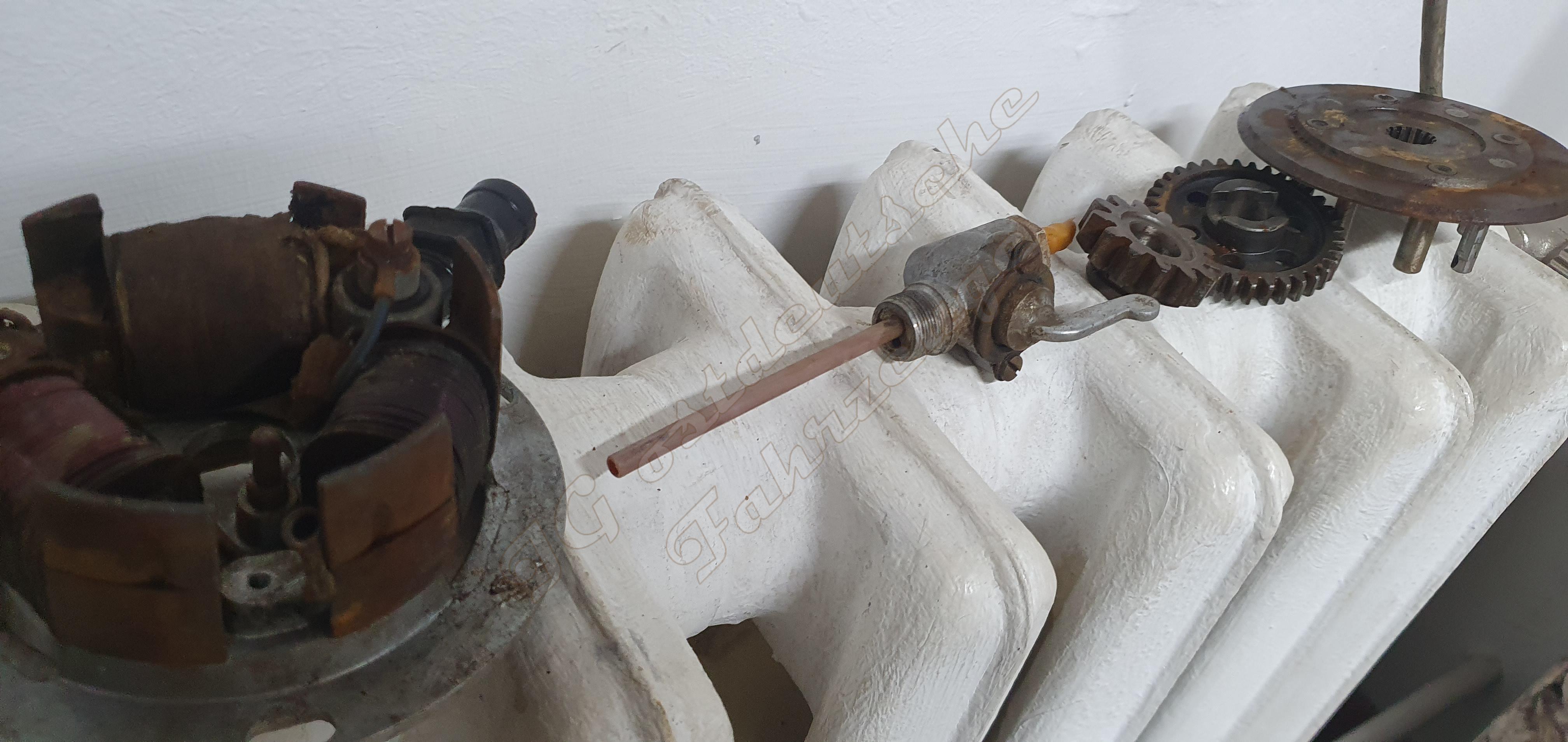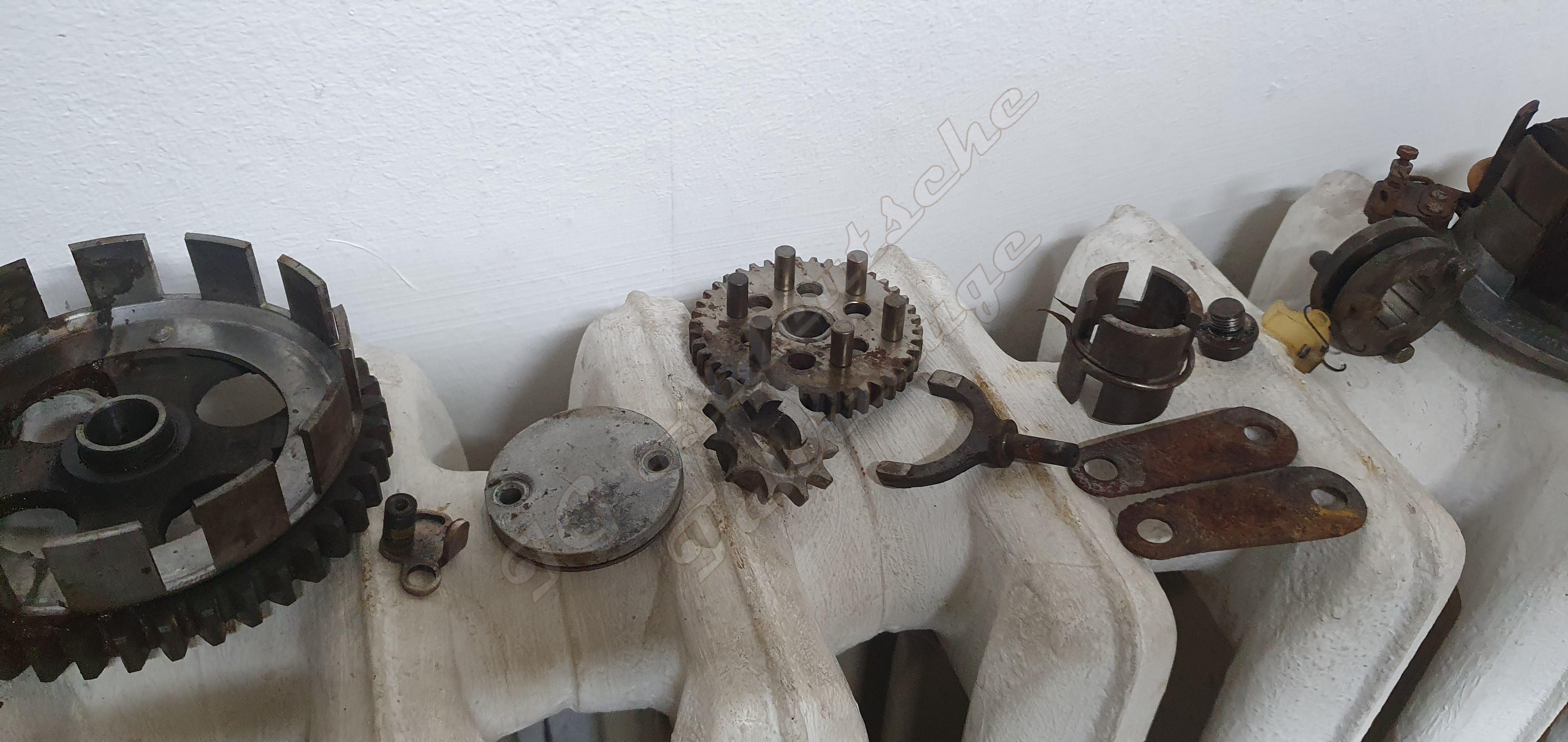 Den Motor haben Gunnar und ich zerlegt. Es sind nagelneue Spatz-Getriebeteile verbaut bis auf die Schaltgabel, Pedalwelle ist ein nagelneues SR1-Teil.