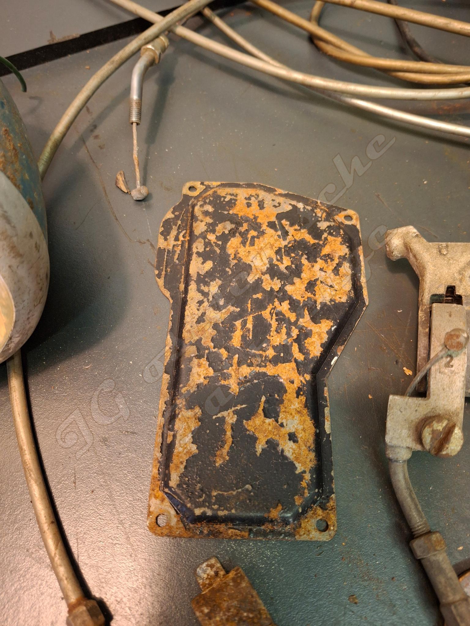 Hier seht ihr die gereinigten Getriebeteile, das Grau, welches die Originalfarbe sein könnte und das IKA-Scheinwerferglas.
