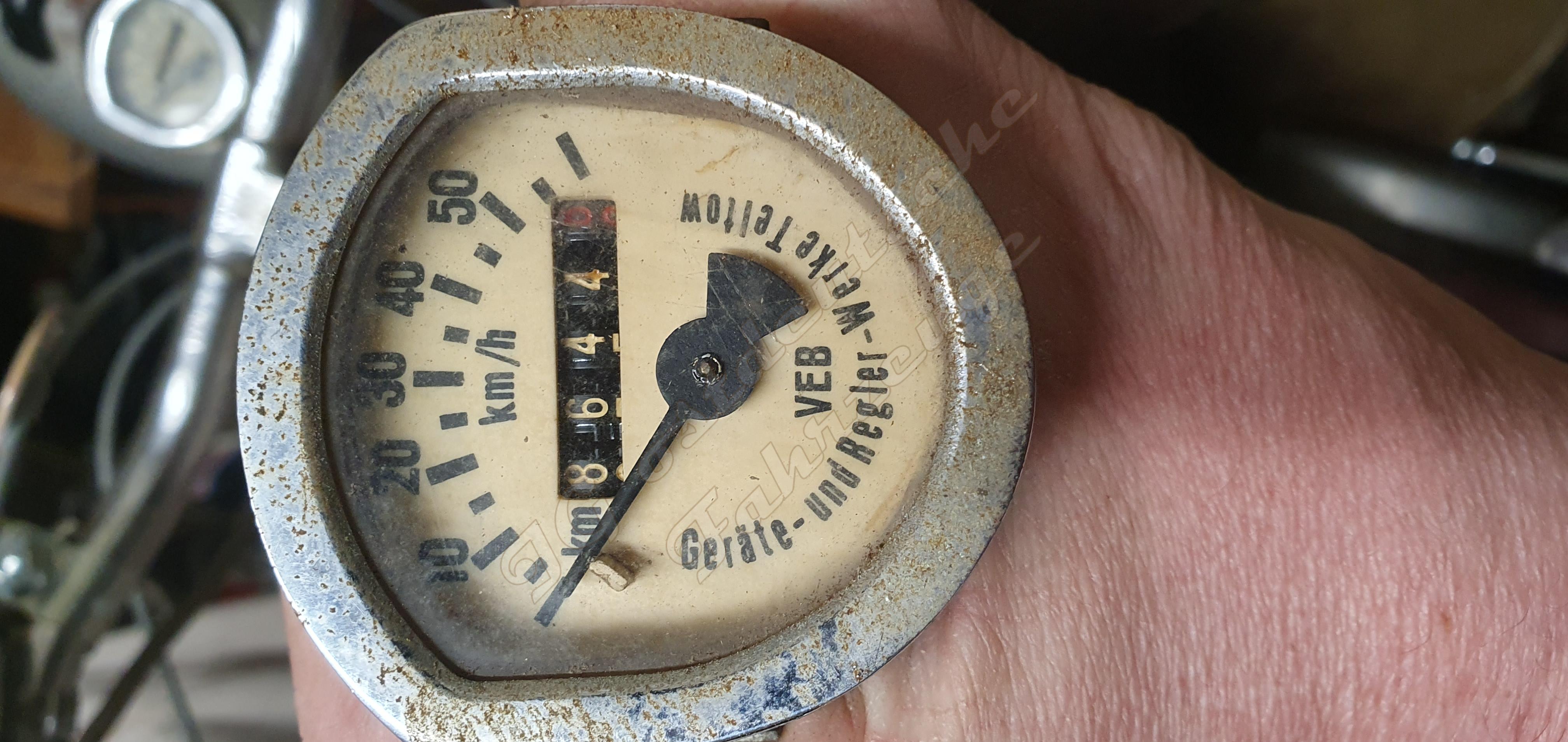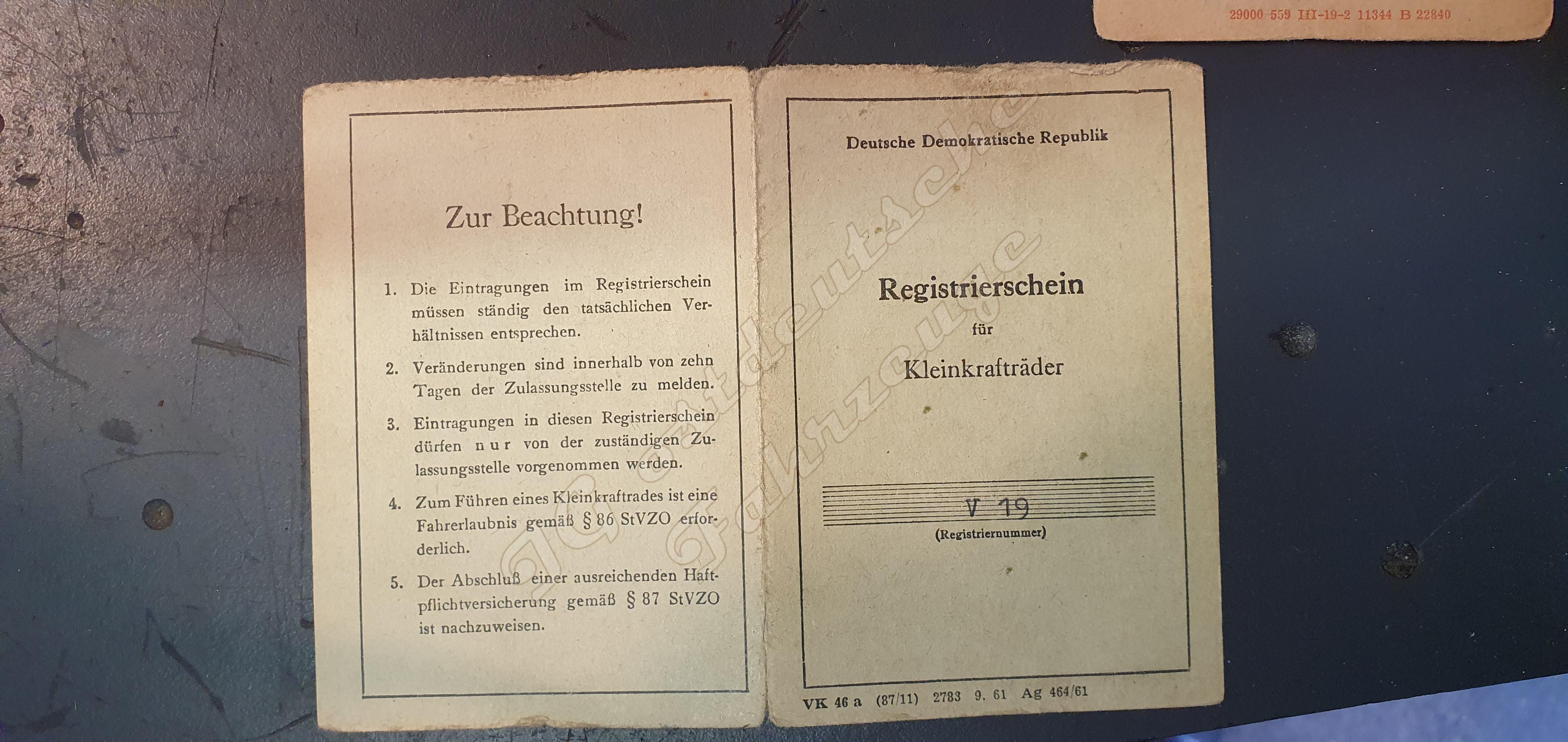 Ich habe das Fahrzeug aus Ahrendsfelde. Ein Freund fragte mich, ob ich das Moped seines Opas kaufen wollte. Ich war sehr überrascht, als es plötzlich um ein Fahrzeug mit einer V-Nummer ging.