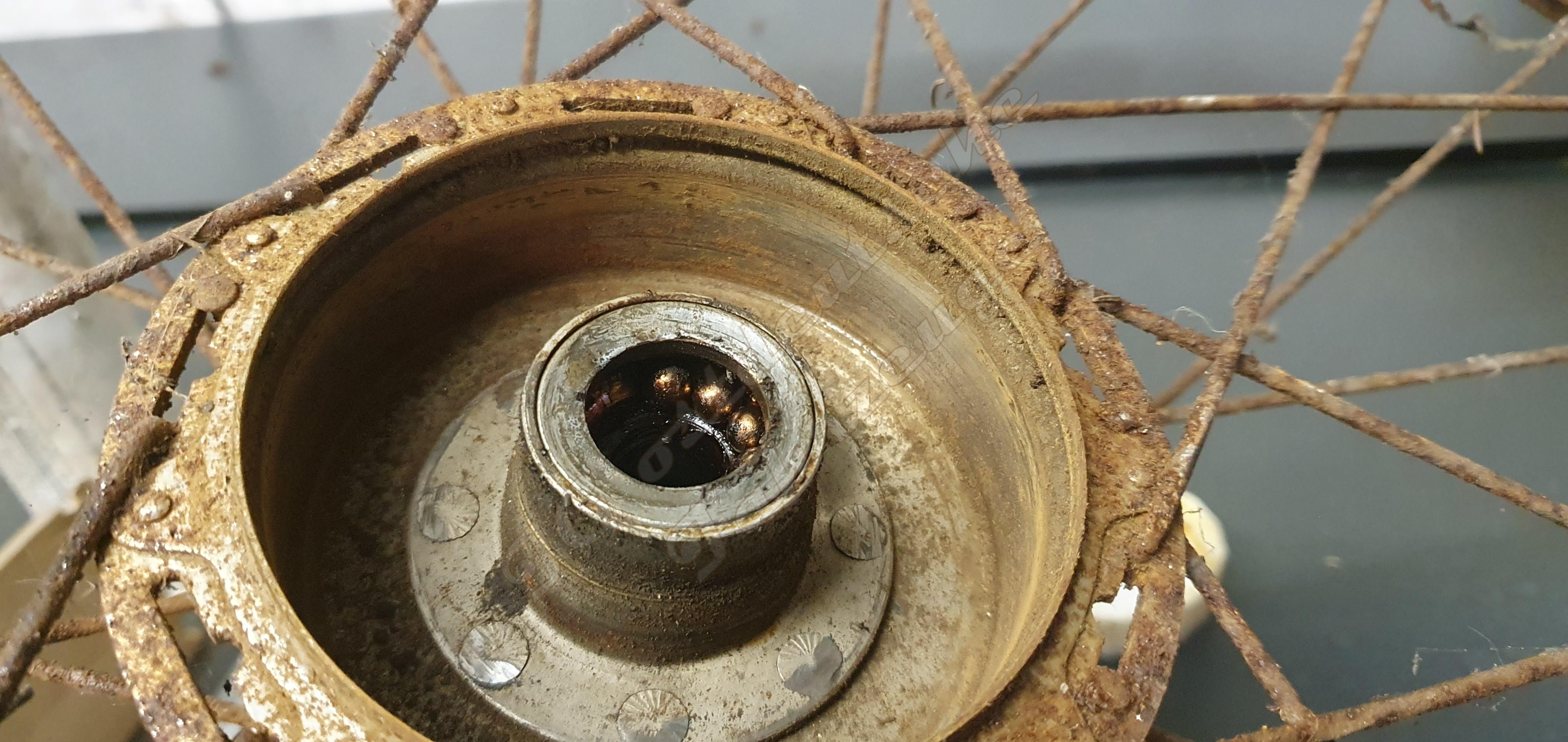 Ich habe mich heute mal um die Radlager gekümmert. Das sieht alles gar nicht so schlecht aus. Auch die Bremse macht einen guten Eindruck