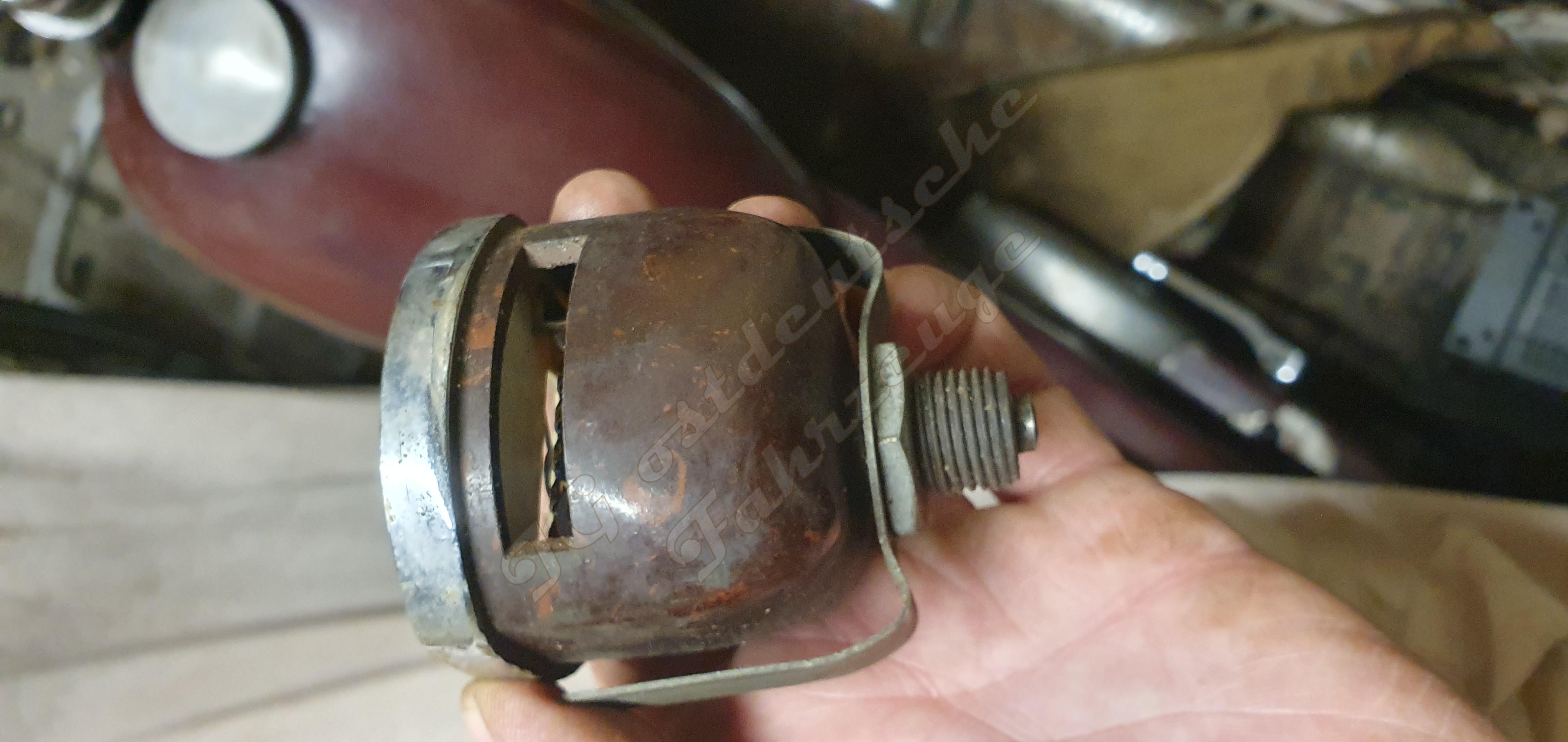 Vielen Dank, ich habe heute noch mal genauer geschaut. Es gibt doch Augenscheinlich ein paar Besonderheiten, allerdings fehlen Kettenschutz, Rücklicht, Sattel, die linke Tretkurbel und die Pedale. Der Rest scheint vollständig zu sein, was mich sehr freut. Viele Teile haben wohl wegen eines undichte Daches stark gelitten, aber sie sind ersetzbar. Ich möchte ihn so lassen und komplettieren. Er darf seine Geschichte zu Schau tragen. In den Papieren von 1962 steht, dass er schon blau war. Nachdem er blau war, ist er aber nicht mehr montiert worden. Der Lack sieht auch eher wie Kathodentauchlack aus. Die Teile scheinen damals chemisch entlackt worden zu sein. Nun gibt es aber auch etwas Rost.