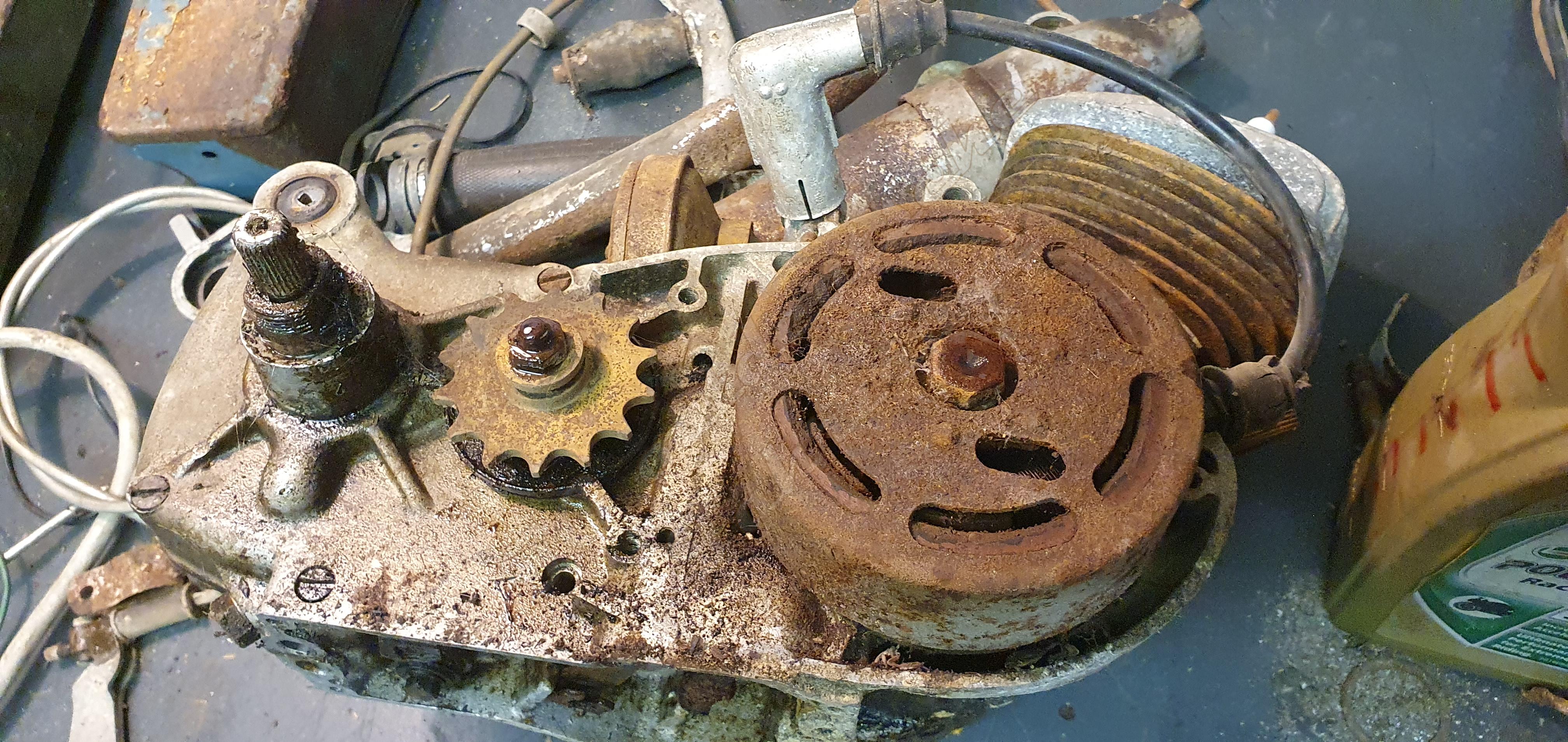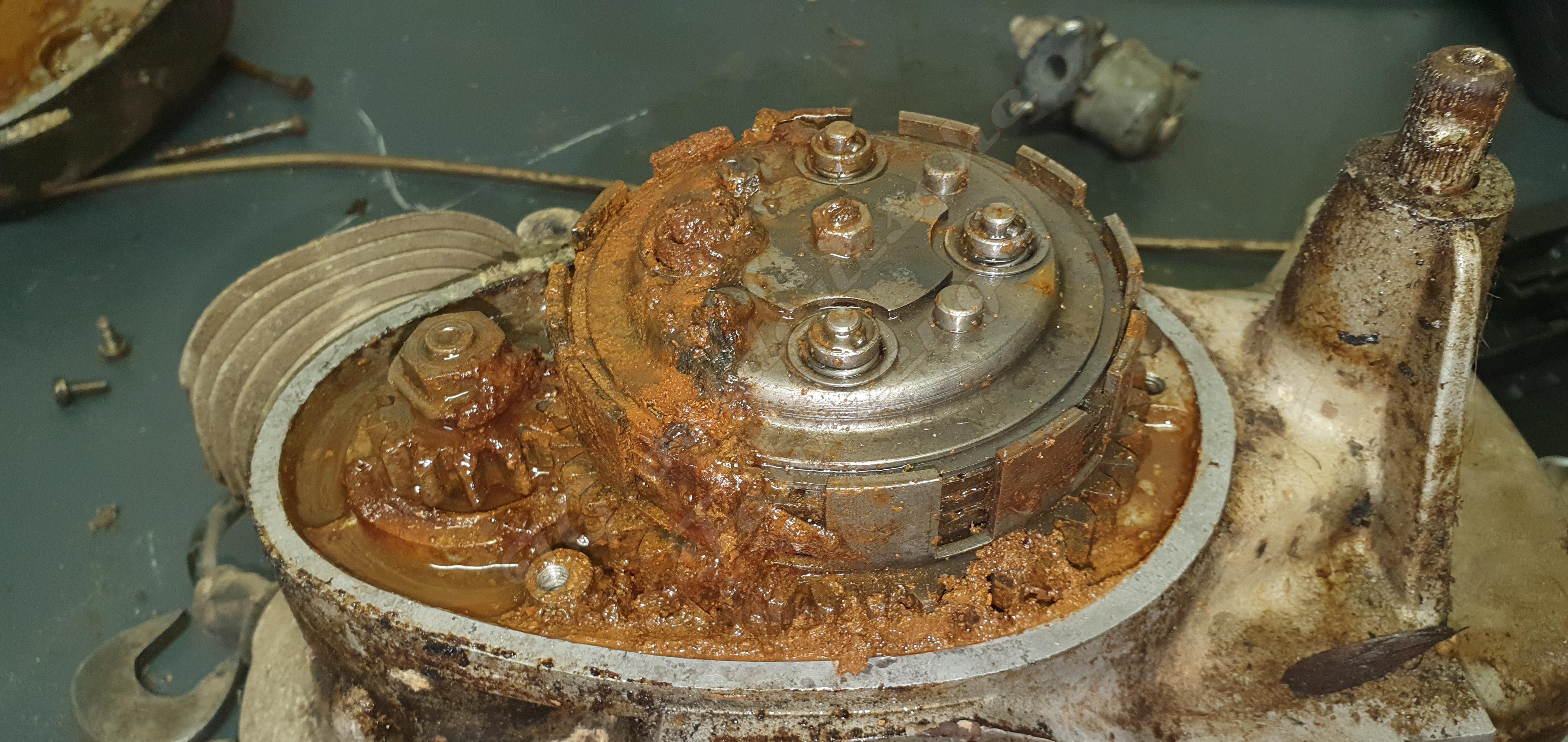 Ich Getriebe war Wasser. Das kann noch nicht so lange sein, sonst Ware es fest gewesen. Es stand wohl alles im Regen. Das ist zwar sehr Schade, aber das wird wieder. Der Kupplungskorb ist Spatz, aber alte Lamellen mit 6 Nasen.
