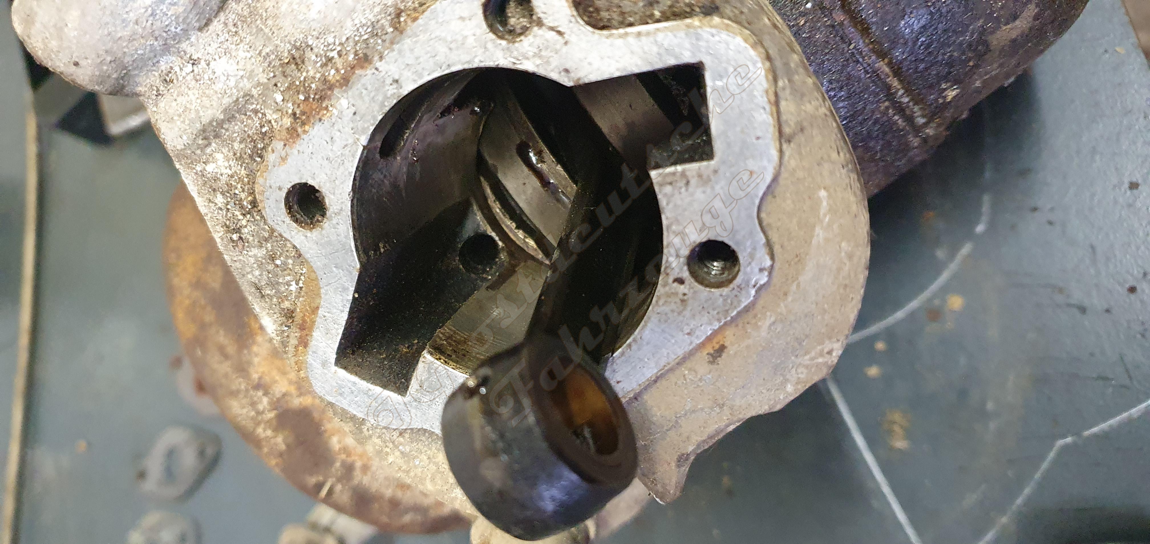 Es juckt ja ziemlich in den Fingern, so habe ich etwas weiter gemacht. An dem Motor war schon jemand dran. Der Kolben ist Schiffbau und war auch falschrum eingebaut der Zylinder sieht interessant aus, leider ist eine Rippe abgebrochen.