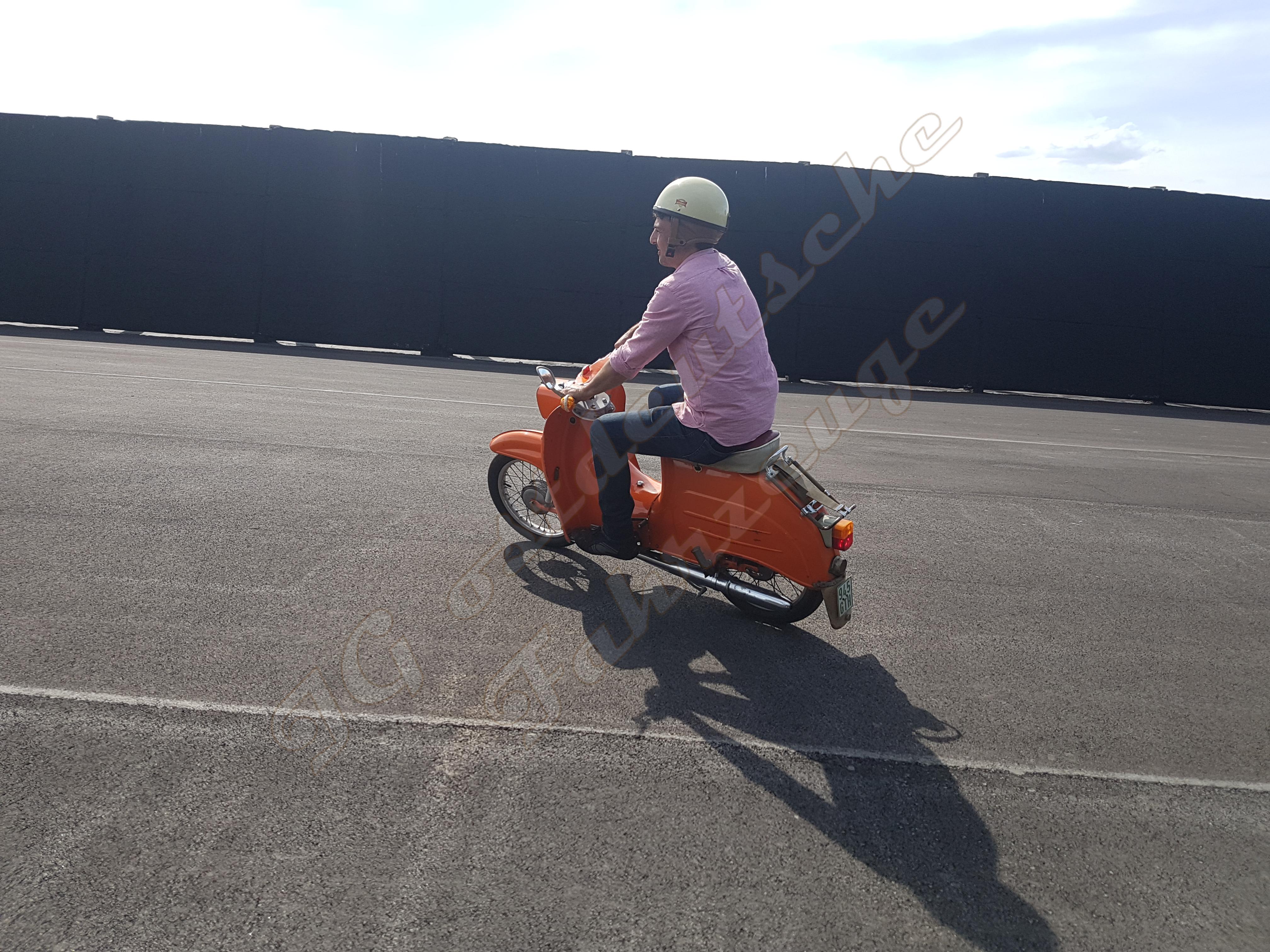 Am Wochenend habe ich mit dem 353W eine kleine Ausfahrt zur Oldtema unternommen. Ich habe viele spannende Leute getroffen und es gab wieder spektakuläre Erlebnisse. Der 353W kann als Vollgasfest und sehr fit gelten. Das Mischungsverhältnis Kraftstoff/Öl betrug auch diesmal wieder 1:100. (vollsynthetisches Motorenöl 0W40)