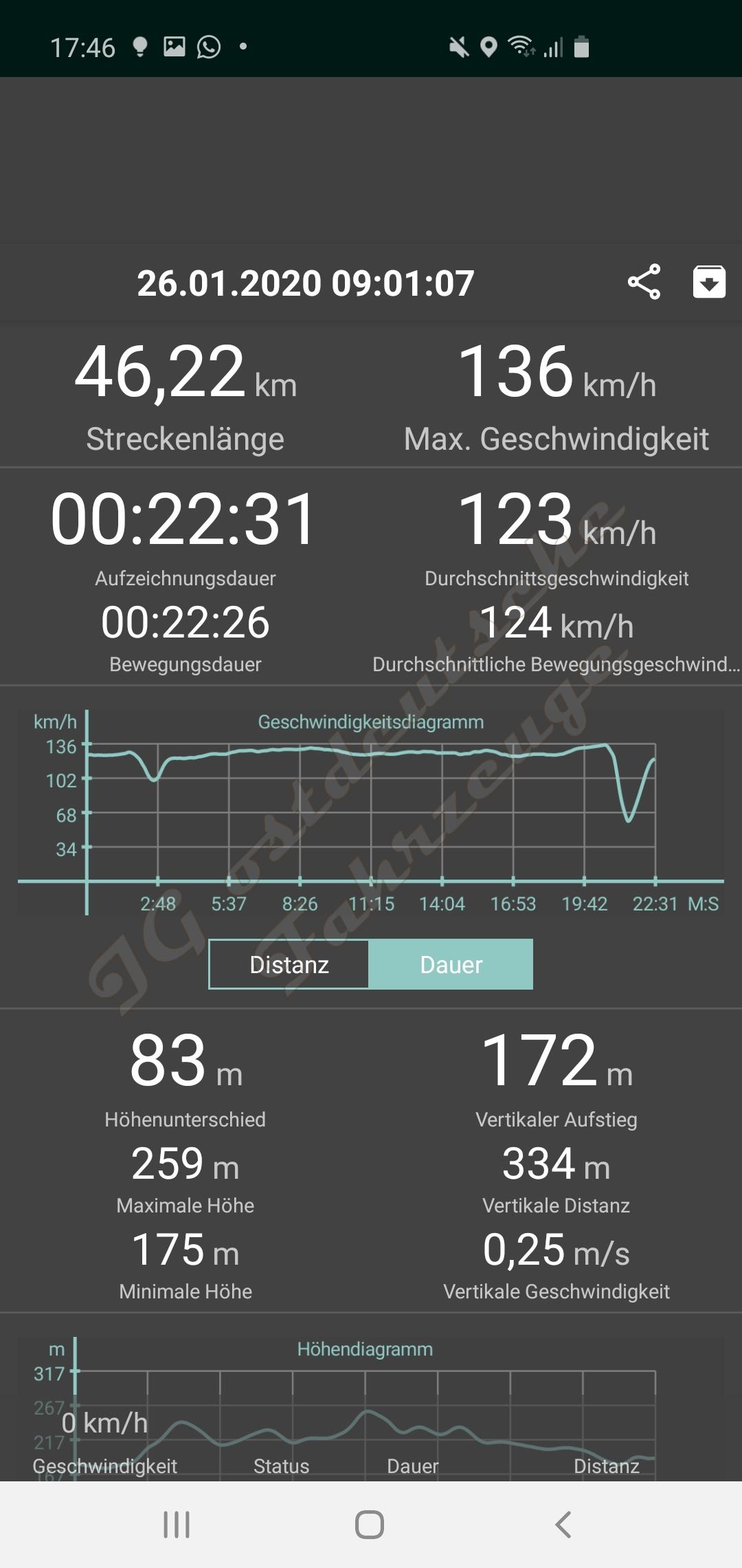 Ich bin wieder zurück. Auf dem Rückweg hatte ich keine Eile und habe versucht, nicht zu langsam, aber doch sparsam zu fahren. Auf einer Strecke von 323,3km konnte ich einen Durchschnittsverbrauch von 6,66L/100km erzeugen.