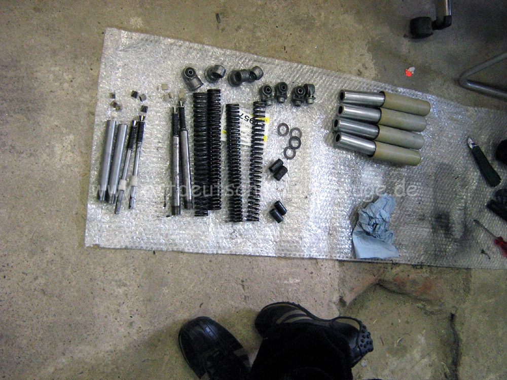 Regenerieren kann man übrigens nur teilweise sagen.Wir haben die Gleitrohre z.B. nicht klibriert, sondern, zumindest hinten, neue Teile verbaut.