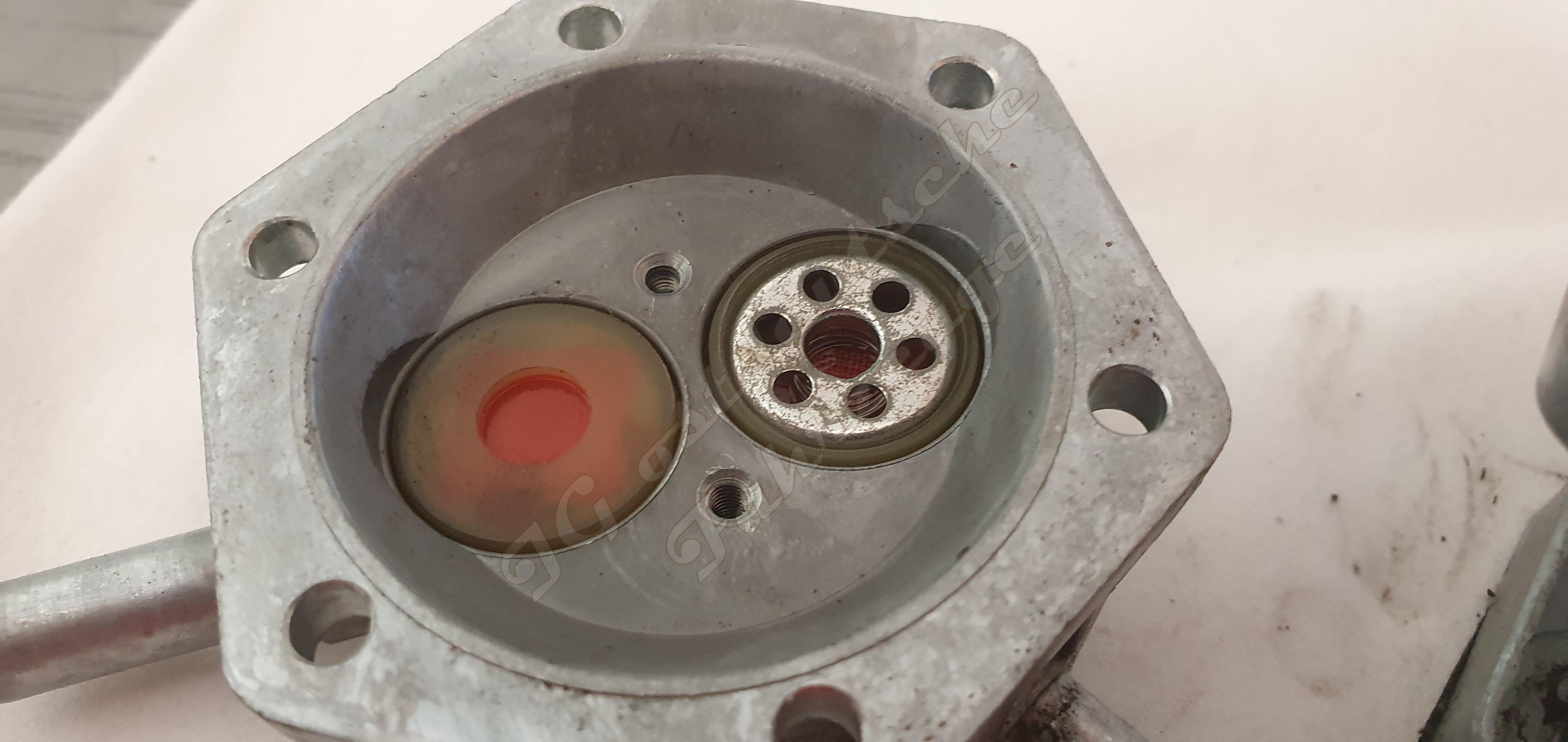 Schnell war die Pumpe ausgemacht, diese war aber fast neu. Man hatte vergessen, das Sicherungsblech für die Ventile einzubauen. Es ist erstaunlich, dass es überhaupt fast 2000km gehalten hat. Nun ist wieder eine Originale Pumpe mit neuer DDR-Membran drin.