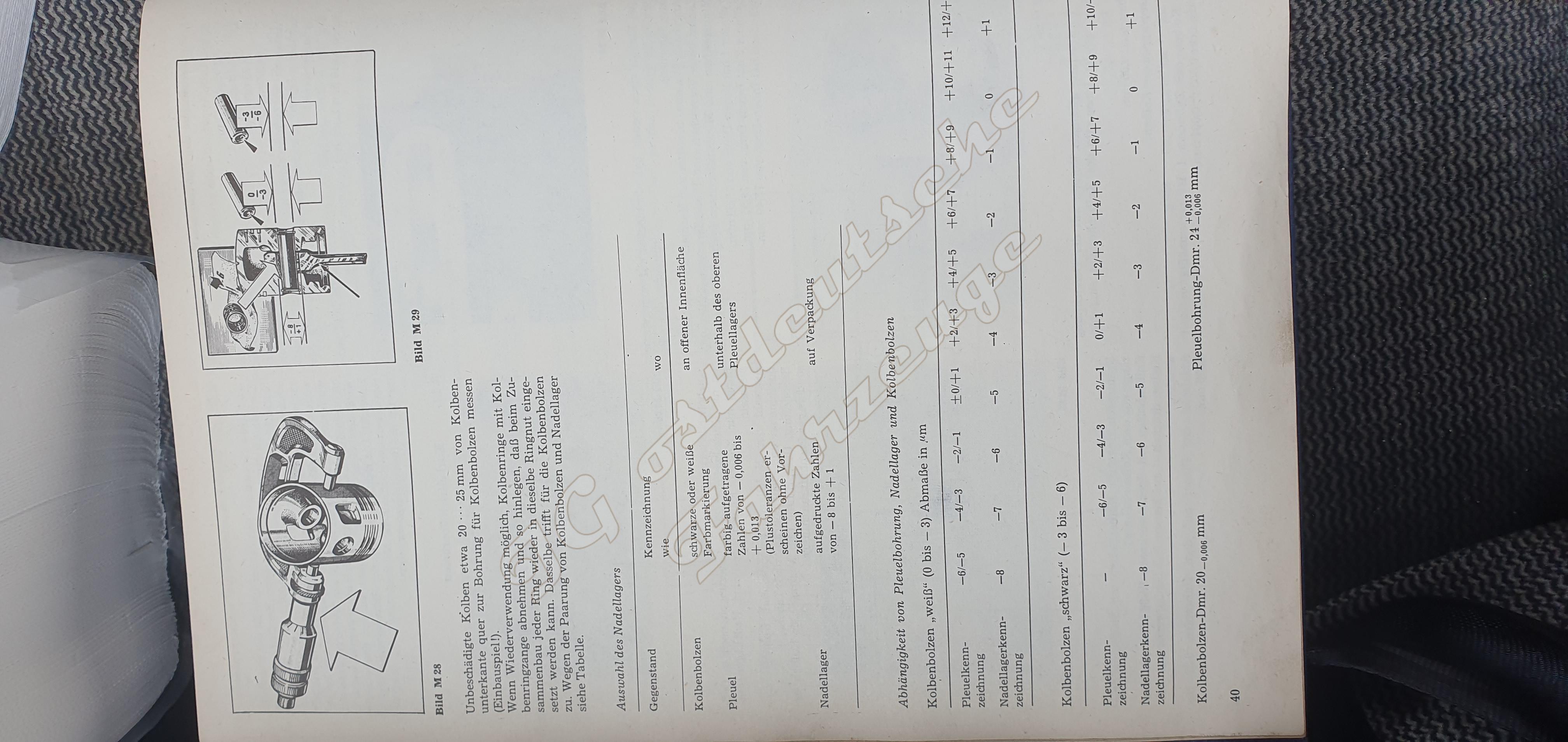 Die Sache mit den Oberen Pleullagern gestaltet sich etwas schwierig. Scheinbar gibt es aktuell keine Einteilung und Zuordnung in Toleranzgruppen. Die Geräuschbildung der aktuellen Kombination im instandgesetzten Motor ist mir etwas zu laut. Allerdings ist da auch ein 1/100mm zu kleiner Kolben drin, der auch Geräusche bildet (Kolbenkippen). Das sind eher Komfortgeschichten, aber nicht schön, sen ein Wartburgmotor bildet bist auf die Verbrennungsgeräusche keine weiteren Geräusche und das möchte ich gern so haben.