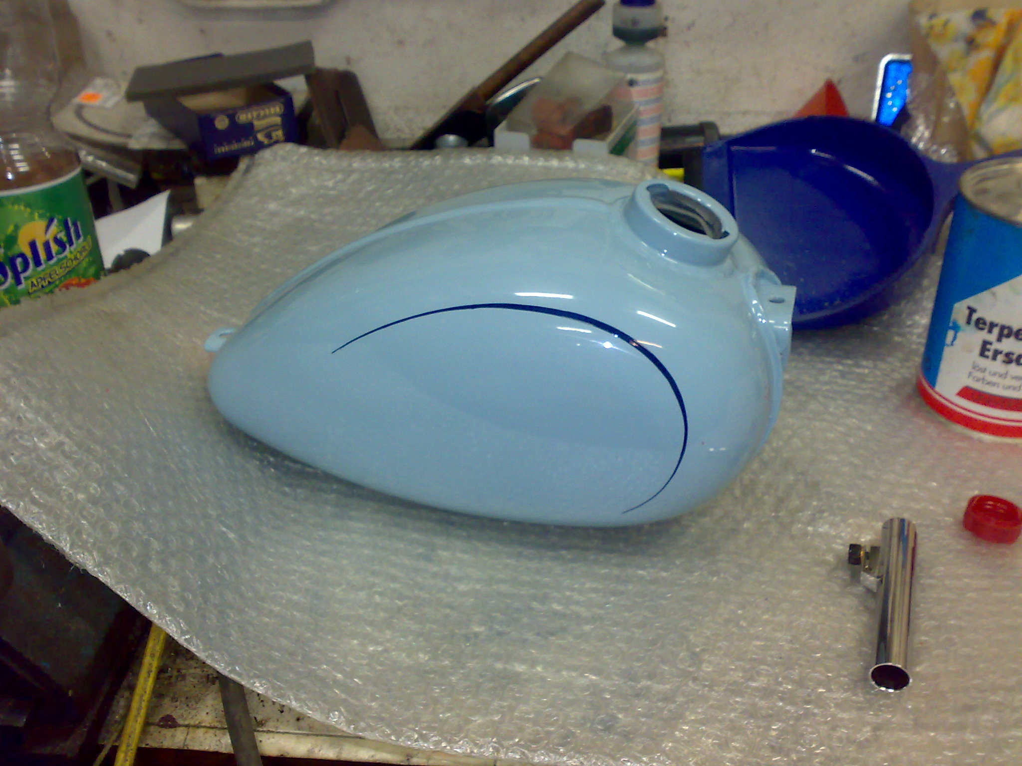 Ist nicht ganz korrekt sorry Sven wenn ich wieder spreche die Farbe ist nicht zu 100% Benzinfest, also gerade beim Tank würde ich noch Klarlack drauf machen.