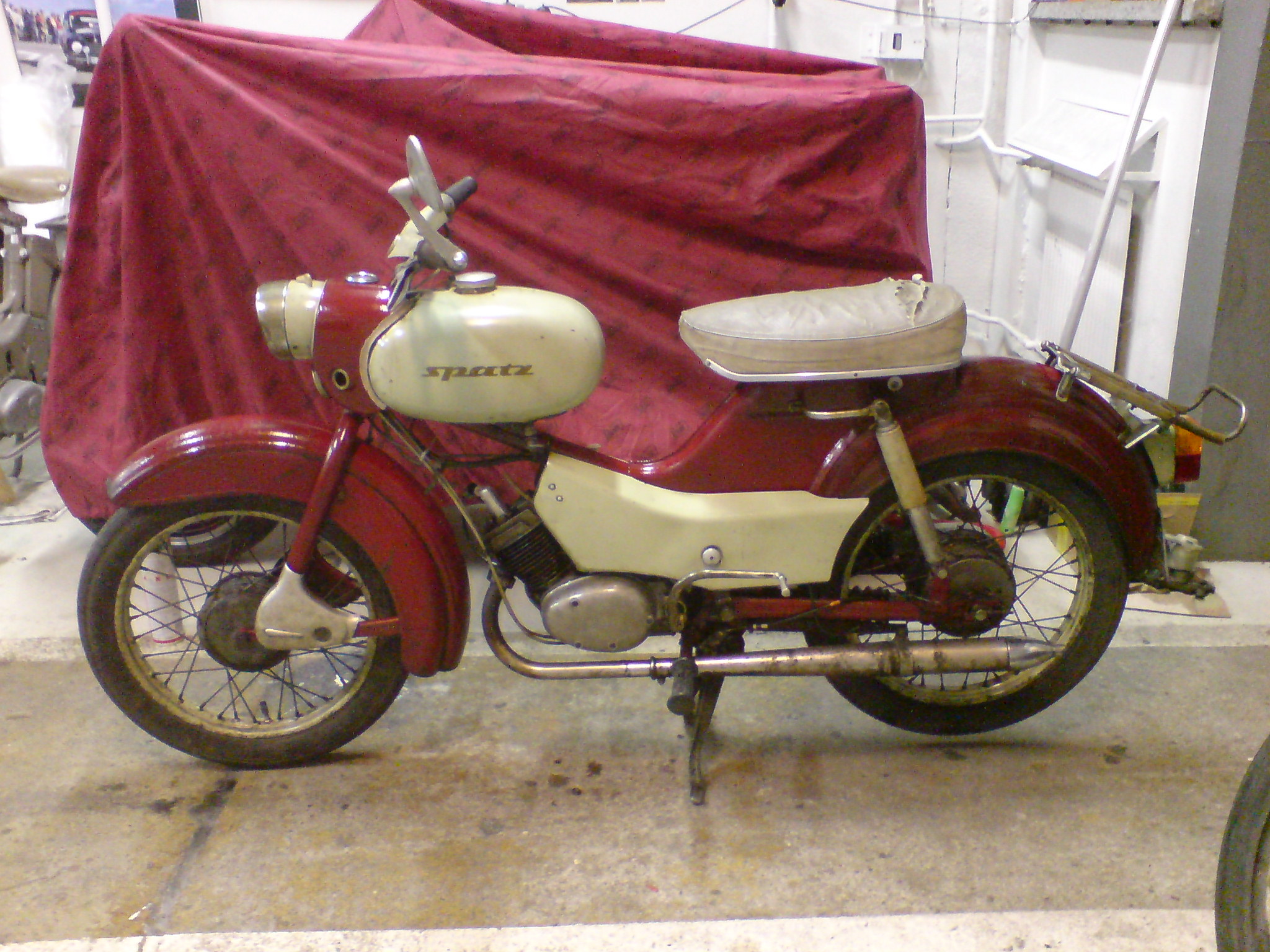 Glanzesser, unrestauriert mit glänzendem Originallack. Eigentlich gefällt er mir mit maronenen Seitenblechen besser... Er hatte beim Kauf nicht mal 500km weg und vieles spricht tatsächlich dafür!