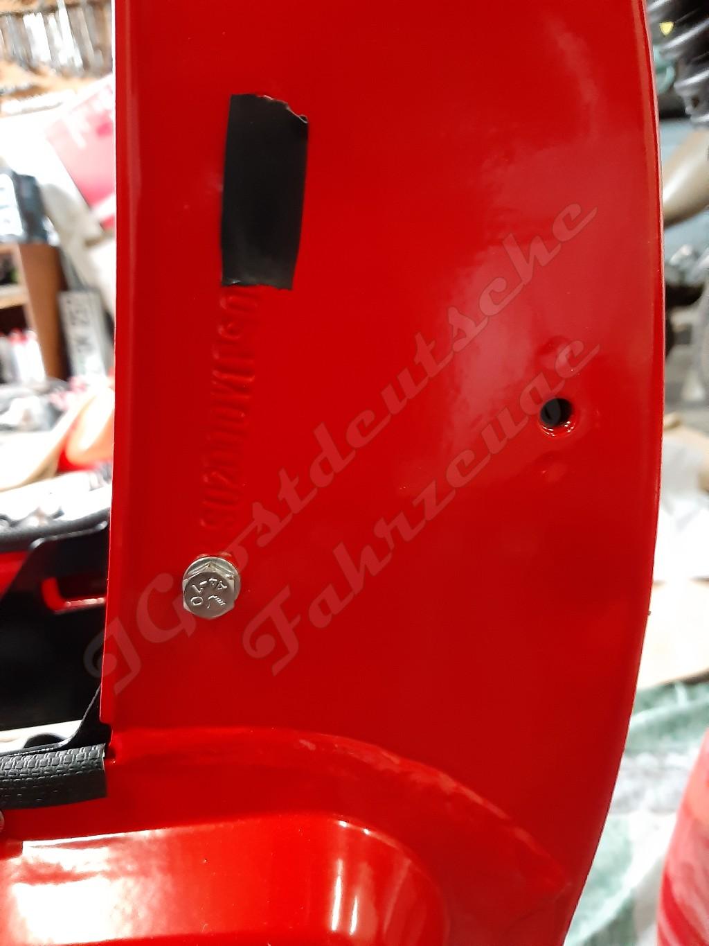 Bei so einer Kurvenfahrt in diesem Zustand, treten Kräfte am Rahmen auf, die der einfache Rollerrahmen nicht verkraften kann und dadurch Risse entstehen werden, um diesem jedoch vorzubeugen, wurde an beiden Seiten vor der vorderen Verstrebung (unter dem Tunnel), Verstärkungsbleche angebracht, die diese Kräfte aufnehmen.