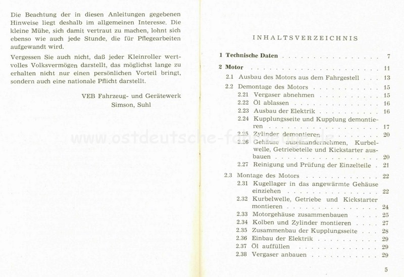 Simson Suhl Reparaturanleitung KR50 2.Auflage 15.12.1961 keine Bedienungsanleitung Simson Suhl Kleinroller 50