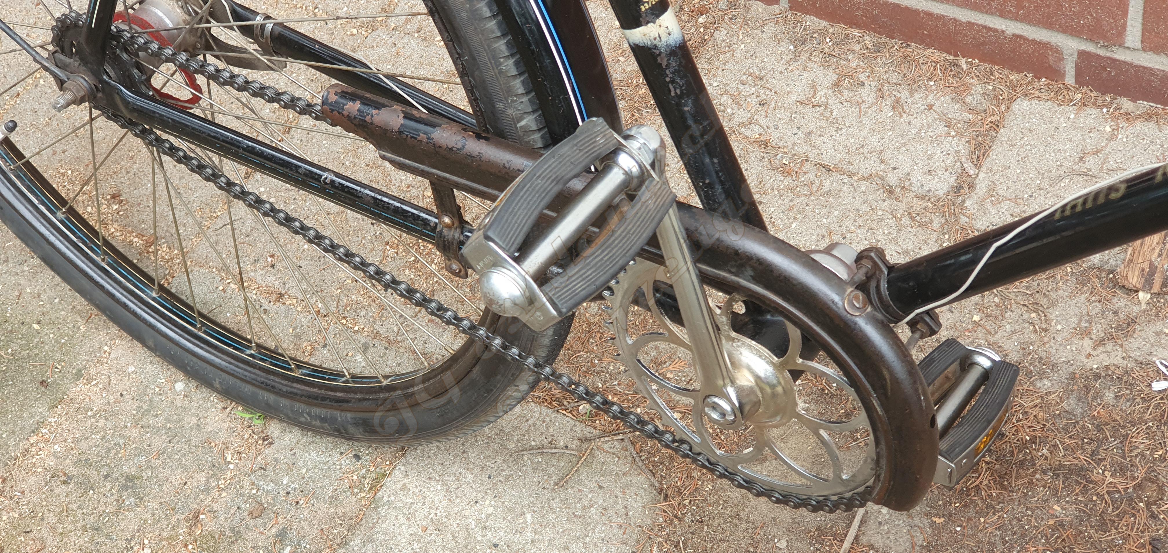 Das "neue" Kettenblatt ist mit dem Alten Baugleich, wurde aber in der DDR mal neu verchromt. Das Tretlager war schon ziemlich trocken und hatte Spiel. Es ließ sich leider nicht mehr zerstörungsfrei zerlegen.