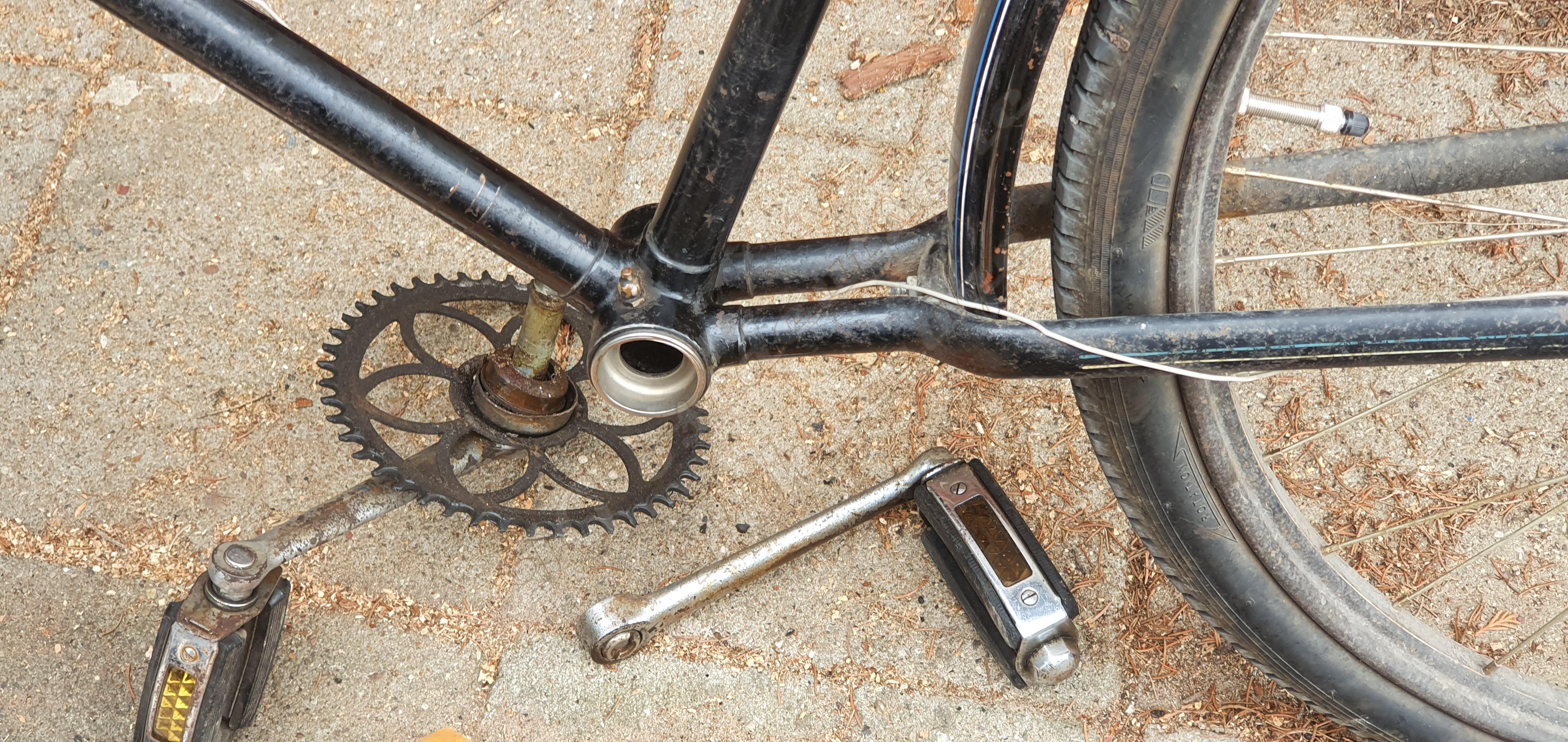 Gestern habe ich die Kurbelgarnitur und das Tretlager vom Simson Fahrrad gewechselt. Dazu musste ich die Tretlagerwelle leider durchsägen.