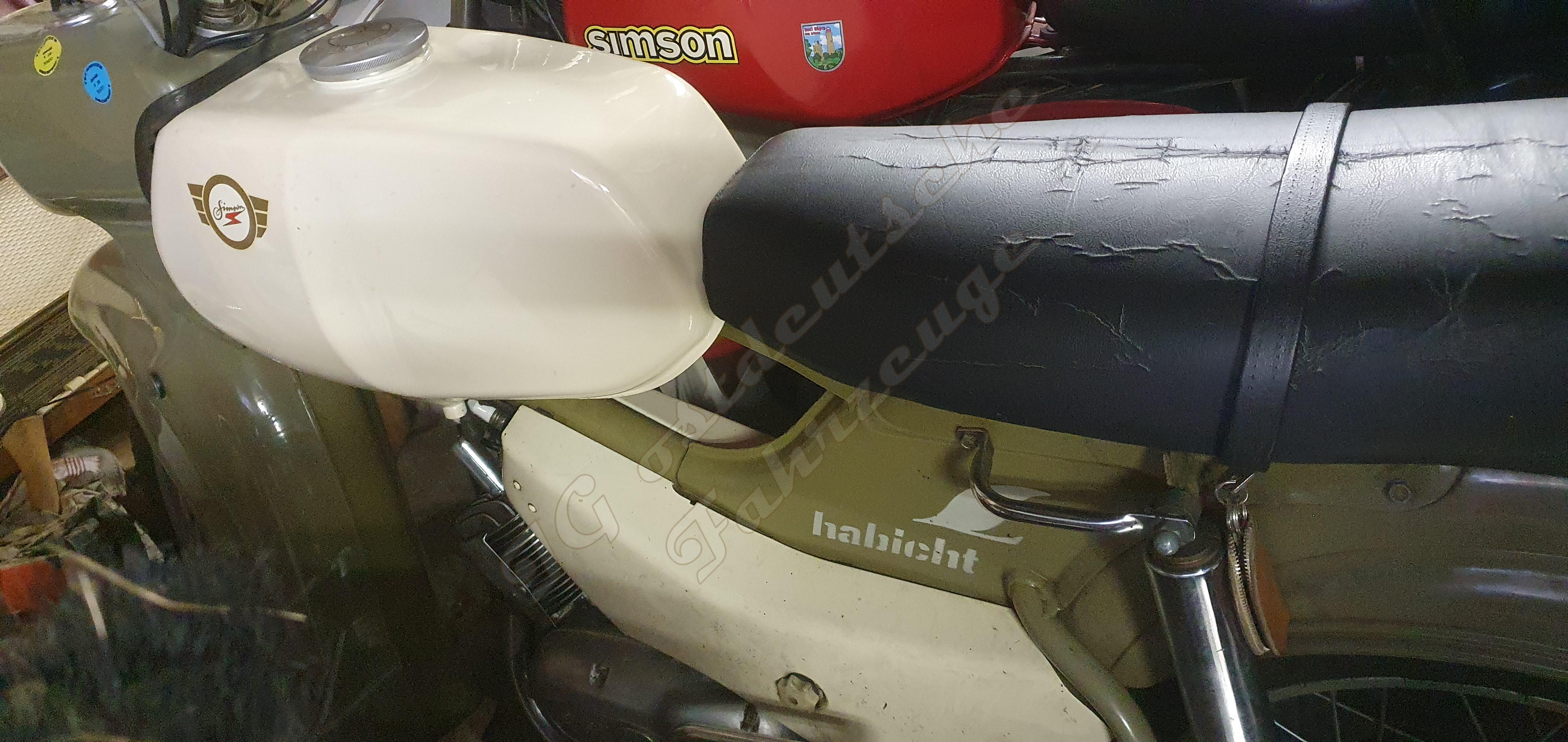 Hai Leute, ich habe mir schon vor längerer Zeit einen Nachbautank in Alabasterweiß für meinen Habicht gekauft. Er hat 120 Euro gekostet. Augenscheinlich sah er identisch mit dem Originaltank aus. Ich habe Abziehbilder draugeschoben und ihn heute angebaut. Er passte fast. Nach Lösen der Lampenmaske ging er endlich nach vorn. Das lackierte Benzinhahngewinde ist echt schlimm.