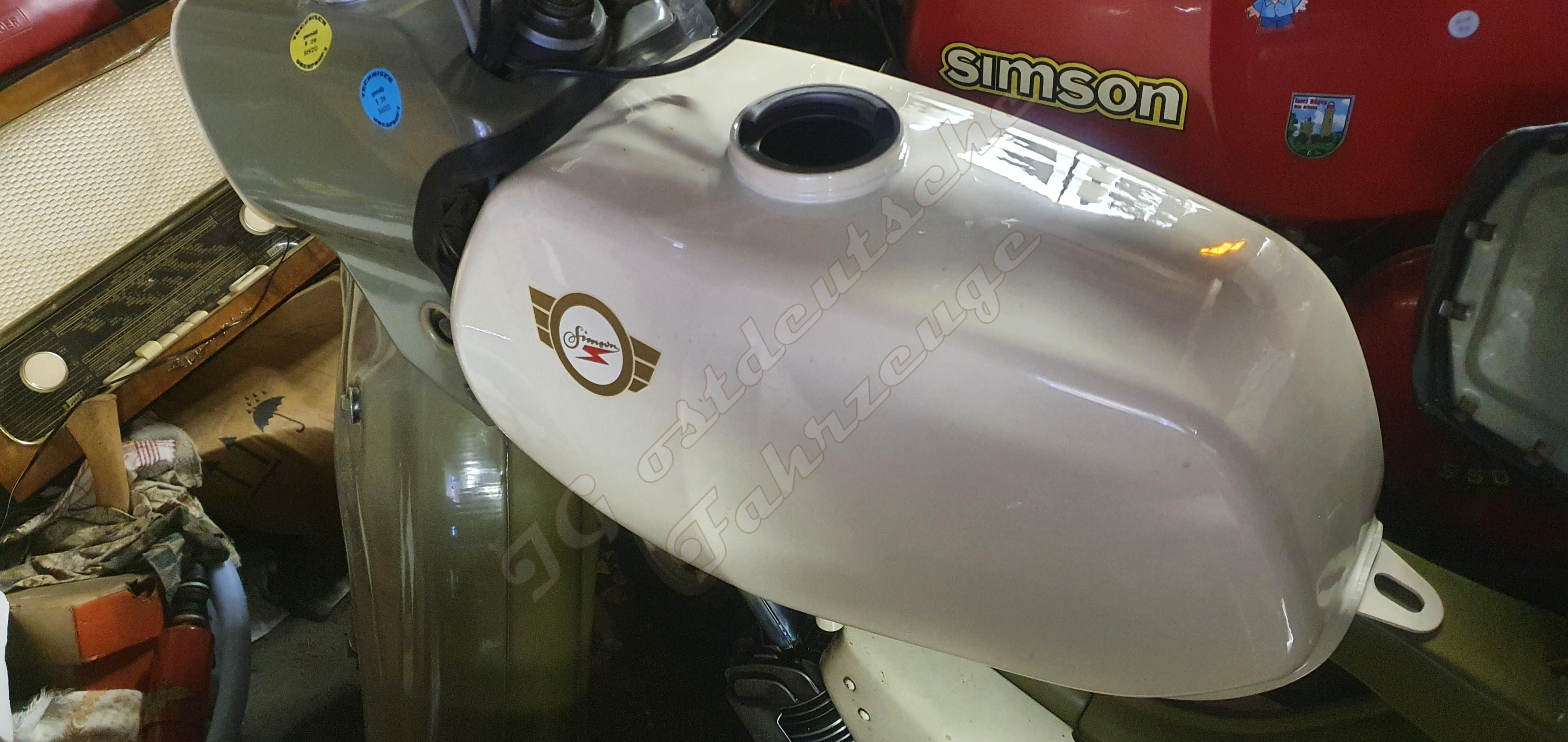 Hai Leute, ich habe mir schon vor längerer Zeit einen Nachbautank in Alabasterweiß für meinen Habicht gekauft. Er hat 120 Euro gekostet. Augenscheinlich sah er identisch mit dem Originaltank aus. Ich habe Abziehbilder draugeschoben und ihn heute angebaut. Er passte fast. Nach Lösen der Lampenmaske ging er endlich nach vorn. Das lackierte Benzinhahngewinde ist echt schlimm.