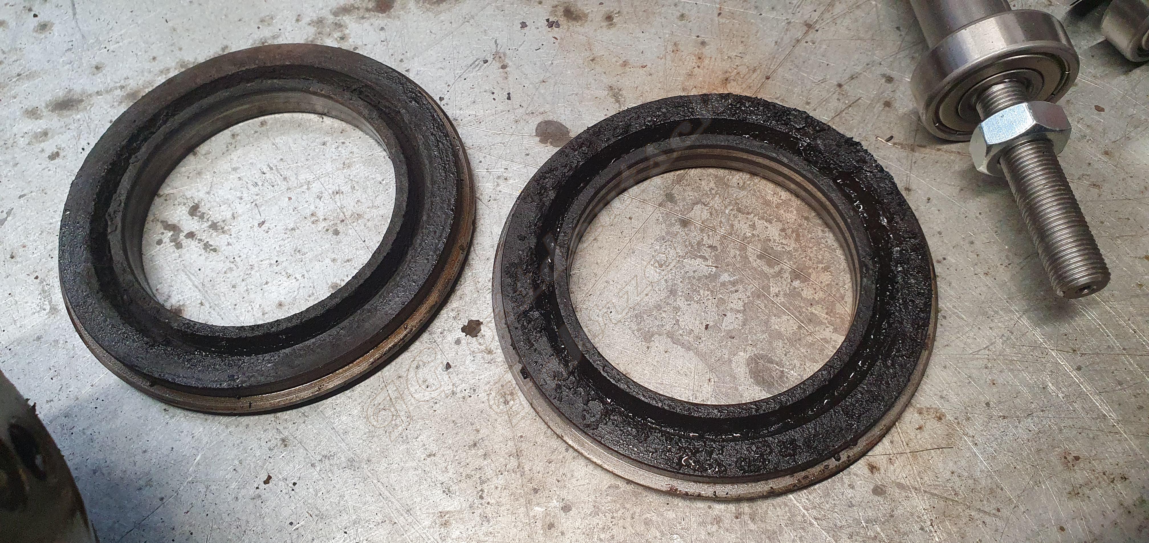 Er lässt sich demontieren. Es liegt kein Schmiermittelmangel vor, es ist sehr wahrscheinlich, dass sich Ölkohle gelöst hat und danach der Pleulfuss Schaden nahm. Es war viel Kohle vorhanden, trotz 20.000km mit 1:100. Sie befand sich Hauptsächlich in den Hauptlagern und den Dichtungsdeckeln der Kolbenringabdichtungen.