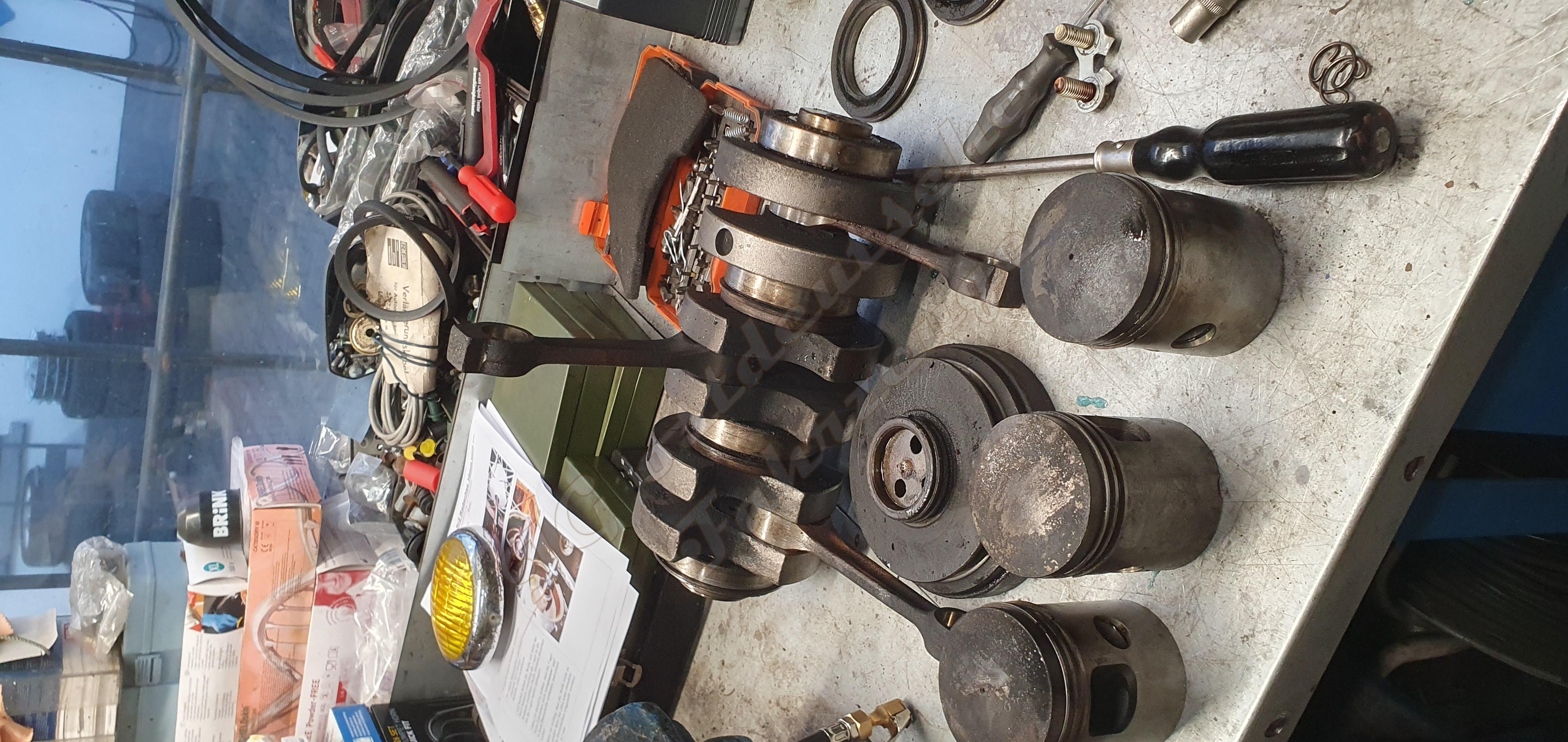 Neue Kolben im 2. Schliffmaß hatte ich noch da, eine regenerierte Kurbelwelle und ein neuer Zylinderkopf liegen hier auch noch rum. Der Zylinderblock ist jetzt in der Zylinderschleiferei.
