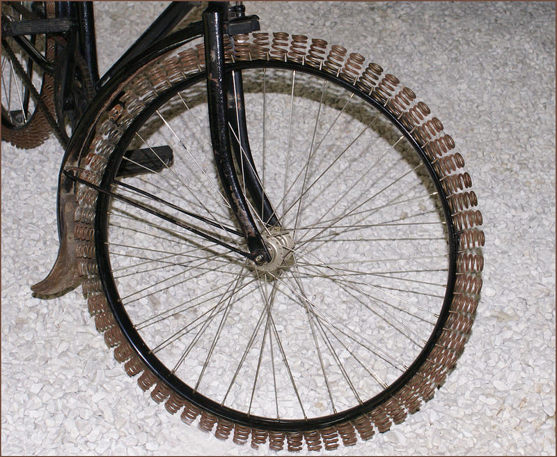 Hier mal ein Beispiel für eine Notbereifung , die Firma hiess "Spirala" . Sowas gabe es nach beiden Weltkriegen aufgrund des Kautschukmangels wegen der Alliierten Blockaden .