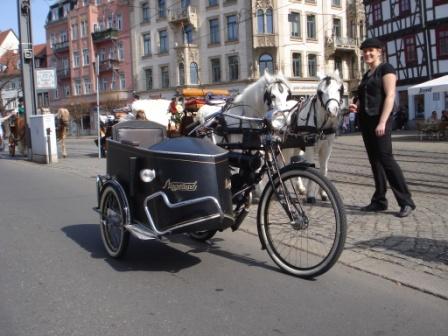 ER schiebt das Fahrrad auf fast 50 Sachen und ist wirklich vollgasfest, bei einer Oldtimerrally bin ich ca 90 Kilometer Volllast gefahren, strömender Regen und habe versucht mit einer DKW 200SB mitzuhalten....