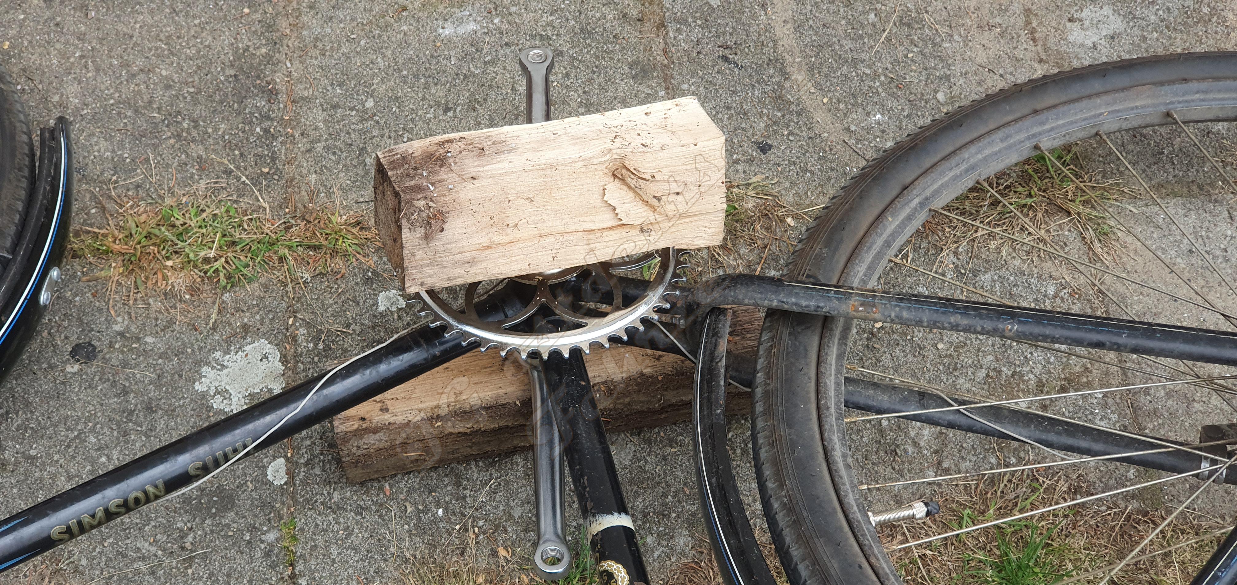Gestern habe ich die Kurbelgarnitur und das Tretlager vom Simson Fahrrad gewechselt. Dazu musste ich die Tretlagerwelle leider durchsägen.