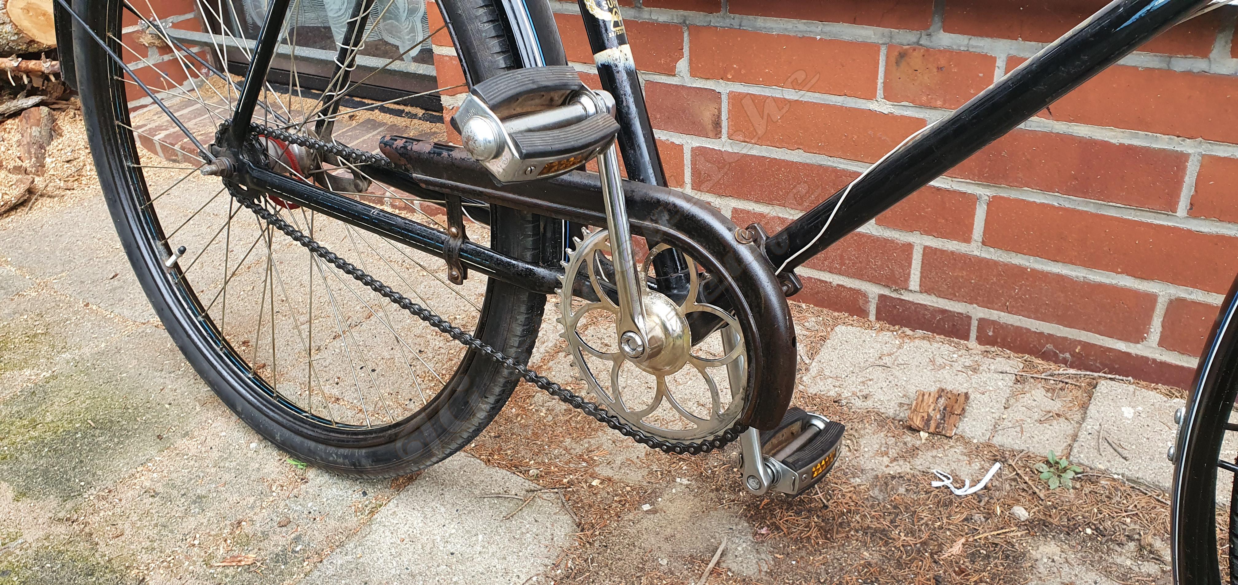 Das "neue" Kettenblatt ist mit dem Alten Baugleich, wurde aber in der DDR mal neu verchromt. Das Tretlager war schon ziemlich trocken und hatte Spiel. Es ließ sich leider nicht mehr zerstörungsfrei zerlegen.