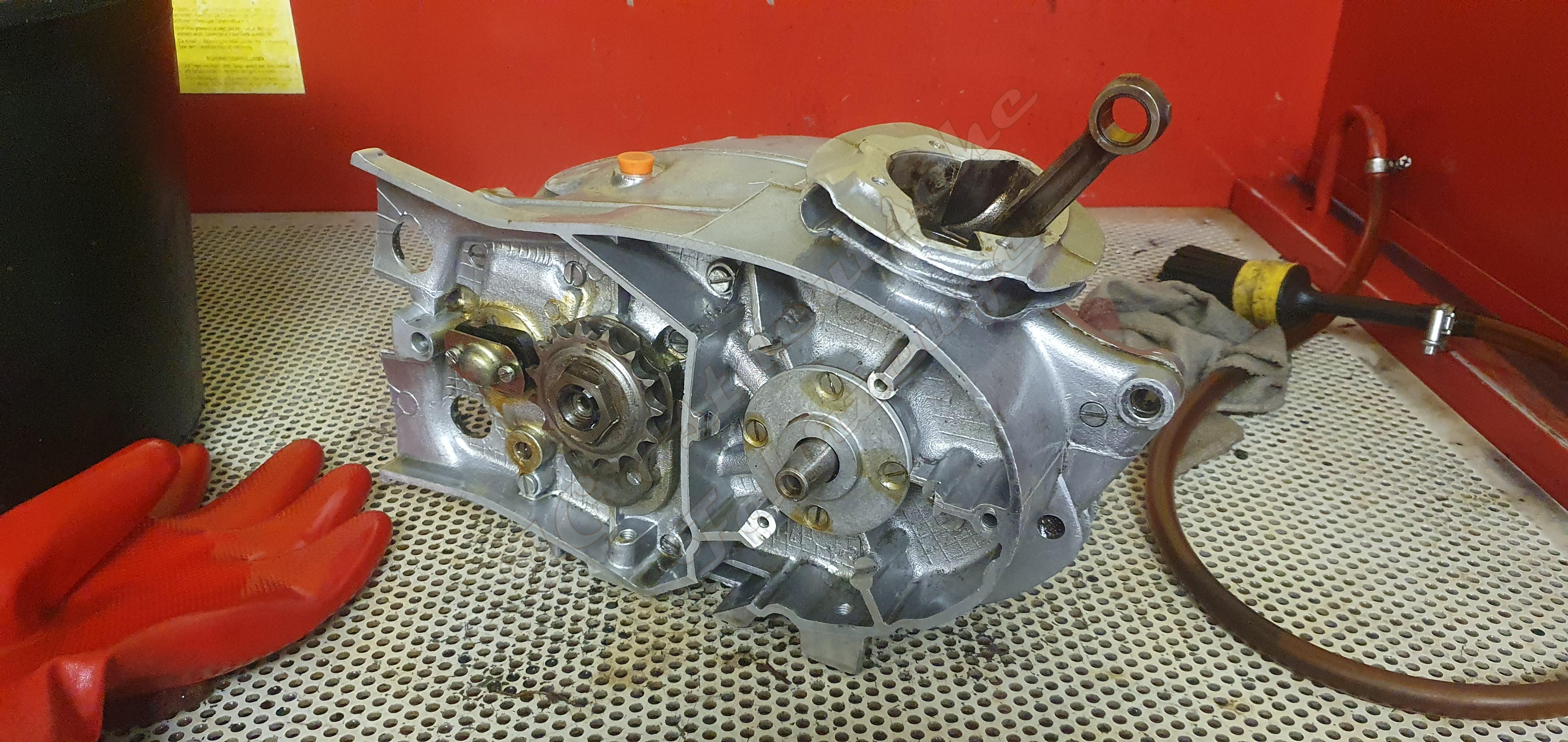 Ich habe mir einen Motor für die ETS gekauft. Es scheint ein 1976er Ersatzmotor zu sein. Auch scheint es, dass er noch ungeöffnet ist. Zunächst habe ich ihn etwa eine Stunde lang gereinigt. Ein Strahlen der Teile käme für mich nicht in Frage. Bei dem Ergebnis stelle ich erneut fest, dass ein Strshlen der Oberfläche unsinnig ist.