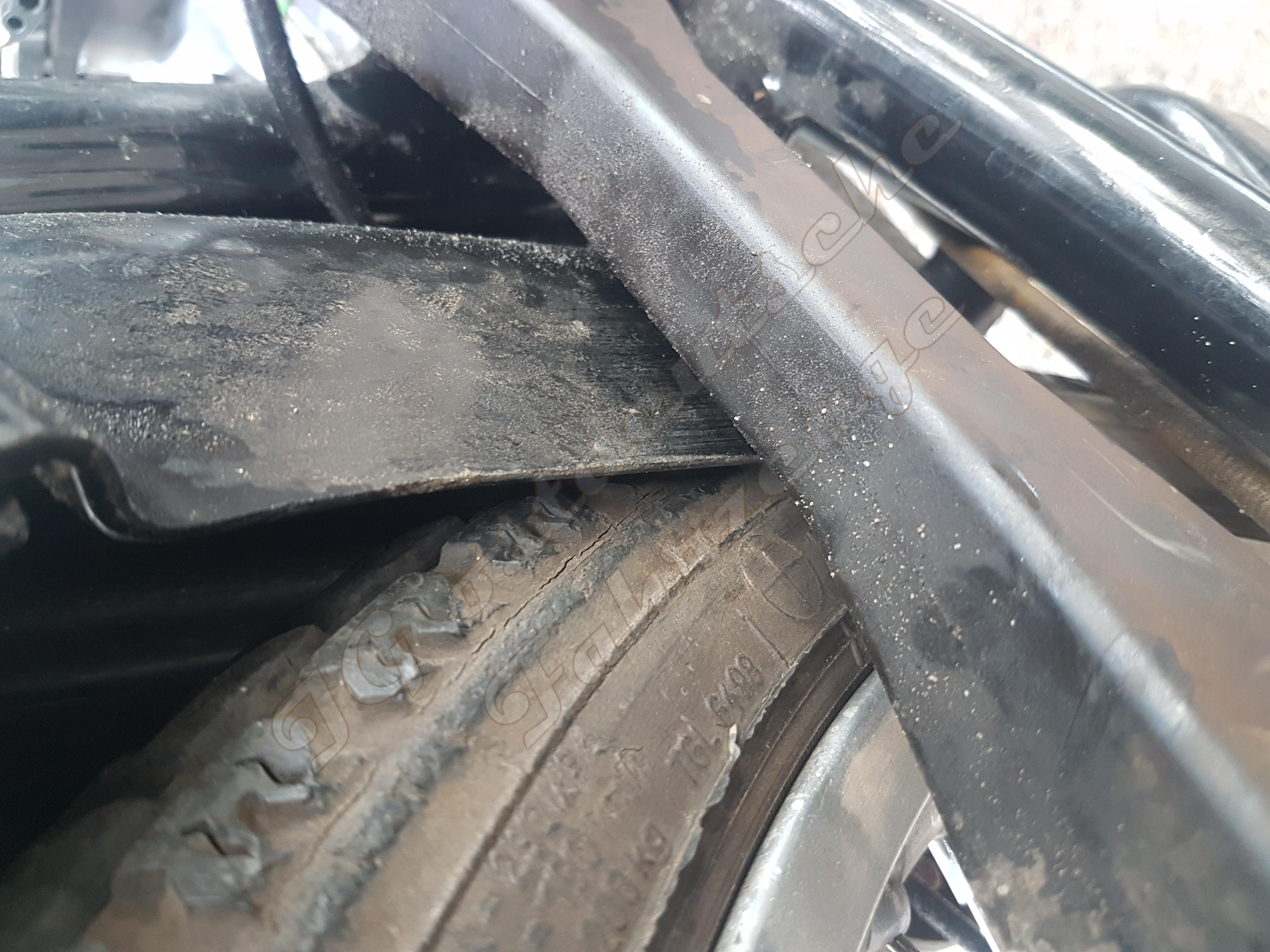 Die Schleifspuren am Reifen resultieren aus dem Kontakt zum Pressstoff.