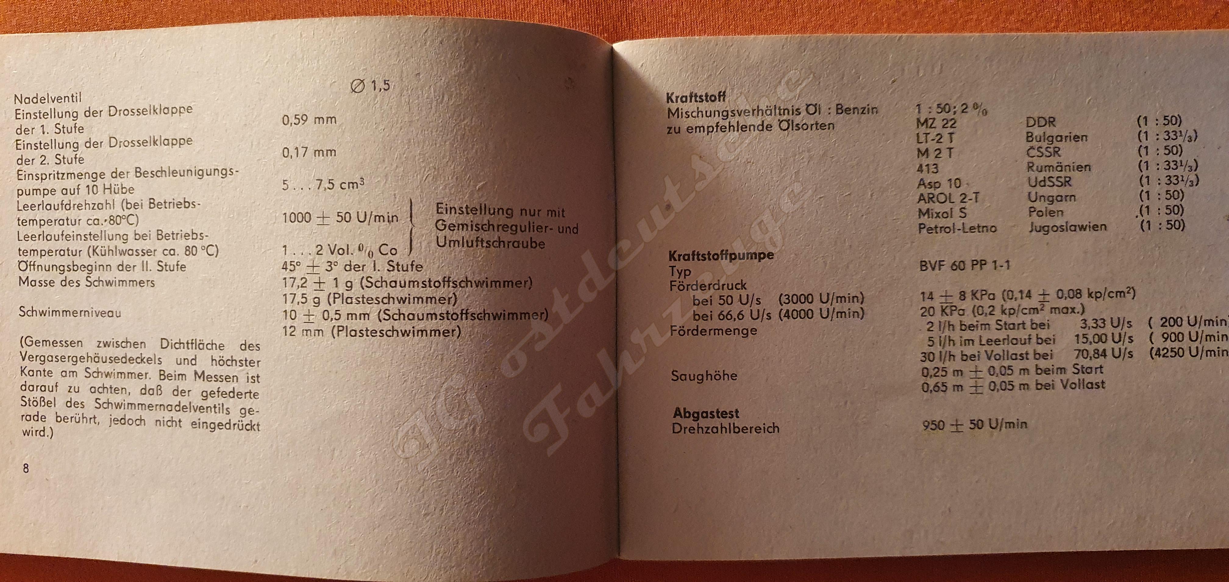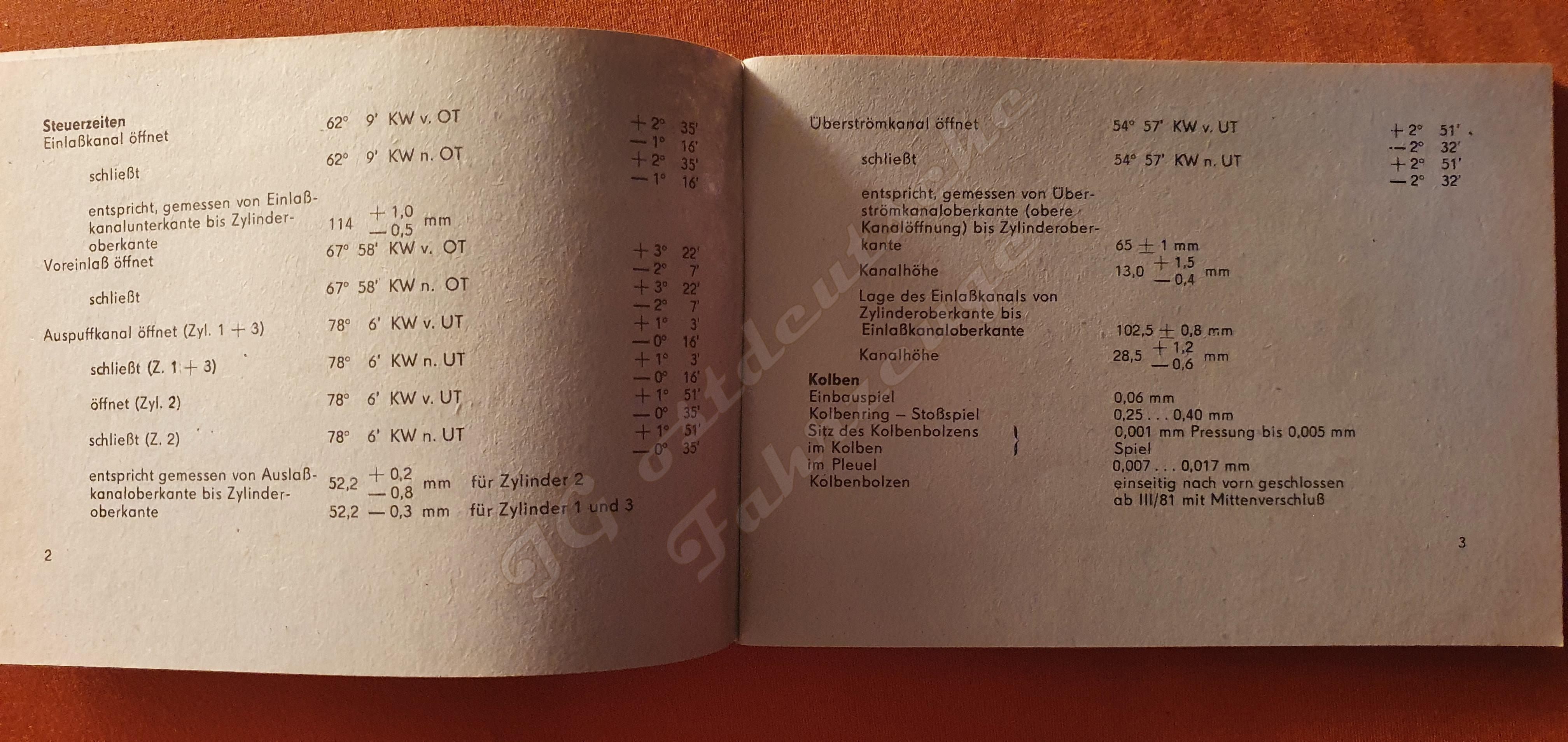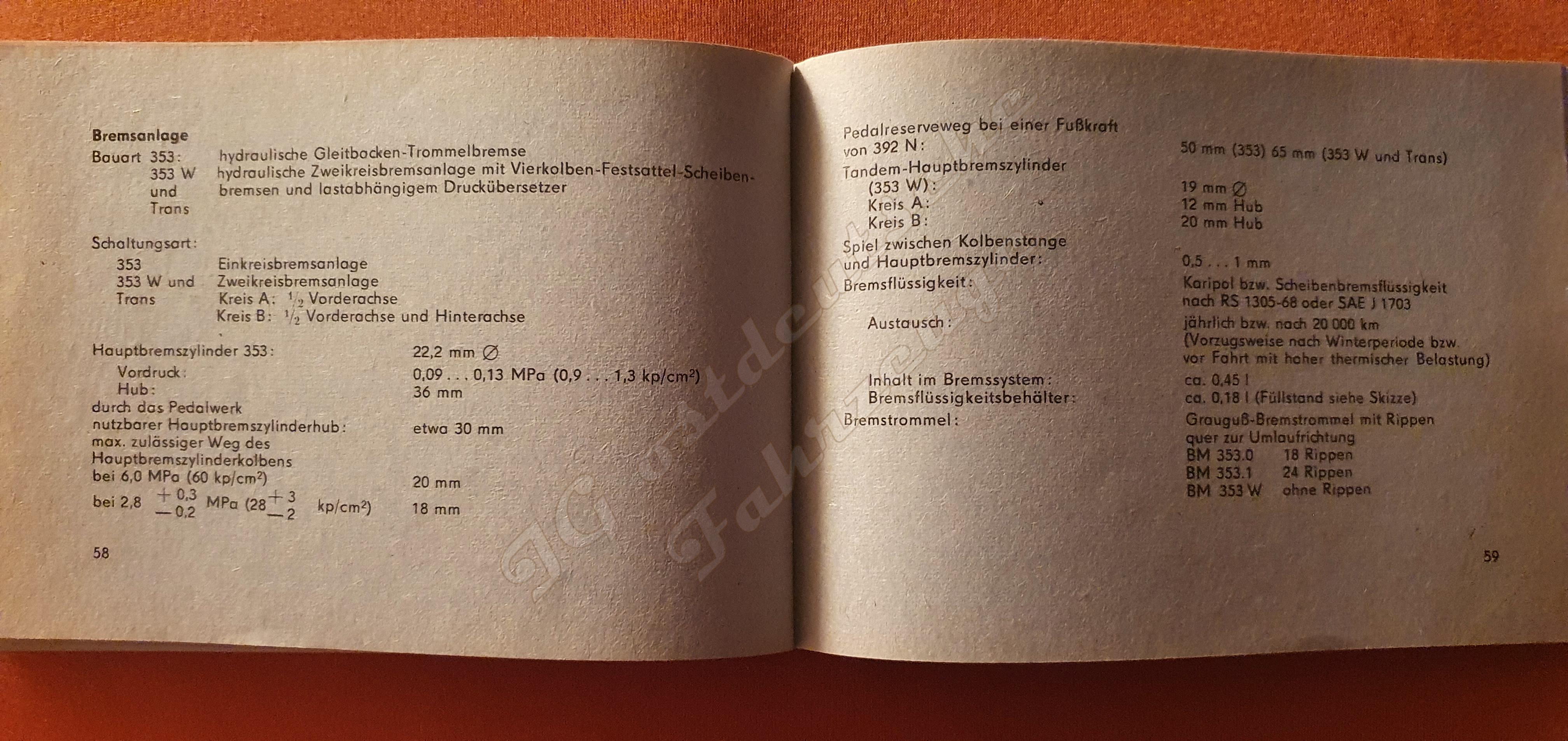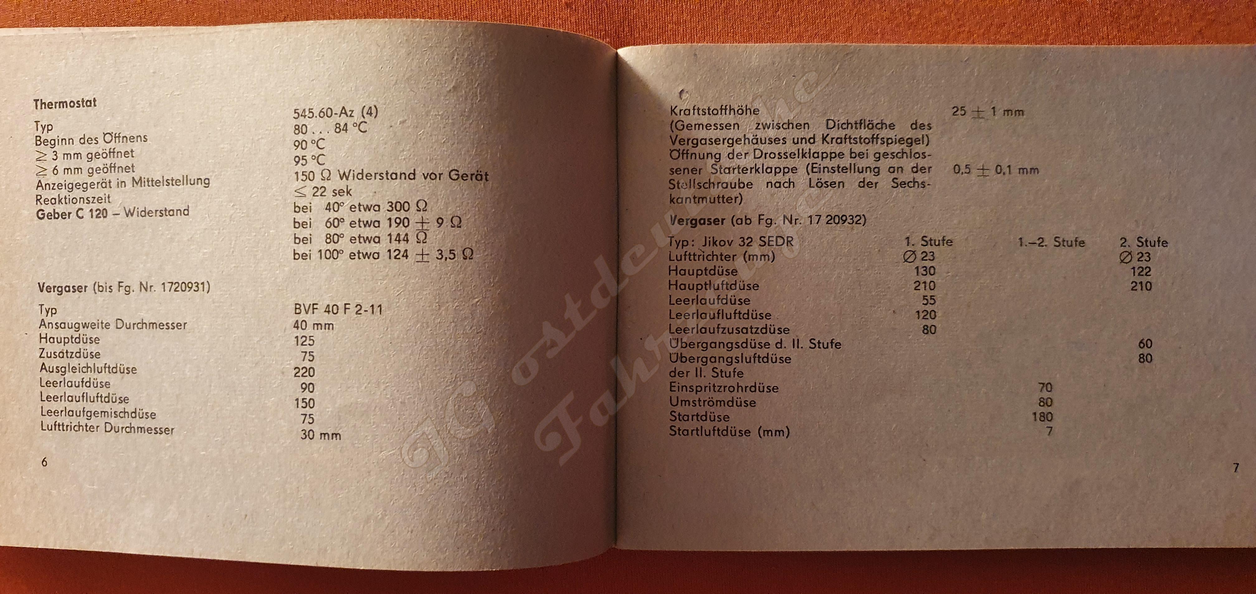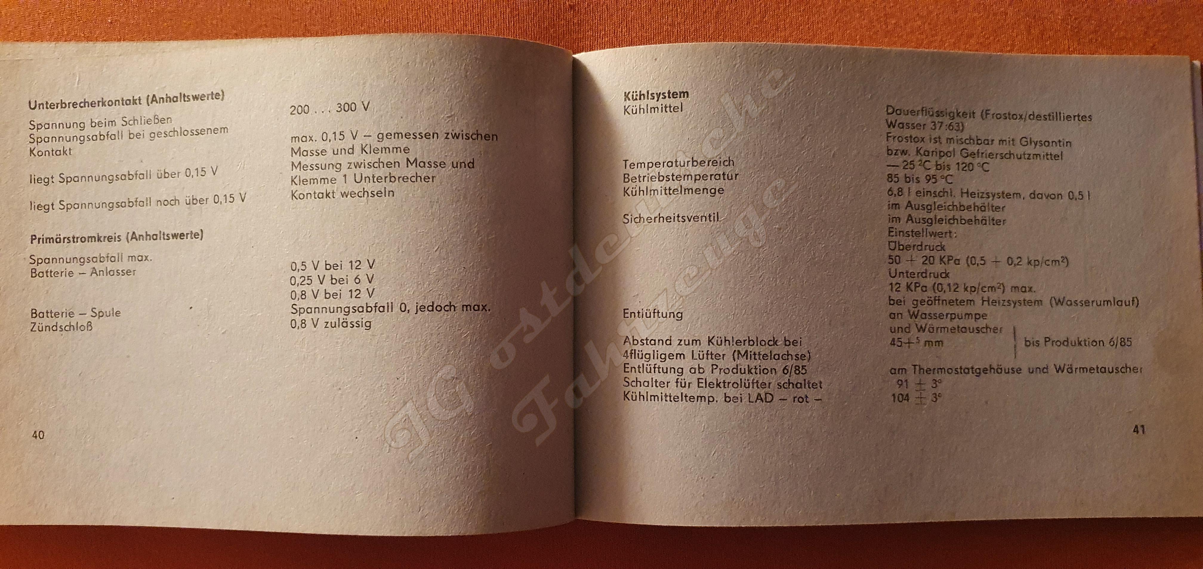 Wartburg 353 Technische Daten, Prüf- und Eindtellwerte