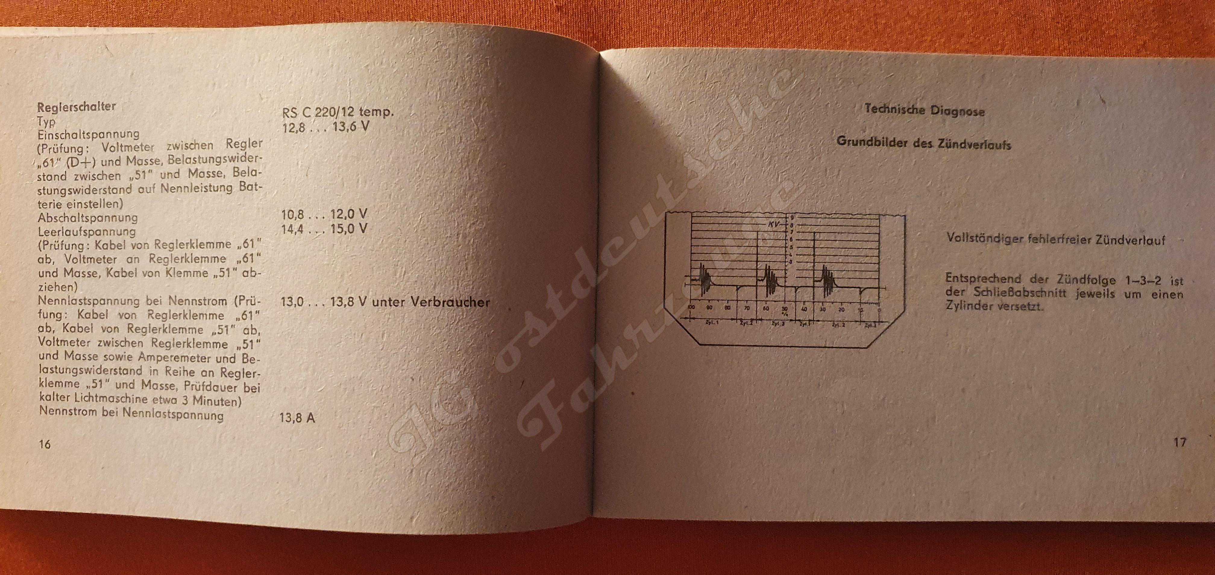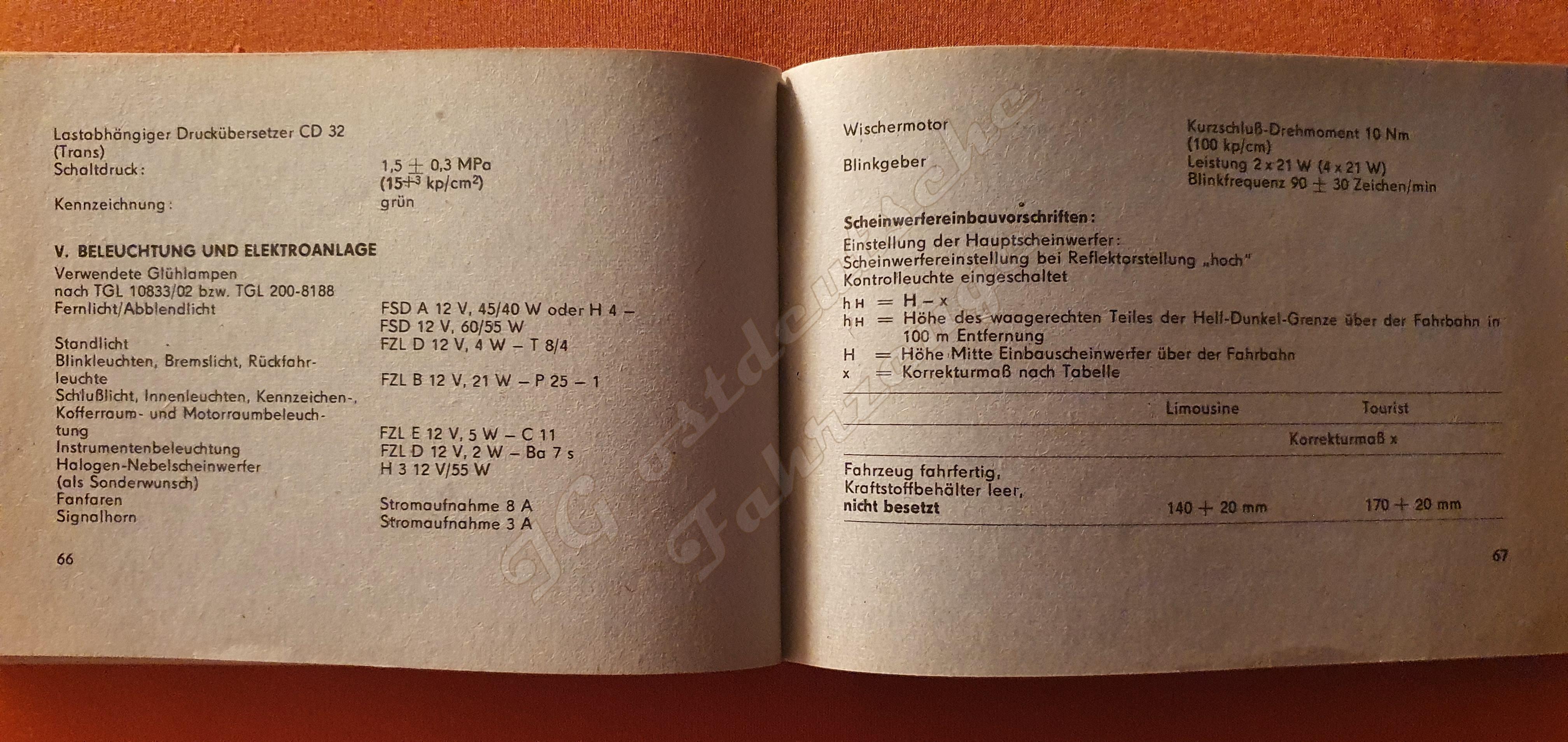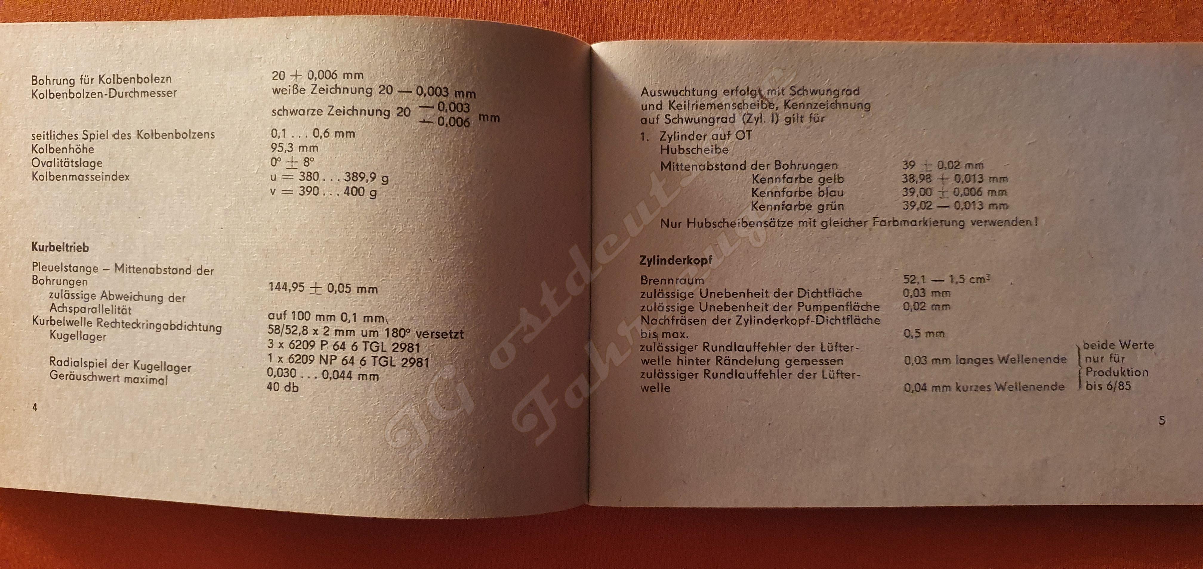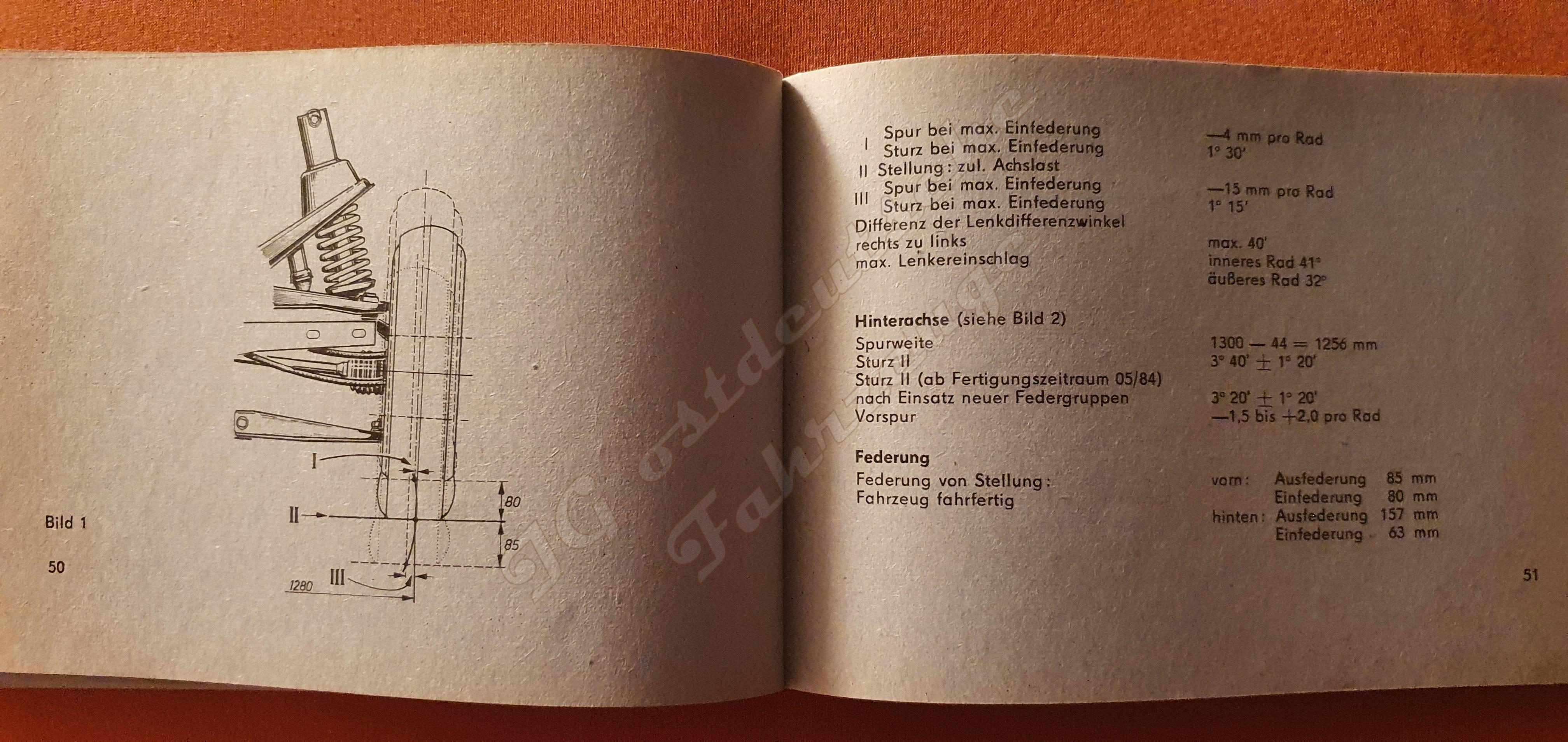 Wartburg 353 Technische Daten, Prüf- und Eindtellwerte