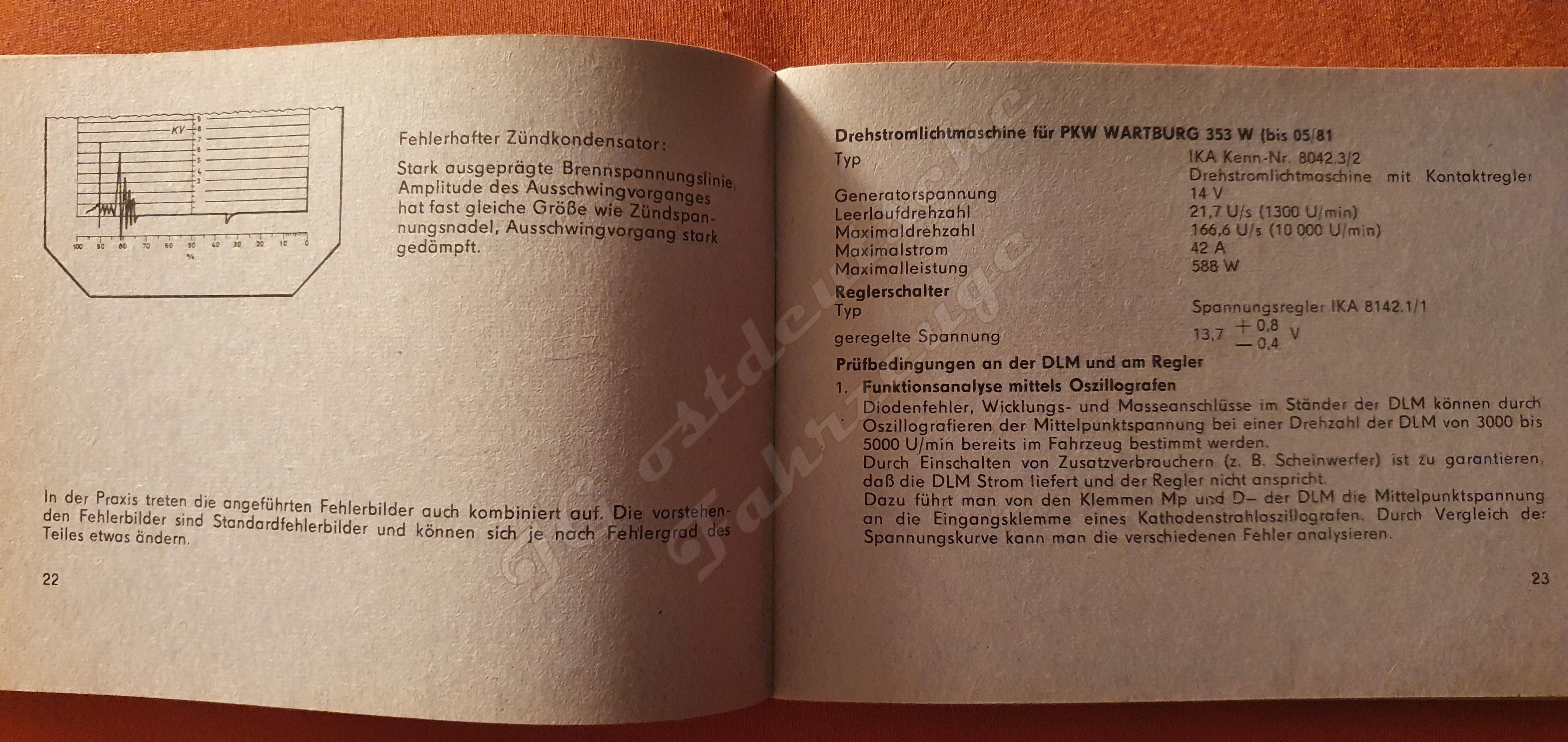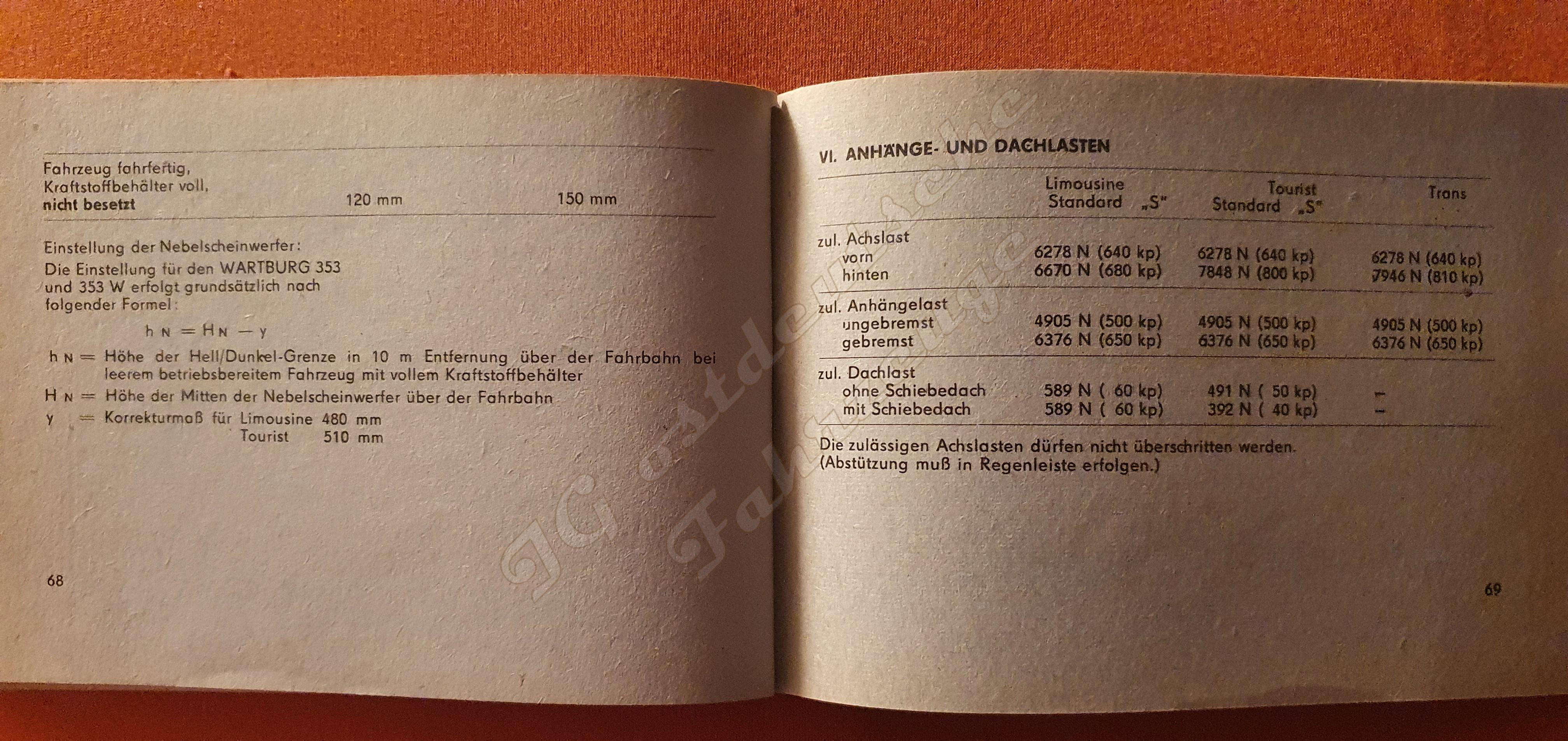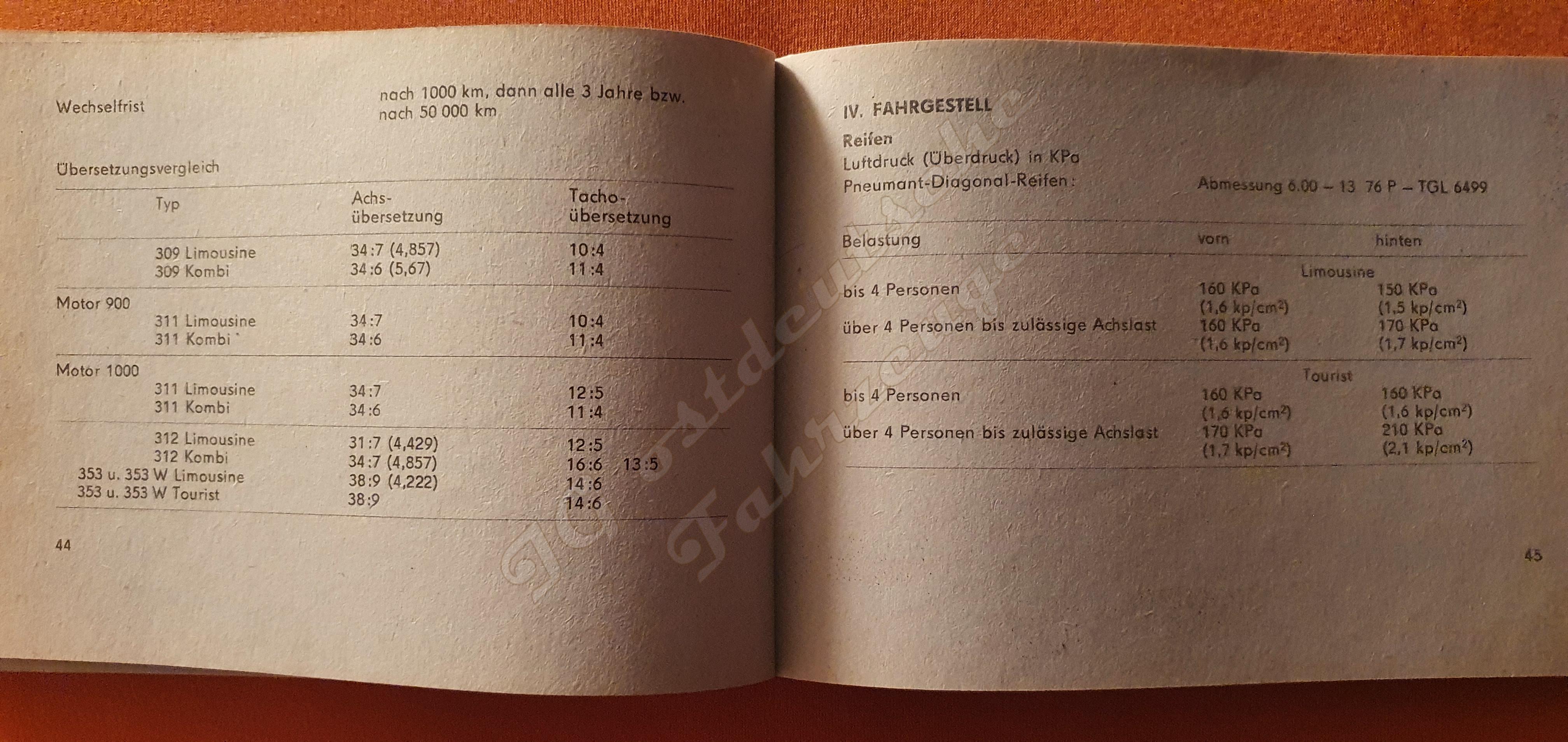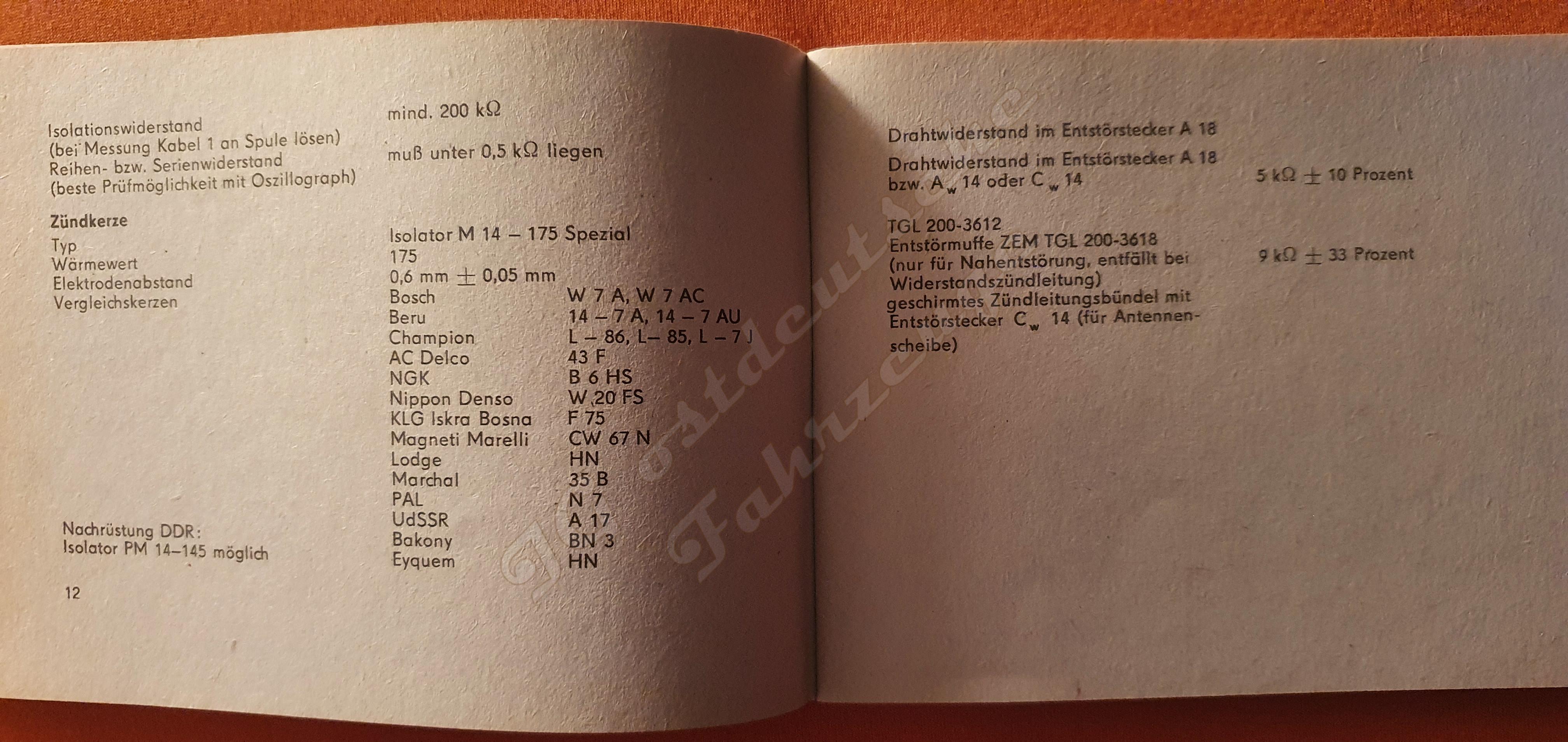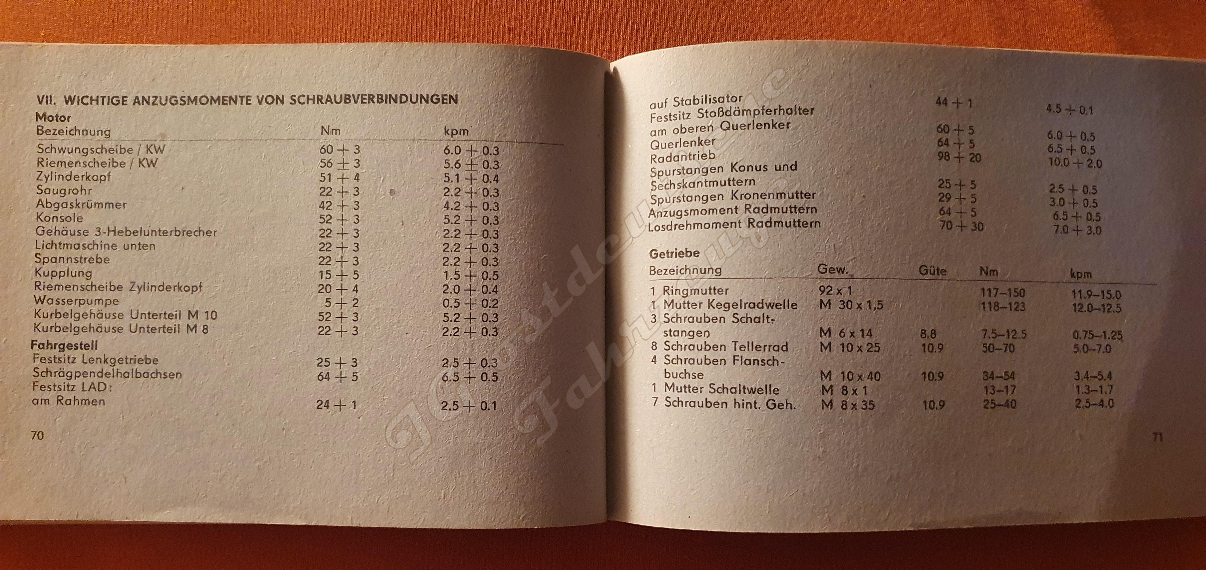 Wartburg 353 Technische Daten, Prüf- und Eindtellwerte