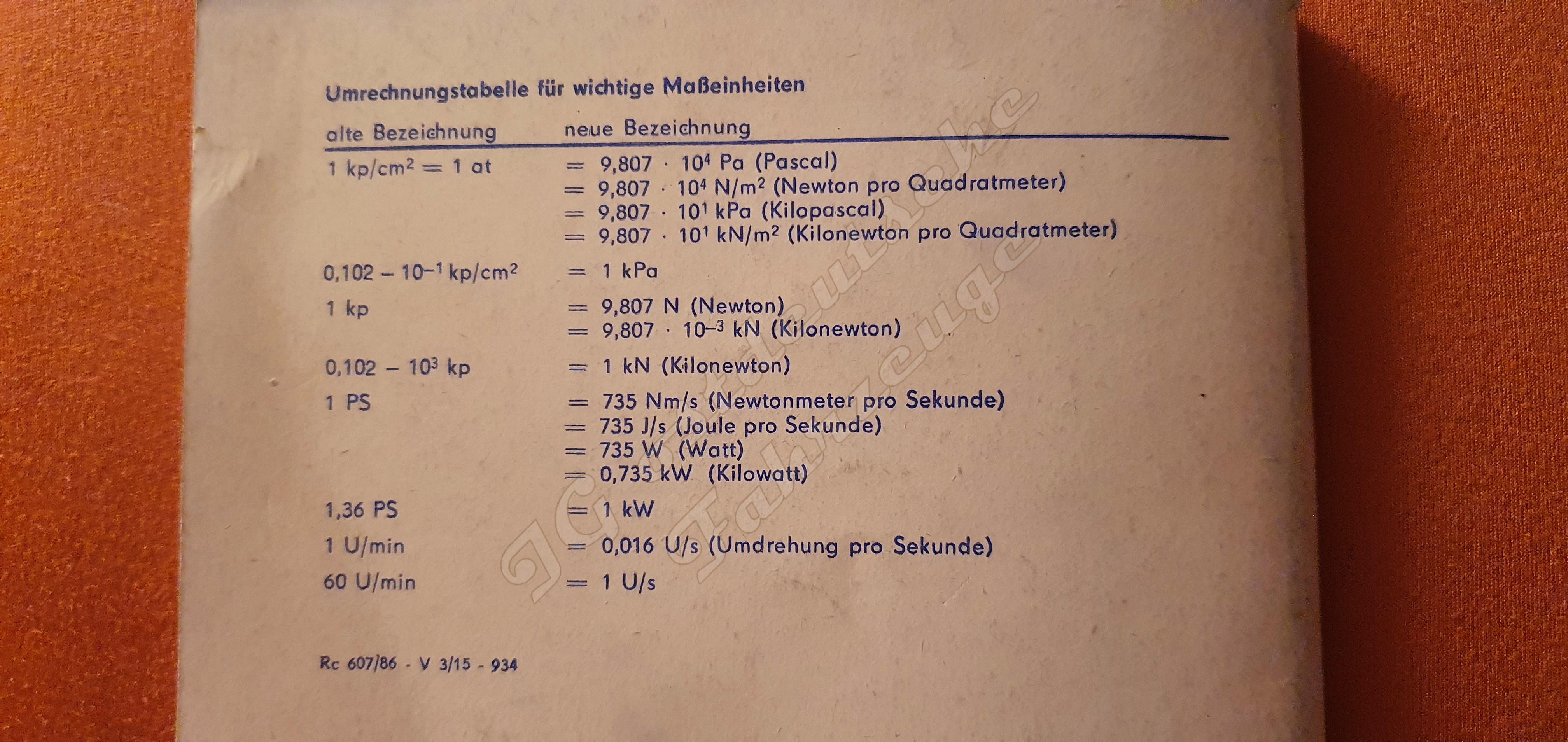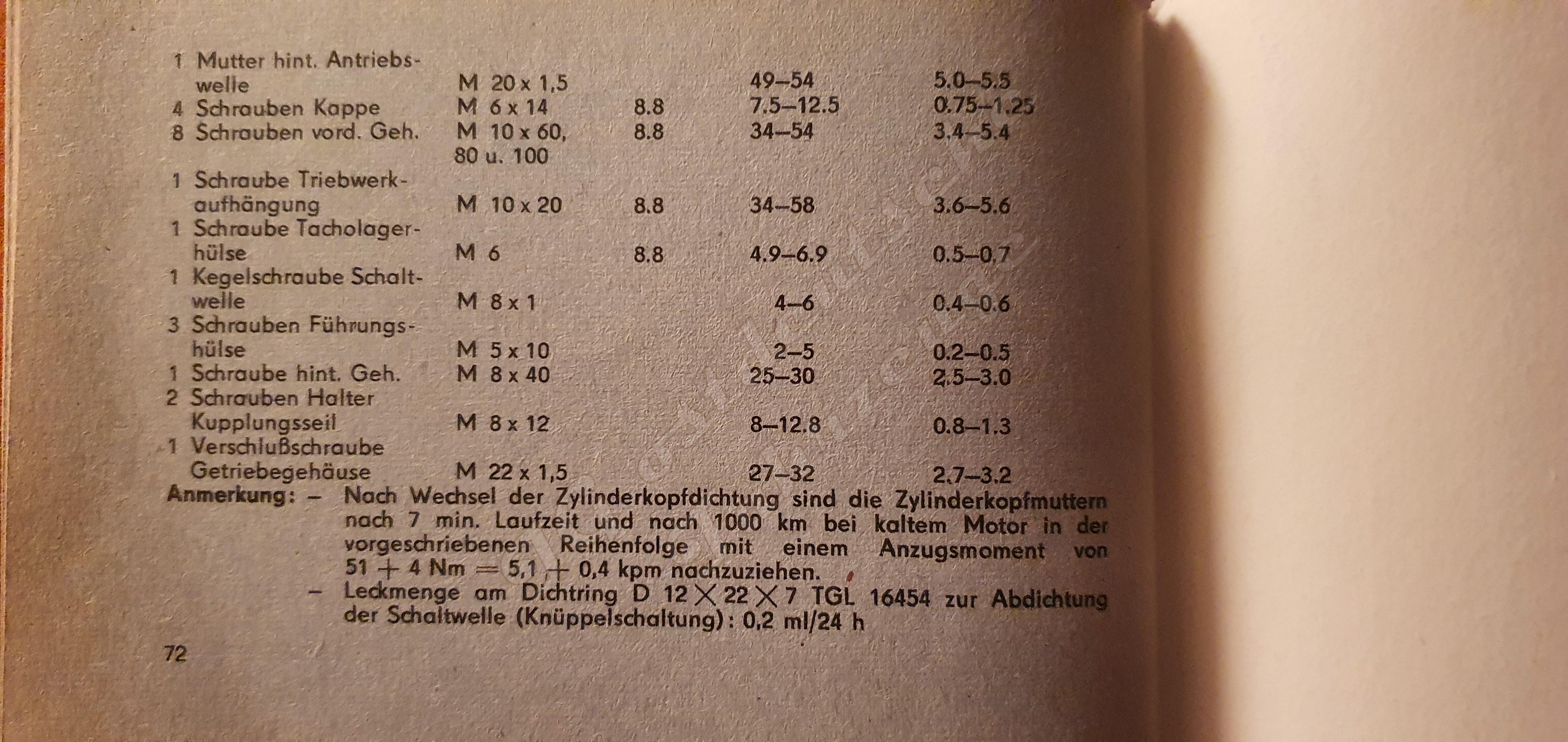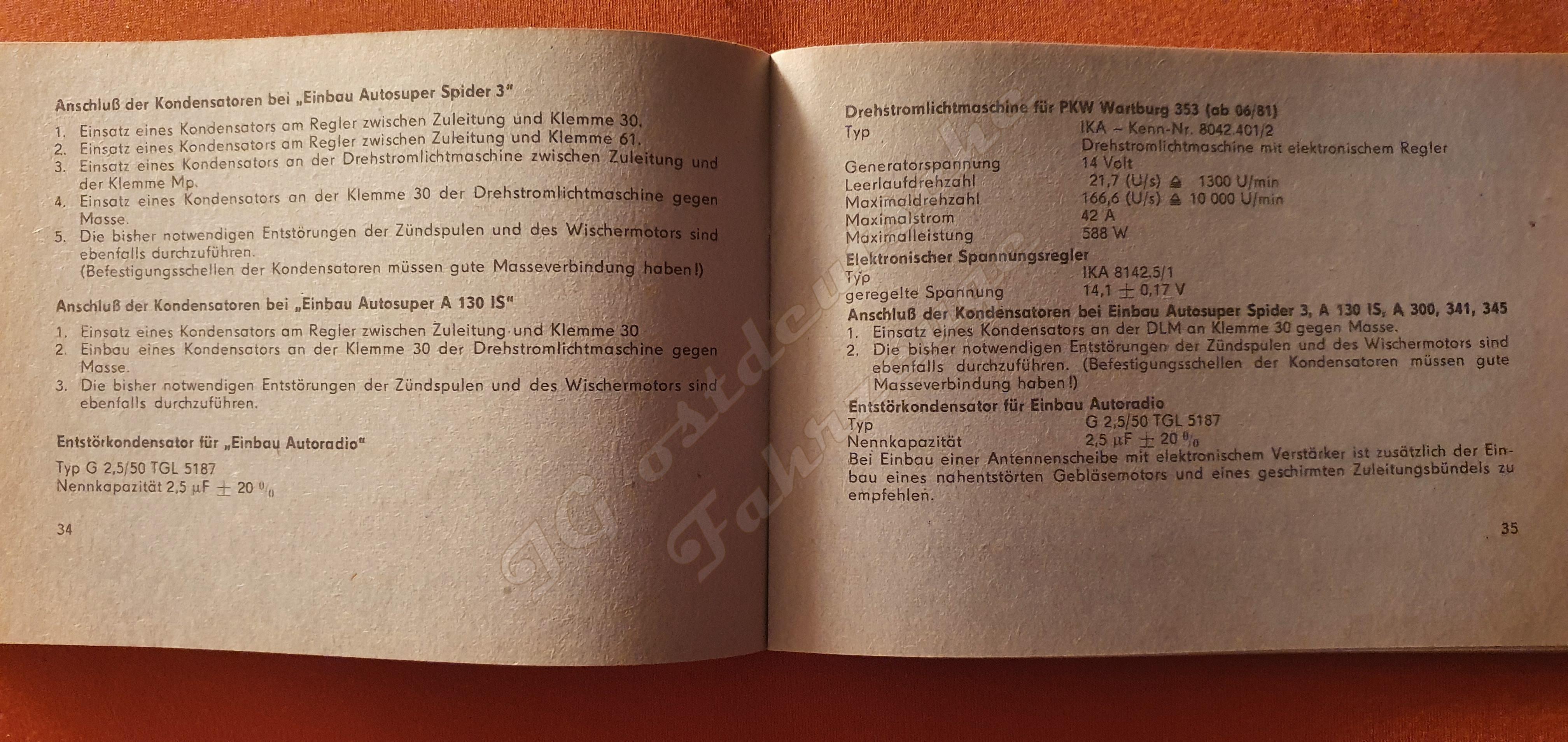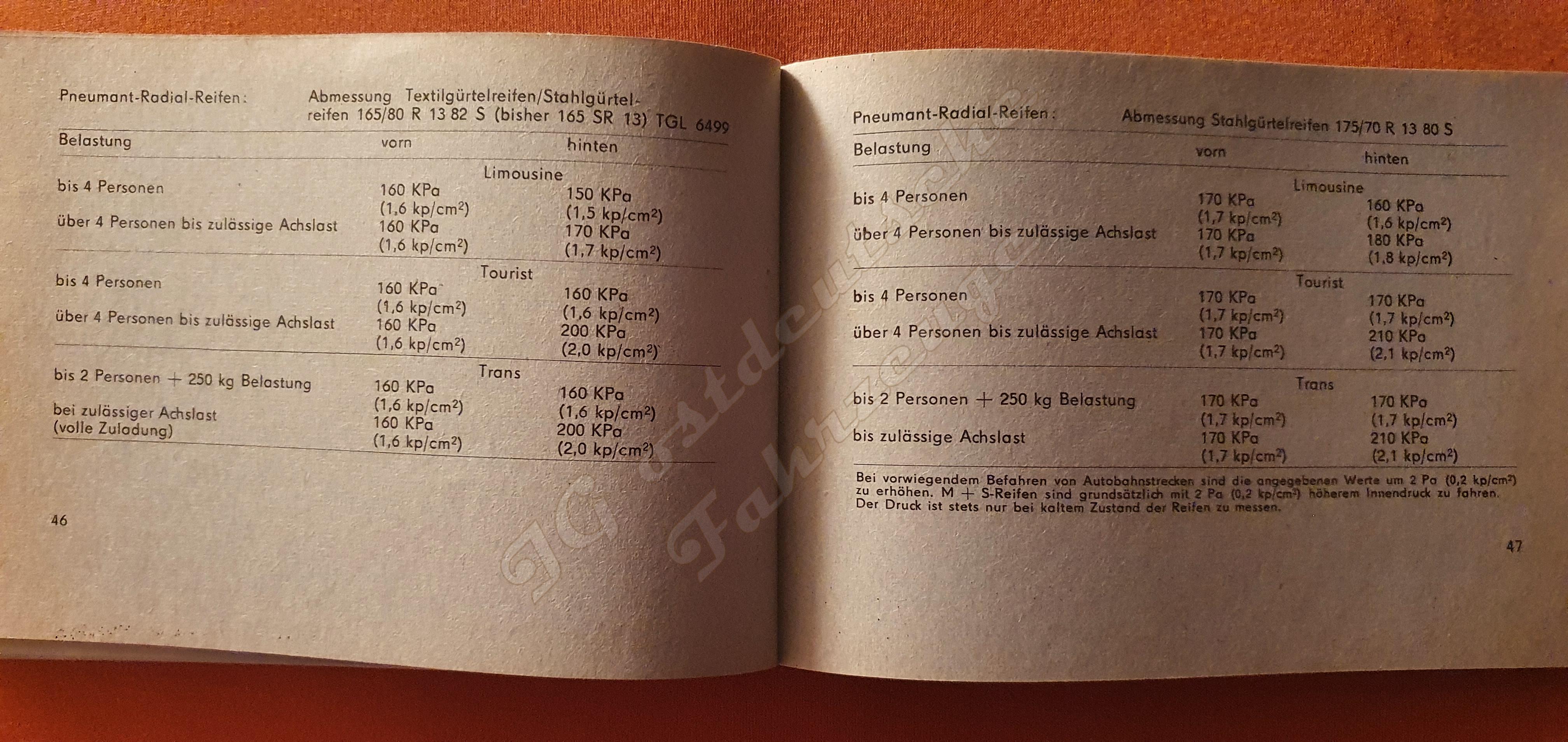 Wartburg 353 Technische Daten, Prüf- und Eindtellwerte