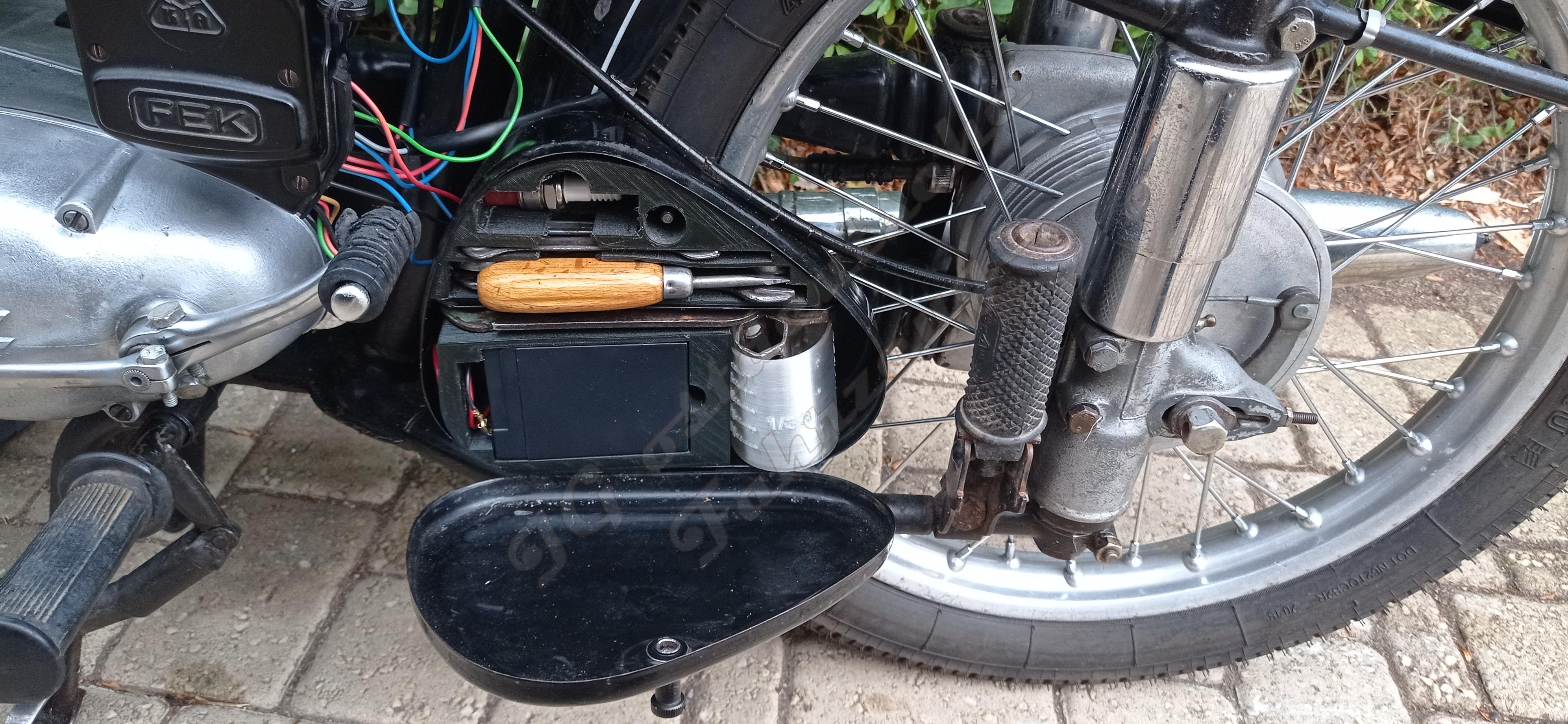 Auf kleinstem Raum habe ich jetzt das komplette Bordwerkzeug und die Batterie untergebracht.