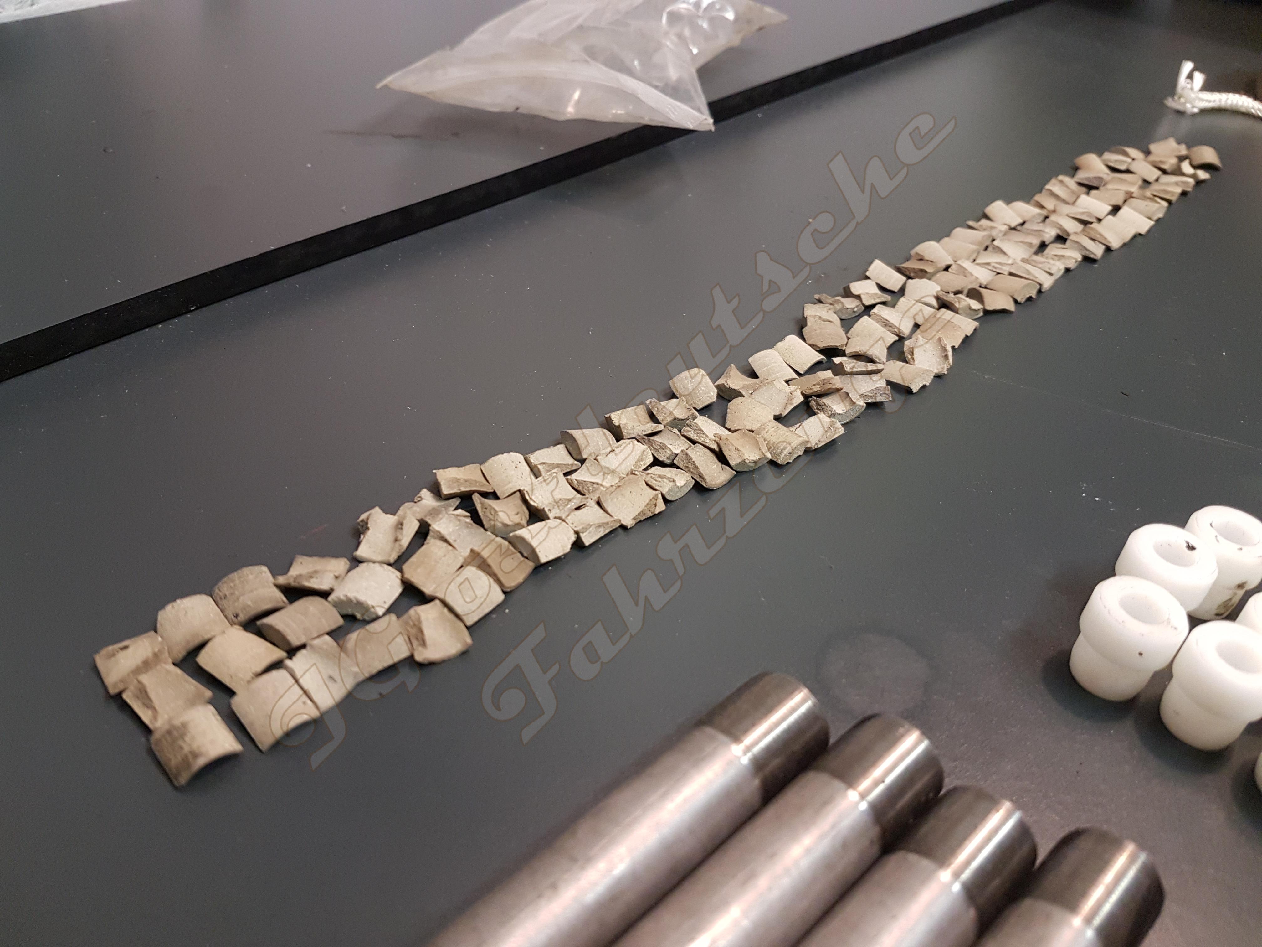 Es ist Bremsbelagwerkstoff. Das ist das Gleiche, wie Kupplungsreibbelag und auch wie diese Reibsegmente.
