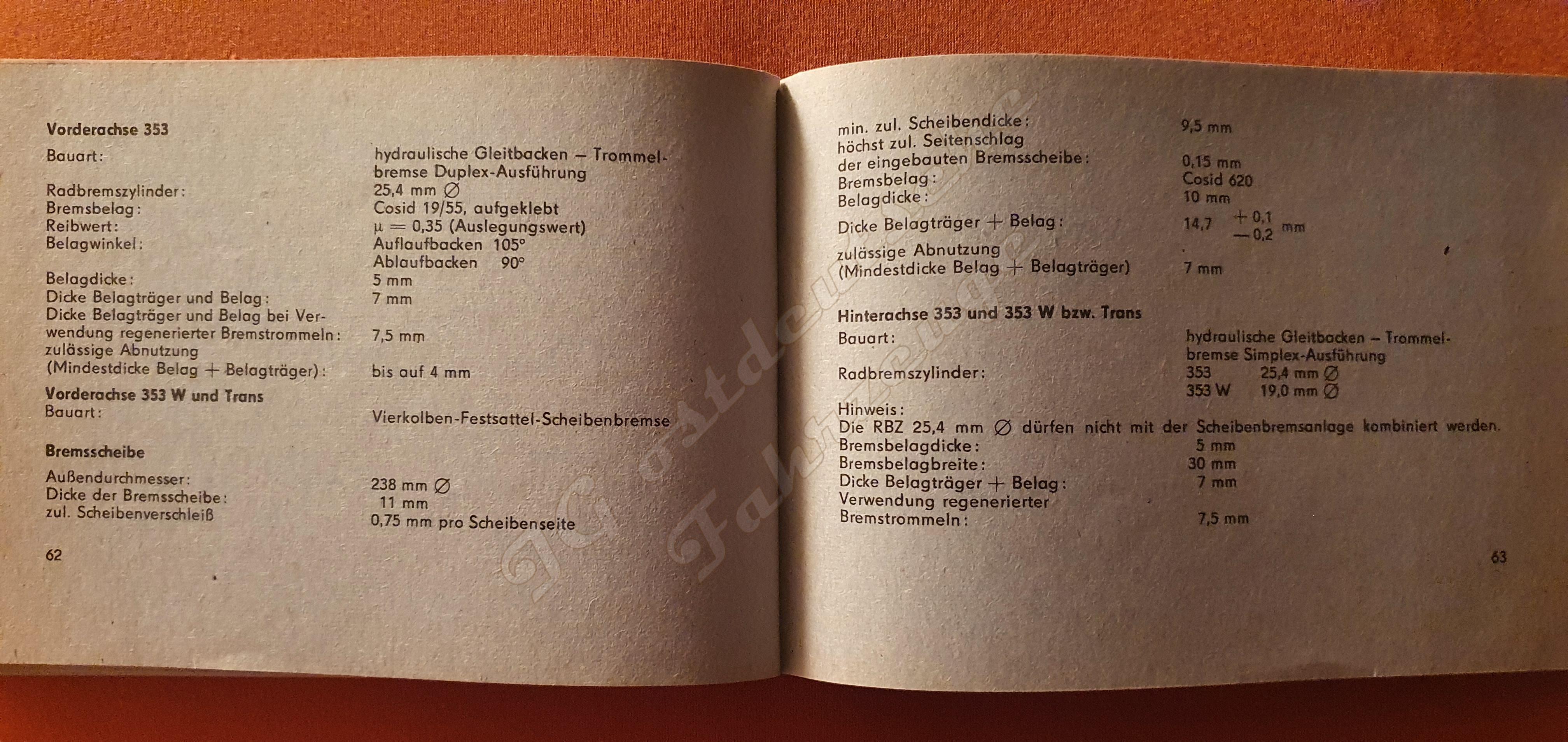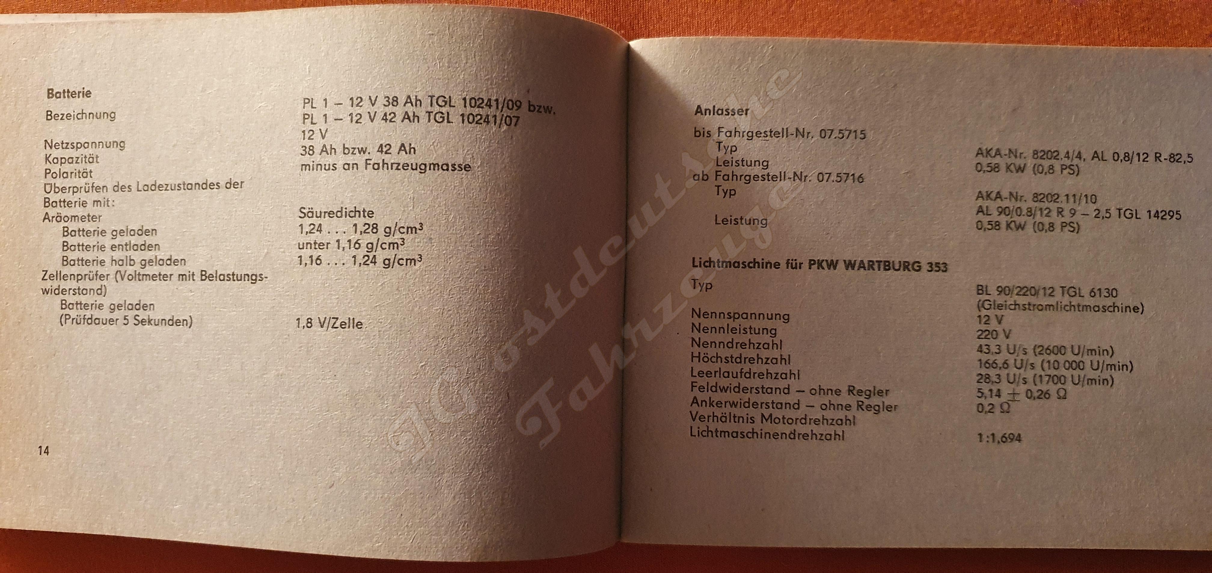 Wartburg 353 Technische Daten, Prüf- und Eindtellwerte