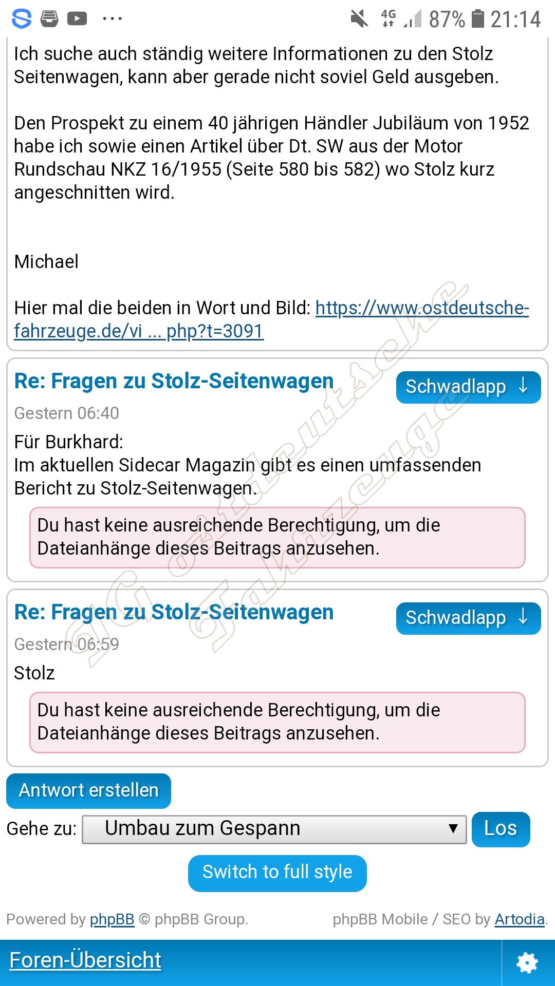 im Dreiradler Forum hat jemand Bilder von der aktuellen sidecar traveller Zeitschrift (Heft 44) wo Bilder von Stolzseitenwagen aus Prospekten abgebildet sind. Die Zeitschrift erscheint im Verlag von Heidi Franitza der frau von Martin Franitza, welcher als einer DER Gespann Koryphäe in der BRD zu bewerten ist.