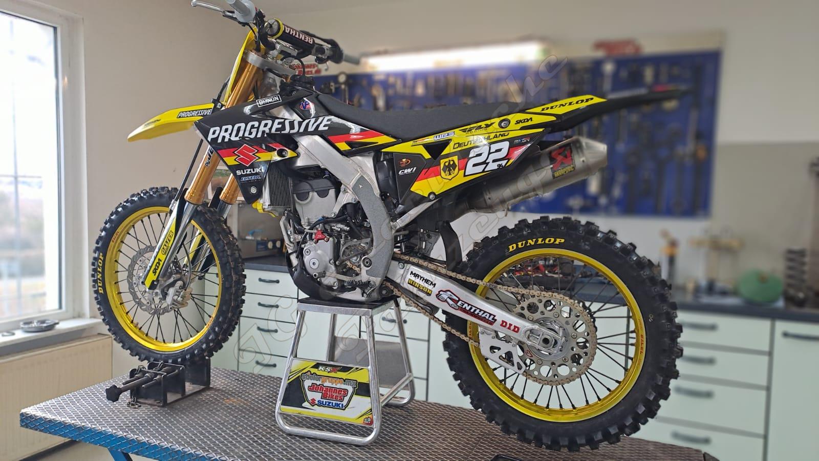 Es handelt sich um Motocross Fahrzeuge der Marke Suzuki.