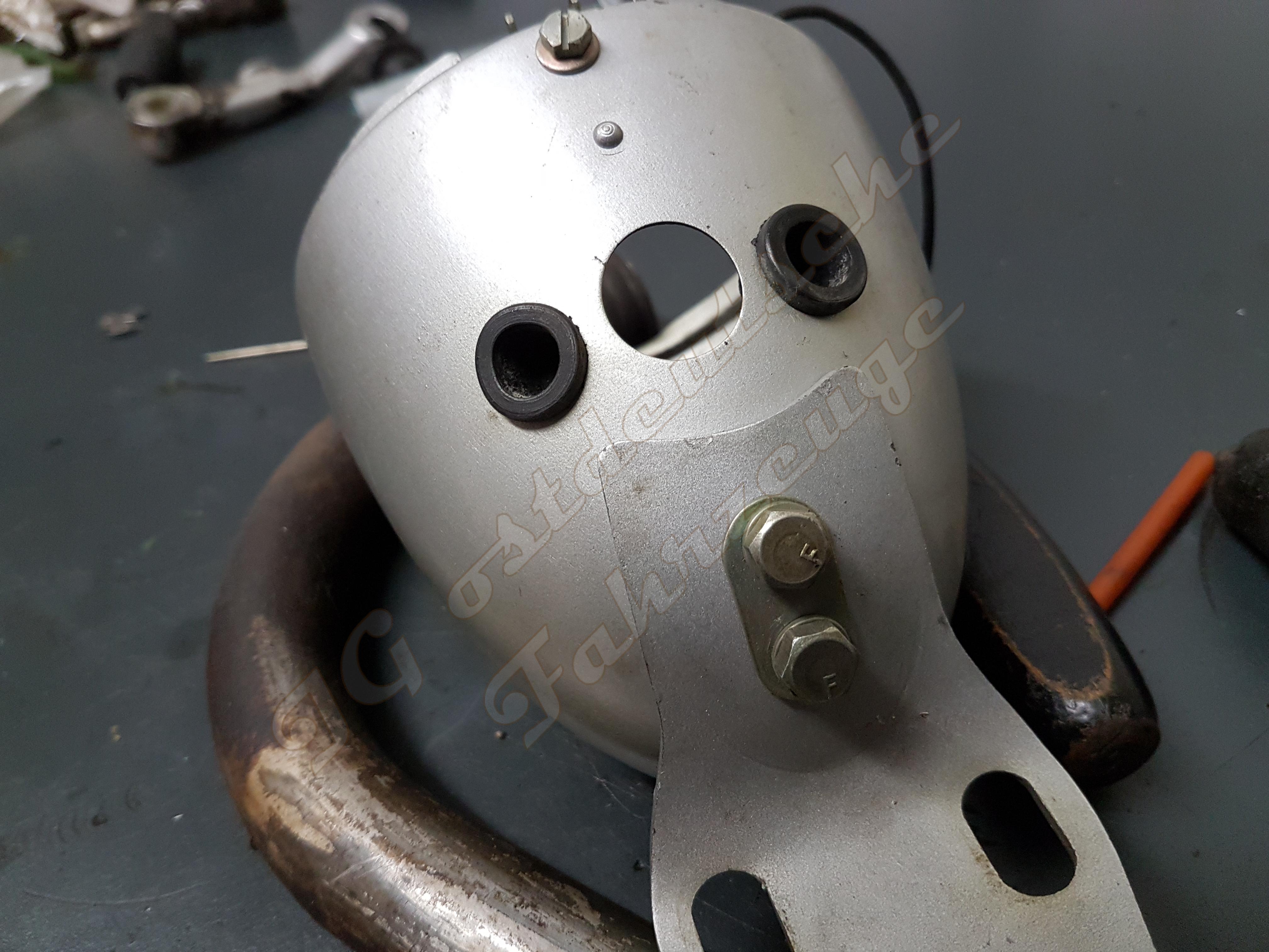 Leider habe ich meinen geliebten SR1 Bj. 56 lange vor mir her geschoben. Das Vorderrad wackelte wie ein Lämmerschwanz. Die Buchsen waren total ausgeleiert und die Federgummies verschlissen. Ich habe alle Teile durch originale Neuteile ersetzt. Der Benzinhahn lies nichts mehr durch. Die Vierlochdichtung ist total verquollen. Es fließt mir aber noch nicht schnell genug. Der Zündfunke kommt nur unregelmäßig, aber ich habe heute keine Lust mehr. Jedoch habe ich an den Seitenblechen noch diese unsäglichen Baumarktschrauben durch "F"-Schrauben ersetzt, die ich zwei Lampengehäusen entnahm.