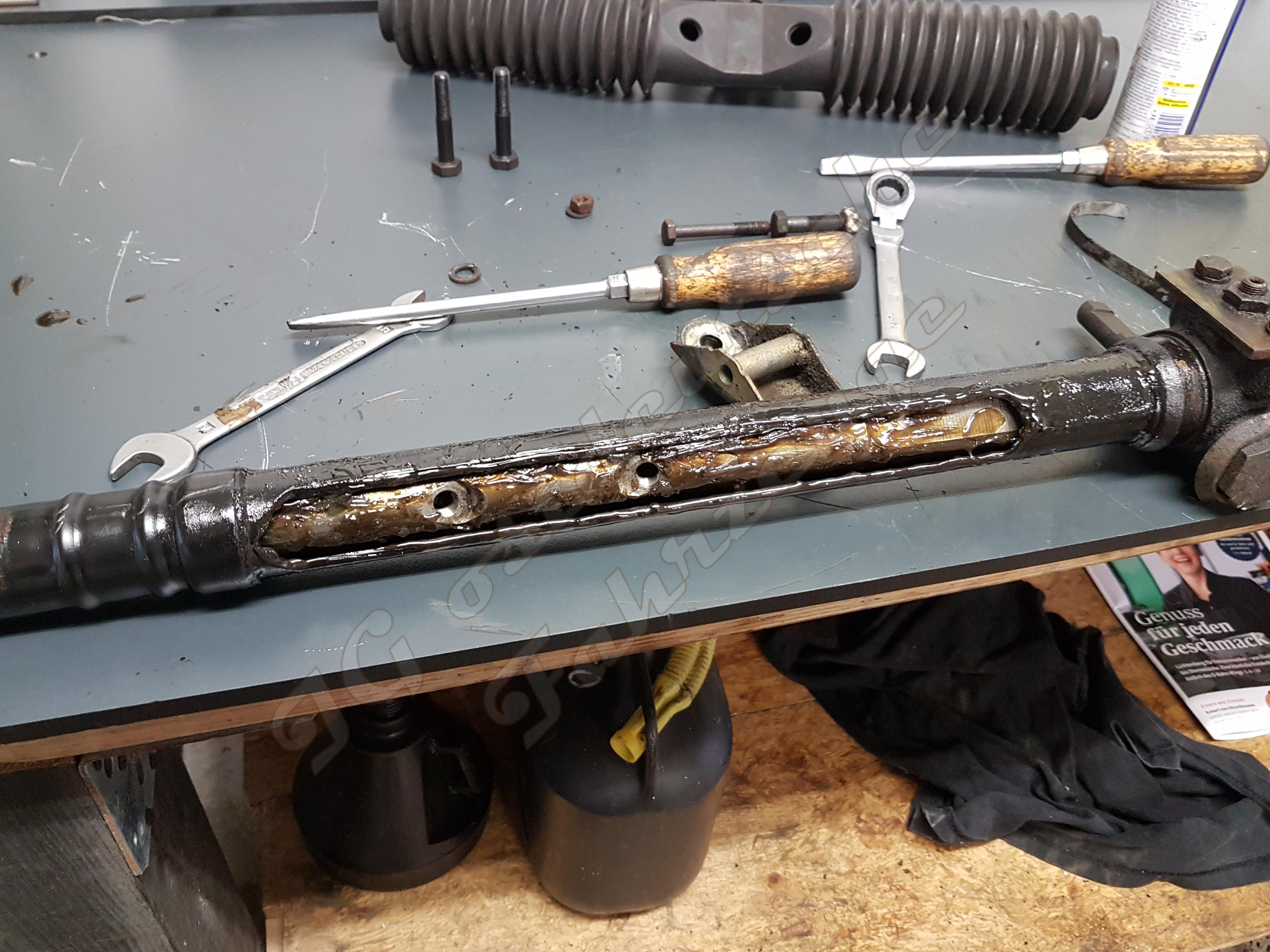 Heute habe ich mal an einem Audi 80 B1-Lenkgetriebe die Maschette erneuert. 1998 (vor 19 Jahren) hat ein Thüffer mal bemängelt, dass die Lenkmanschette porös sei, jetzt ist sie durch.