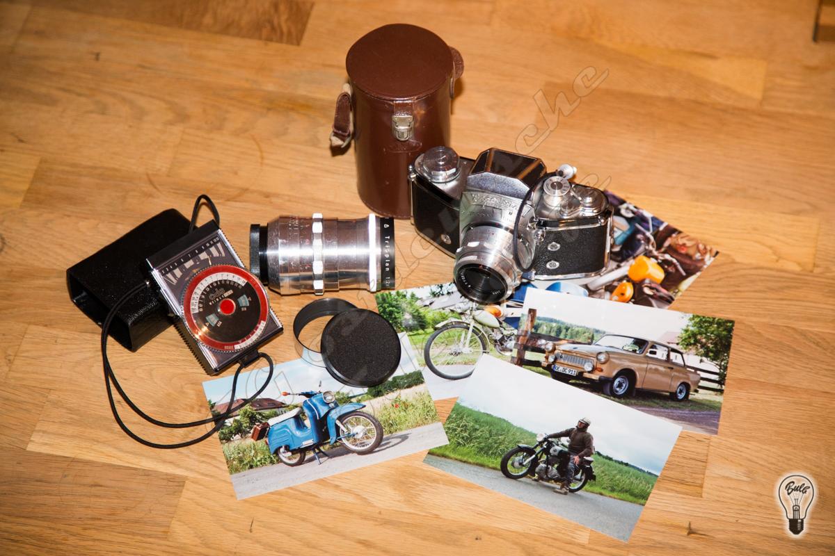 Auf dem Bild ist auch noch der Weimarlux Belichtungsmesser zu sehen... ich brauche ihn nur noch selten, da man mit der Zeit ein Gespür für die korrekte Blenden-Zeitkombination entwickelt. Dennoch ein schönes Teil.