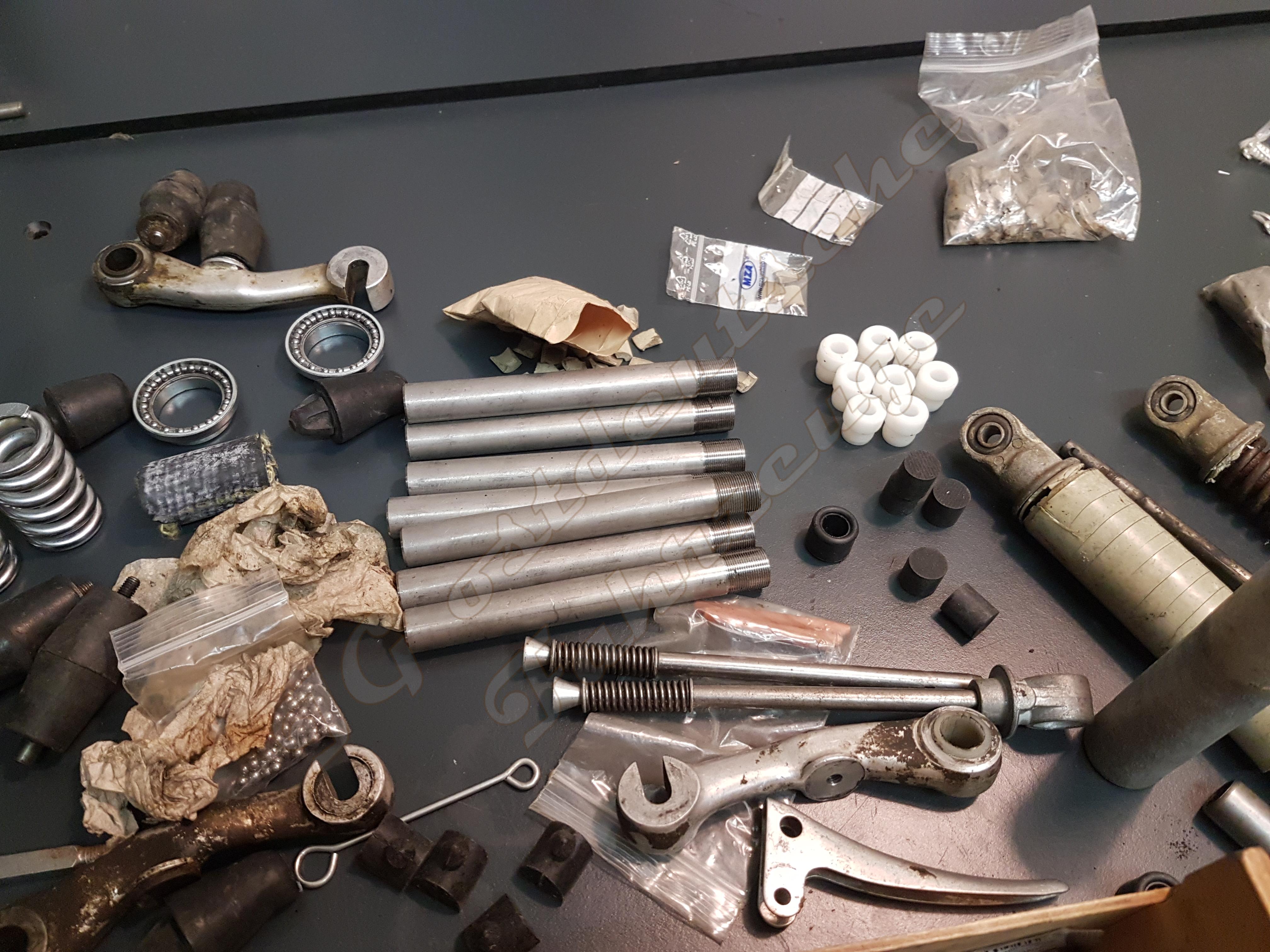 Heute habe ich mal die Reibungsdämpferkisten gesichtet. 18 Paar (36 einzelne) Dämpfer müssten instand zu setzen gehen. Aluhülsen sind knapp. Plasthülsen, auch in Blau sind noch vorhanden. Es kann also los gehen.