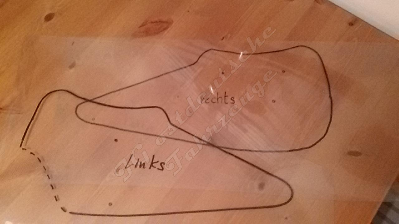 Riemenscheibe und Riemenfelge, Lenker und Hammer-Gabel sowie zwei Schablonen für die Seitenbleche.